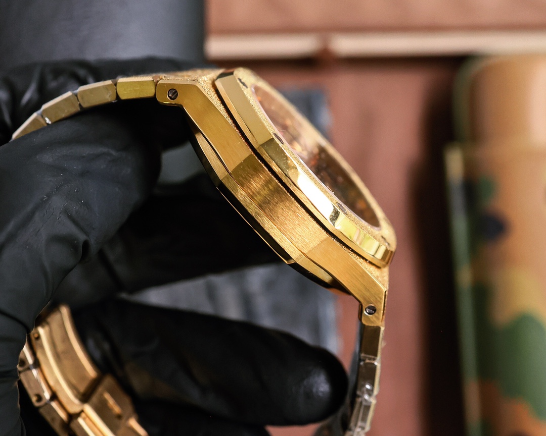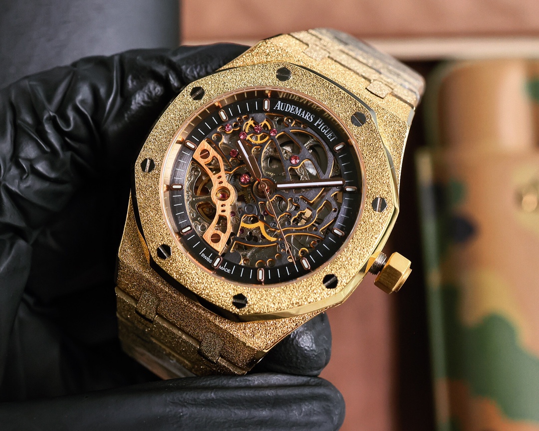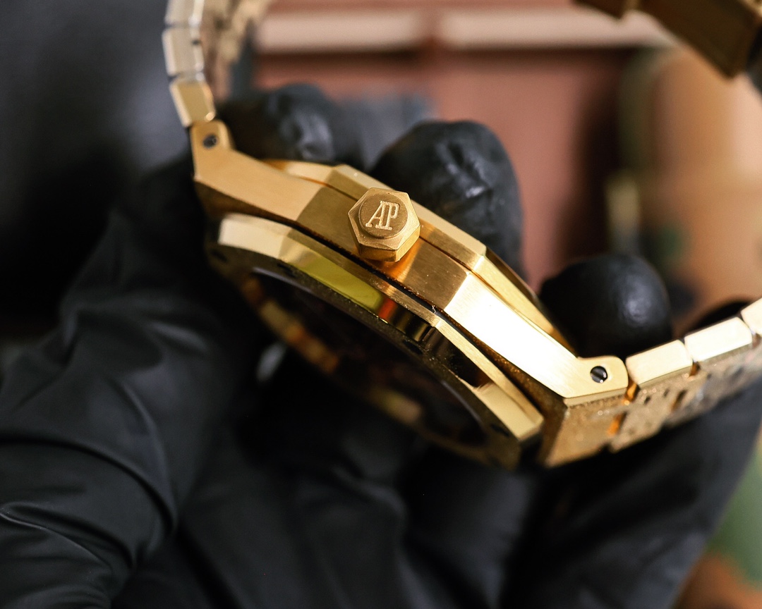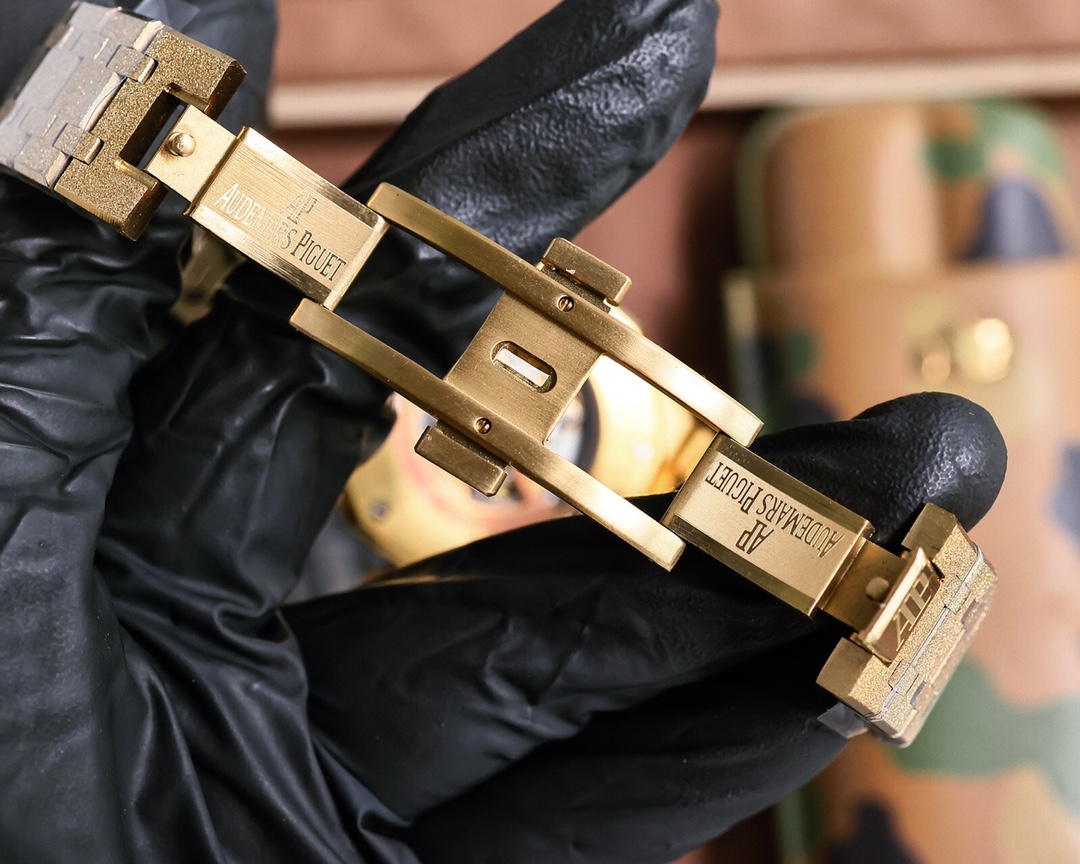这款手表是AAAAA 1:1 质量 (非常棒). 使用了和原版一模一样的材料. 商标部分也保持了和爱彼/Audemars Piguet一样. 图片拍摄是实物手表拍摄, 您所收到的实物保证和我们图片一模一样.