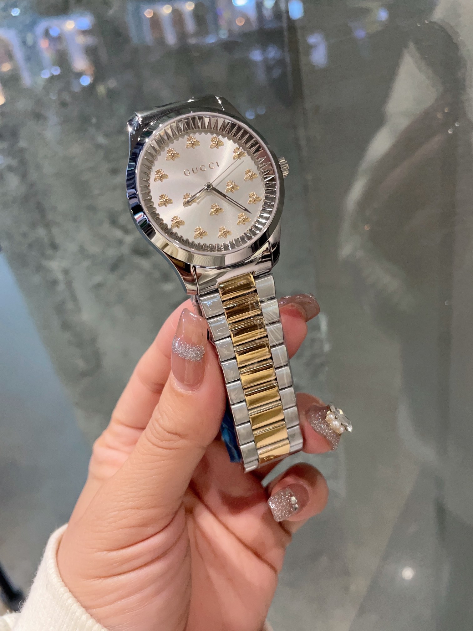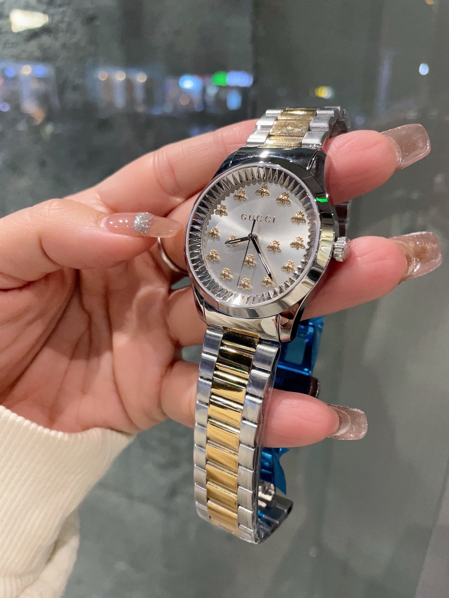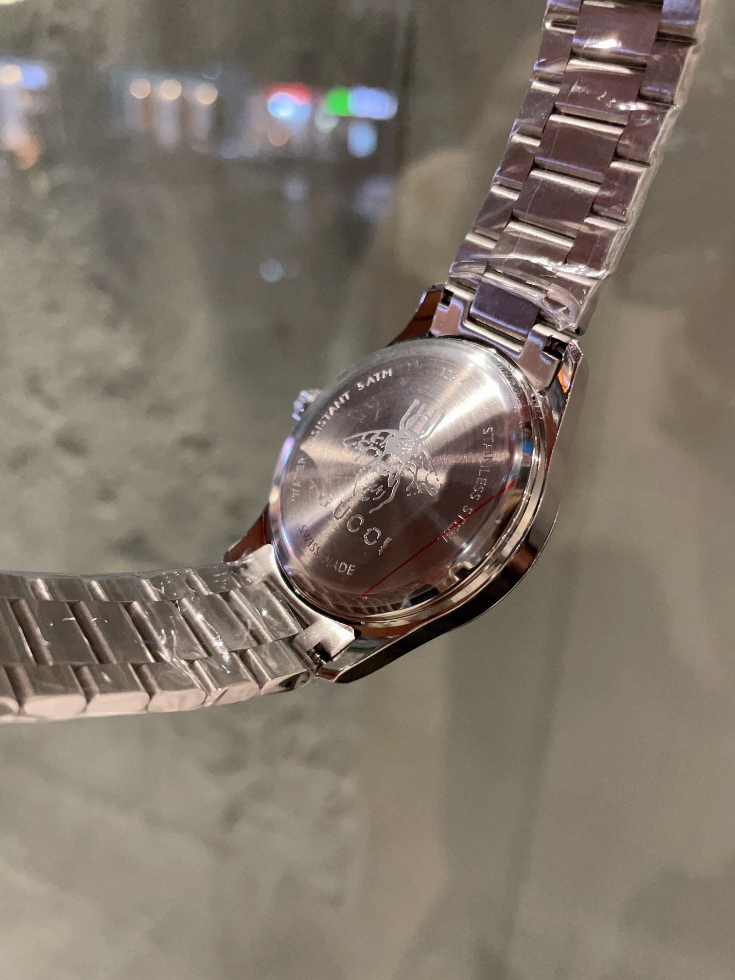 这款手表是AAAAA 1:1 质量 (非常棒). 使用了和原版一模一样的材料. 商标部分也保持了和古奇/Gucci一样. 图片拍摄是实物手表拍摄, 您所收到的实物保证和我们图片一模一样.