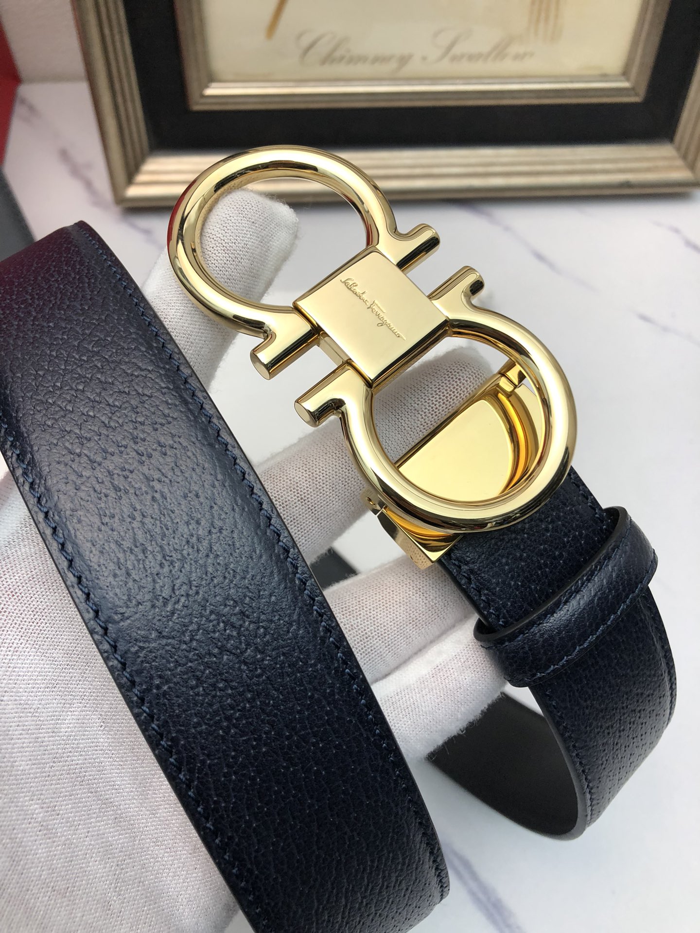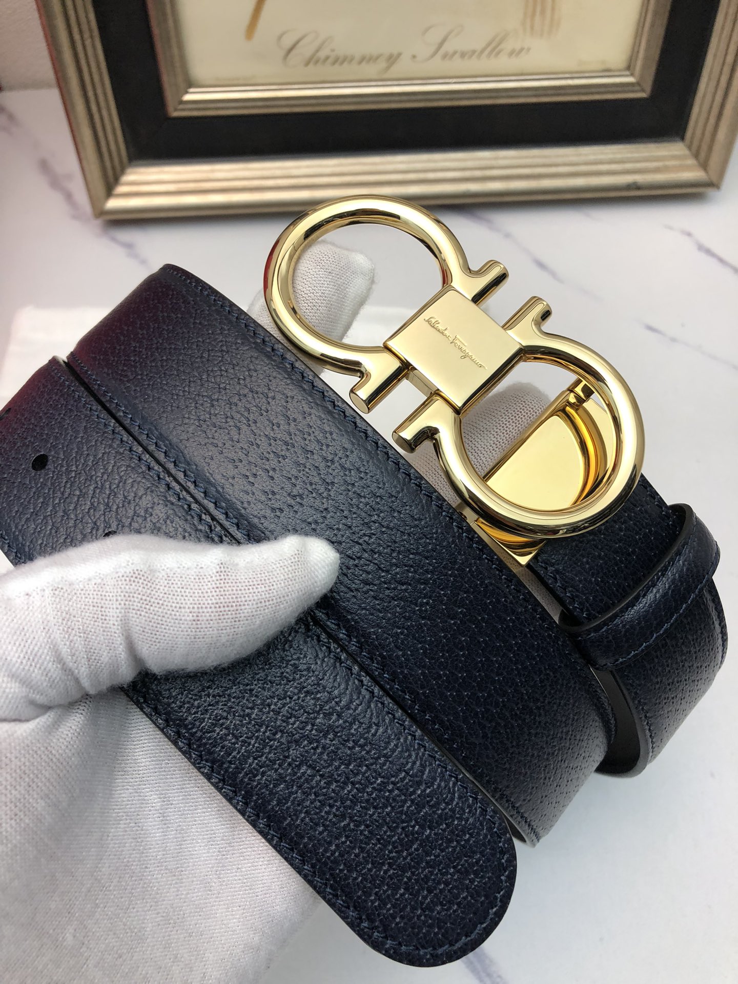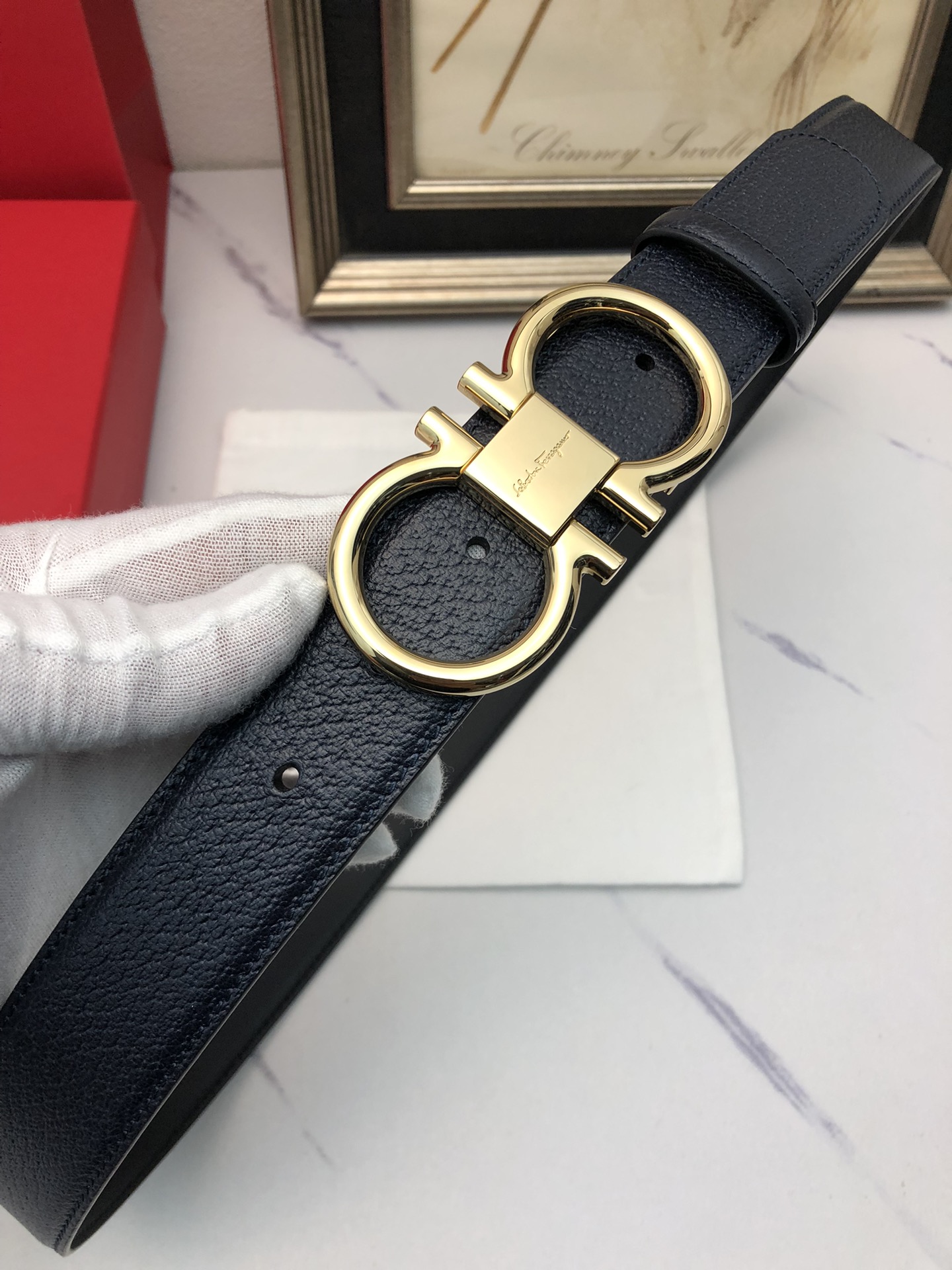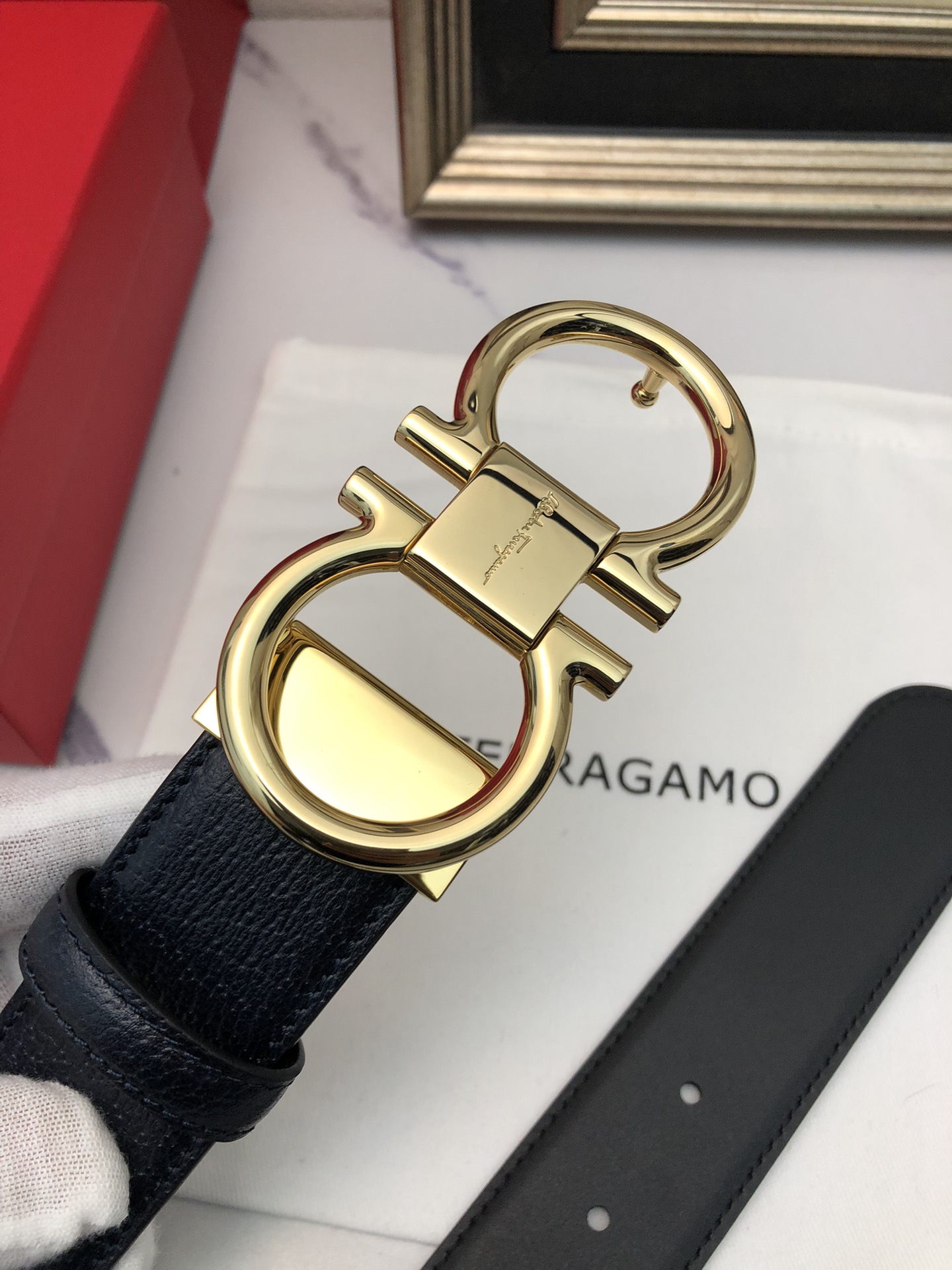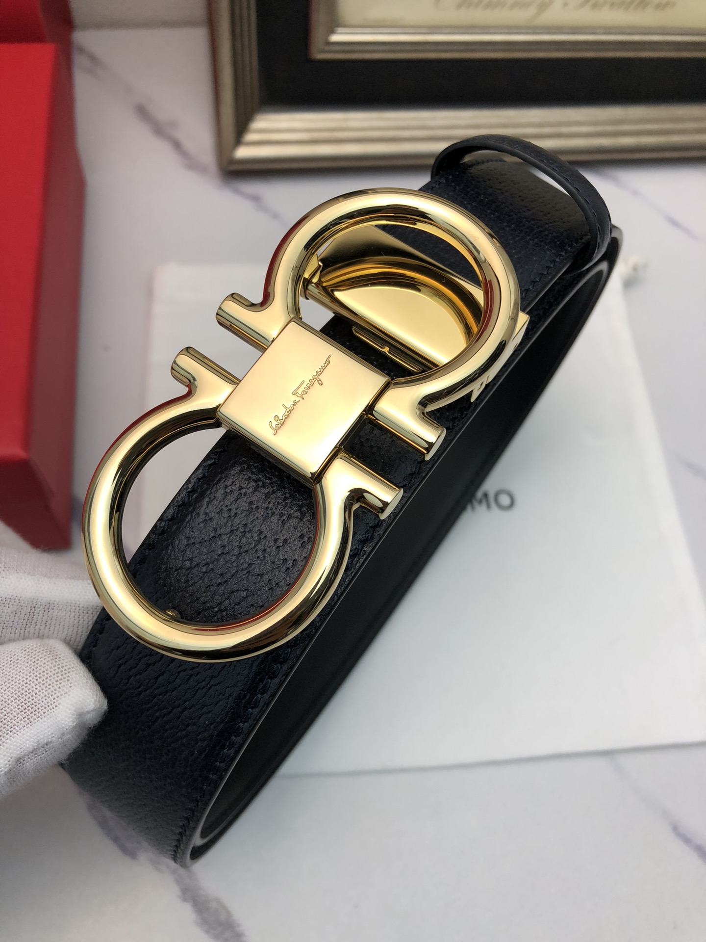 这款皮带是AAAAA 1:1 质量 (非常棒). 使用了和原版一模一样的材料. 商标部分也保持了和菲拉格慕/Salvatore Ferragamo一样. 图片拍摄是实物皮带拍摄, 您所收到的实物保证和我们图片一模一样.