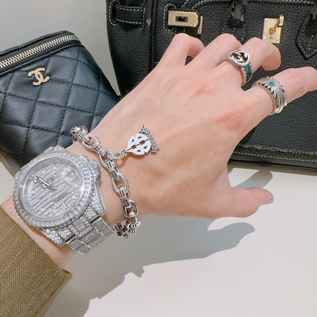 这款首饰是AAAAA 1:1 质量 (非常棒). 使用了和原版一模一样的材料. 商标部分也保持了和巴黎世家/Balenciaga一样. 图片拍摄是实物首饰拍摄, 您所收到的实物保证和我们图片一模一样.
