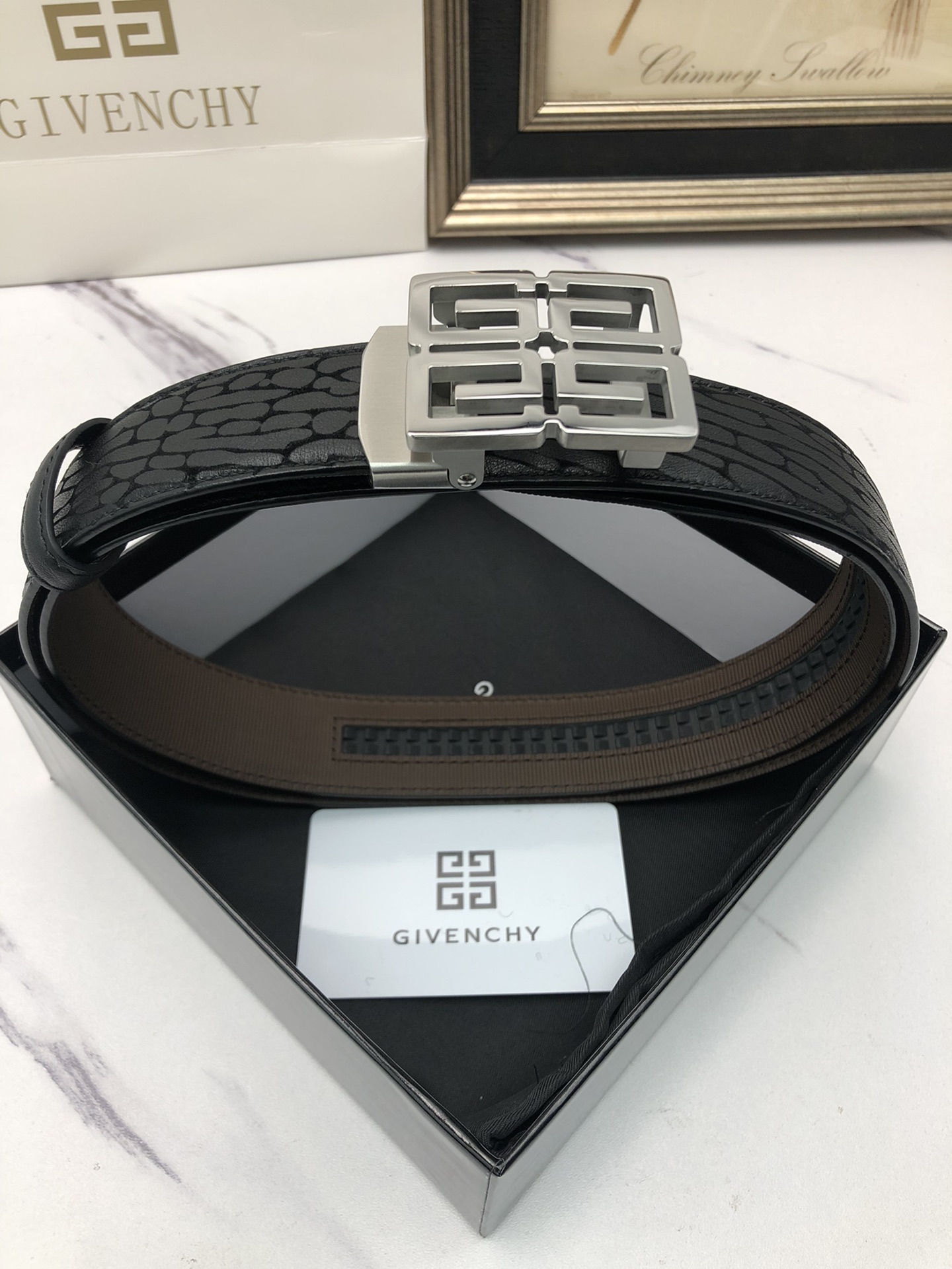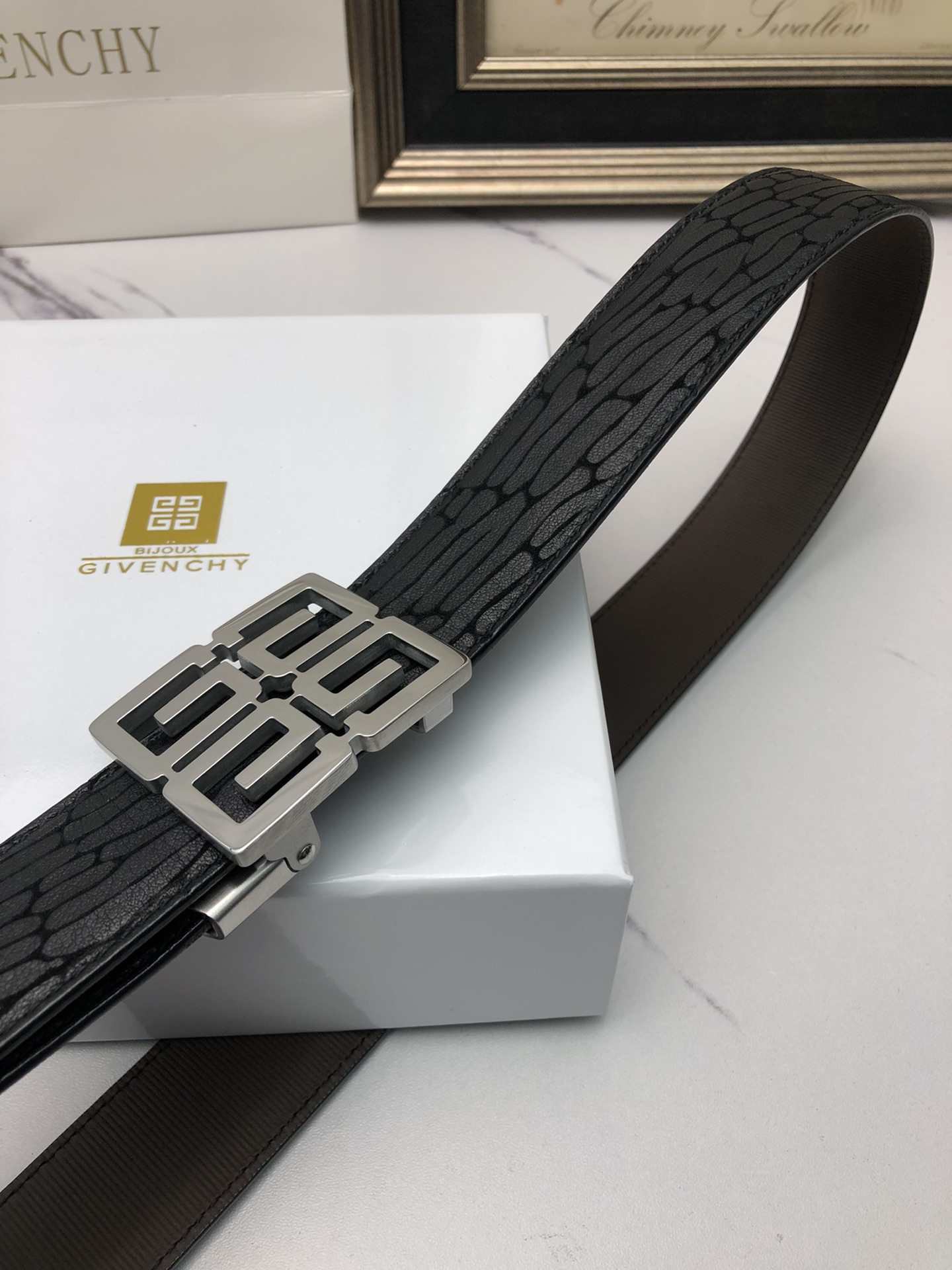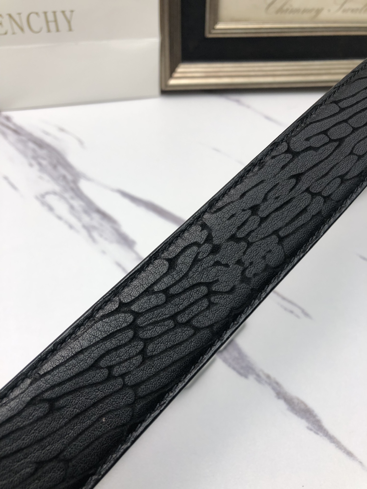 这款皮带是AAAAA 1:1 质量 (非常棒). 使用了和原版一模一样的材料. 商标部分也保持了和纪梵希/Givenchy一样. 图片拍摄是实物皮带拍摄, 您所收到的实物保证和我们图片一模一样.