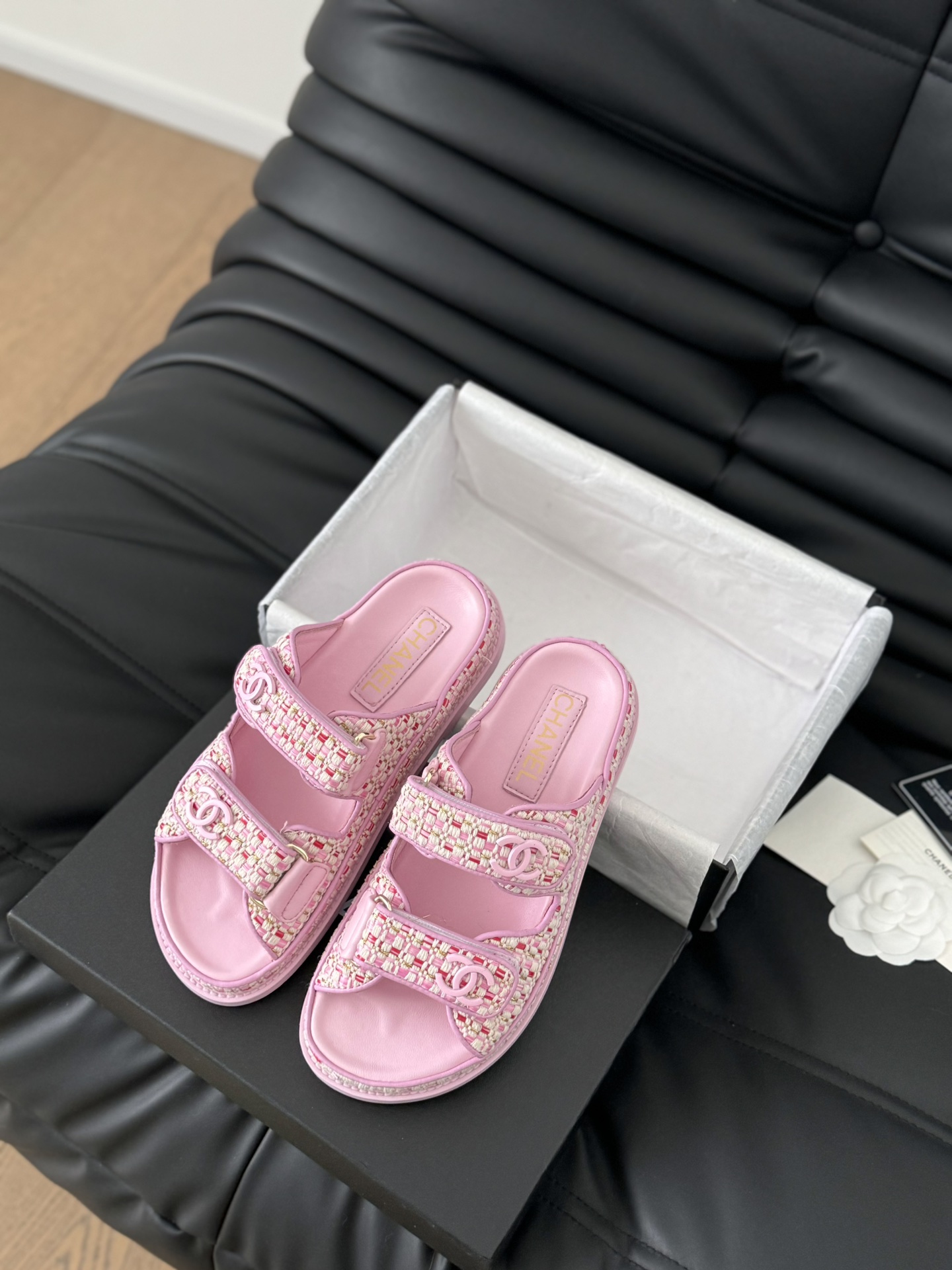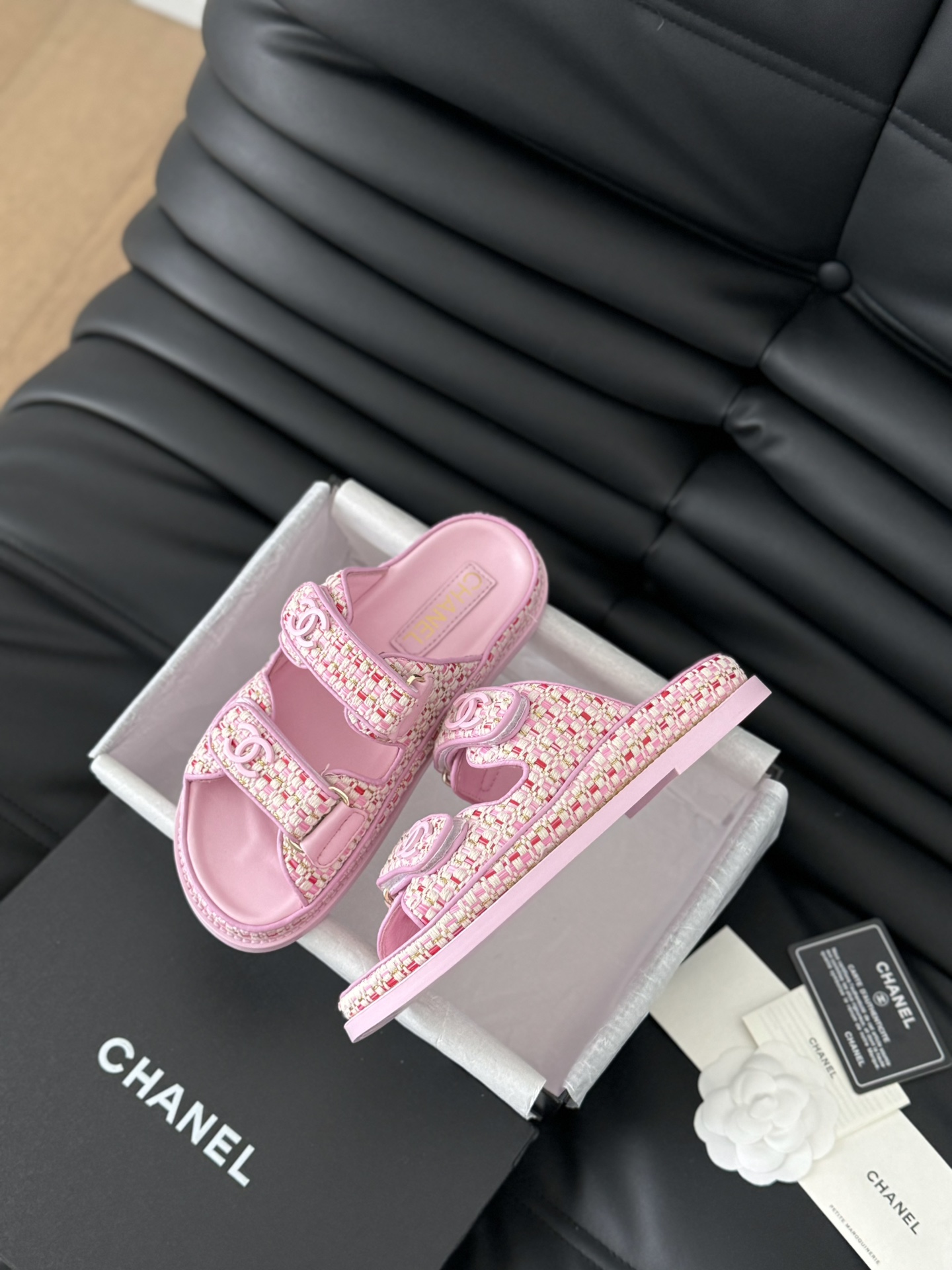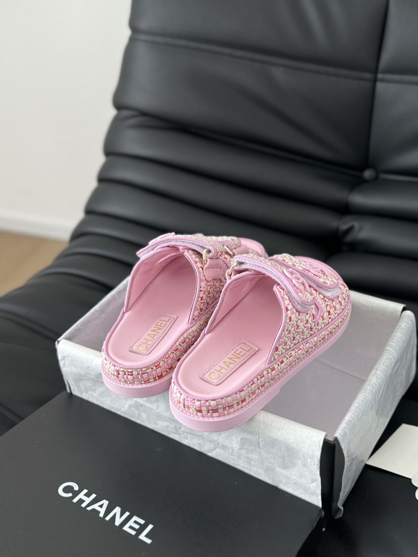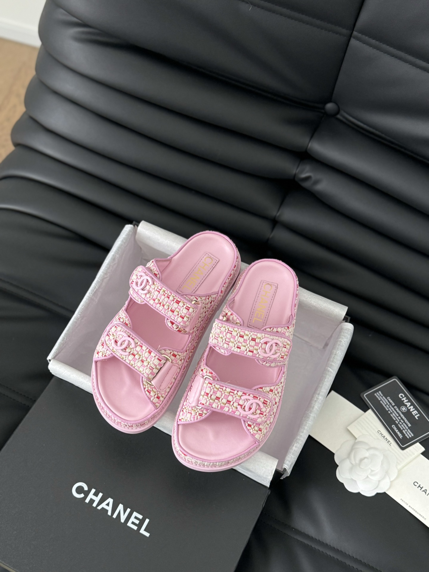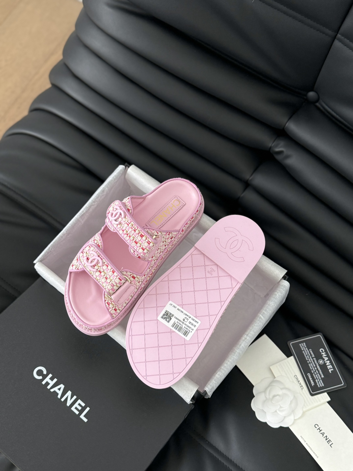 这款鞋子是AAAAA 1:1 质量 (非常棒). 使用了和原版一模一样的材料. 商标部分也保持了和香奈儿/Chanel一样. 图片拍摄是实物鞋子拍摄, 您所收到的实物保证和我们图片一模一样.