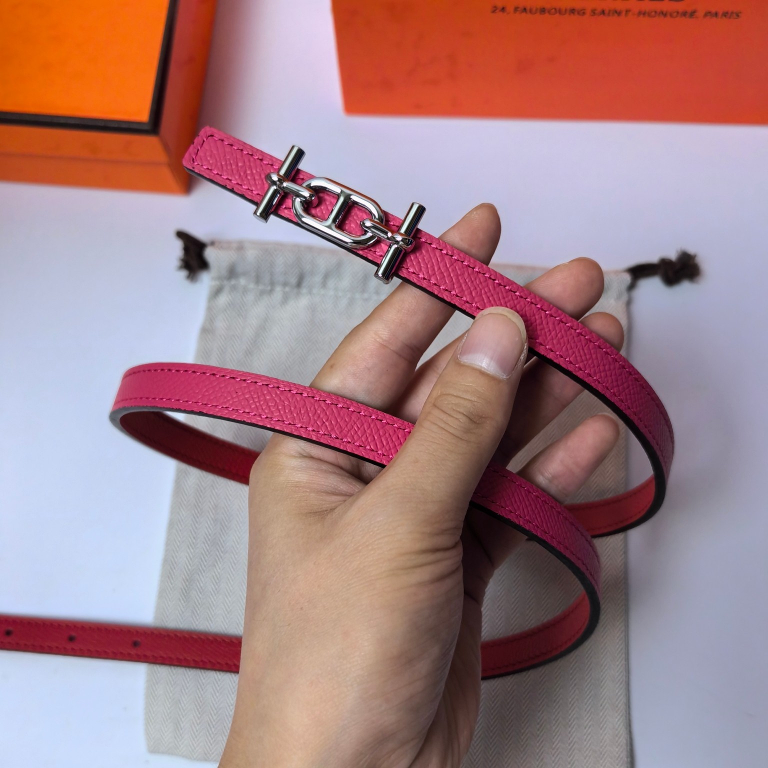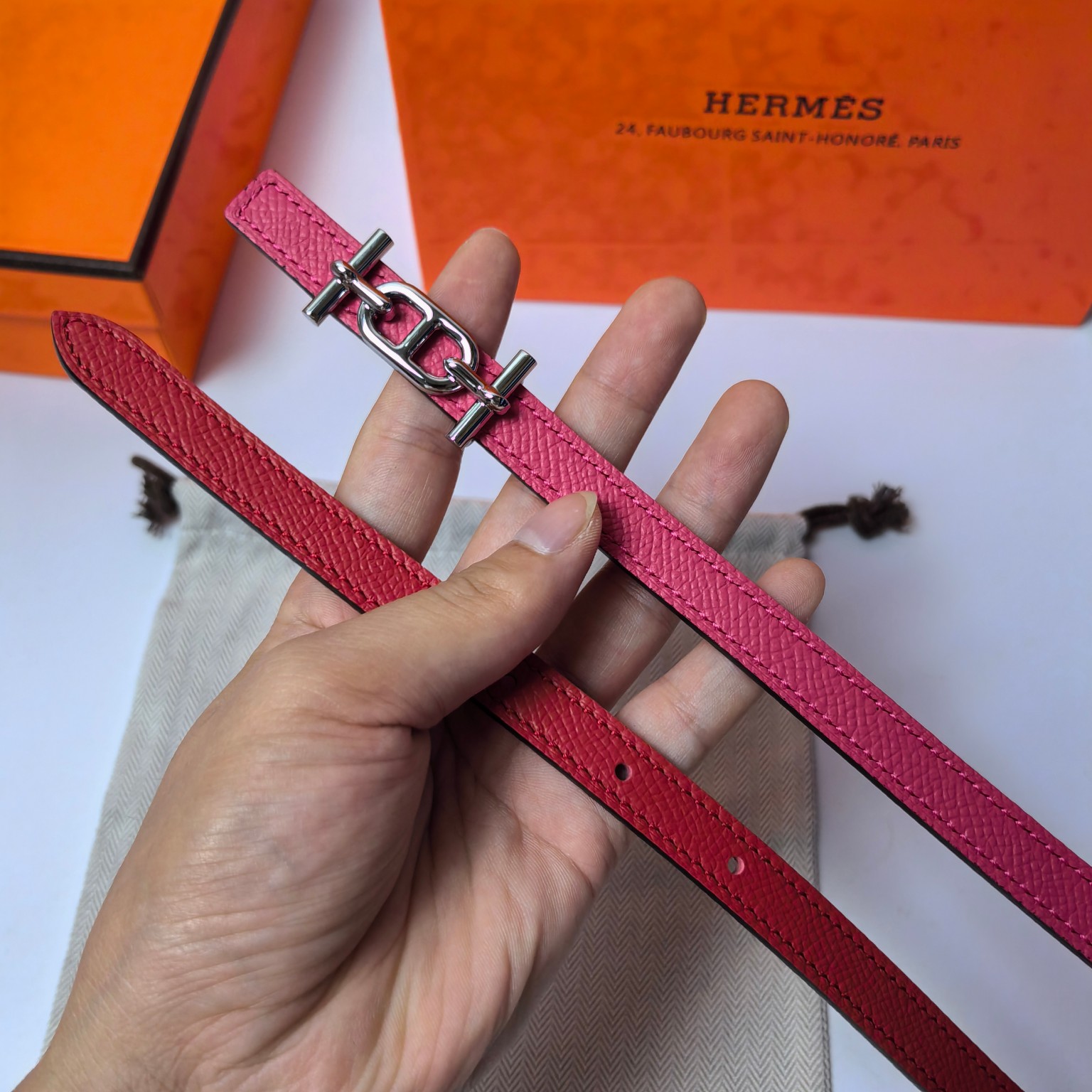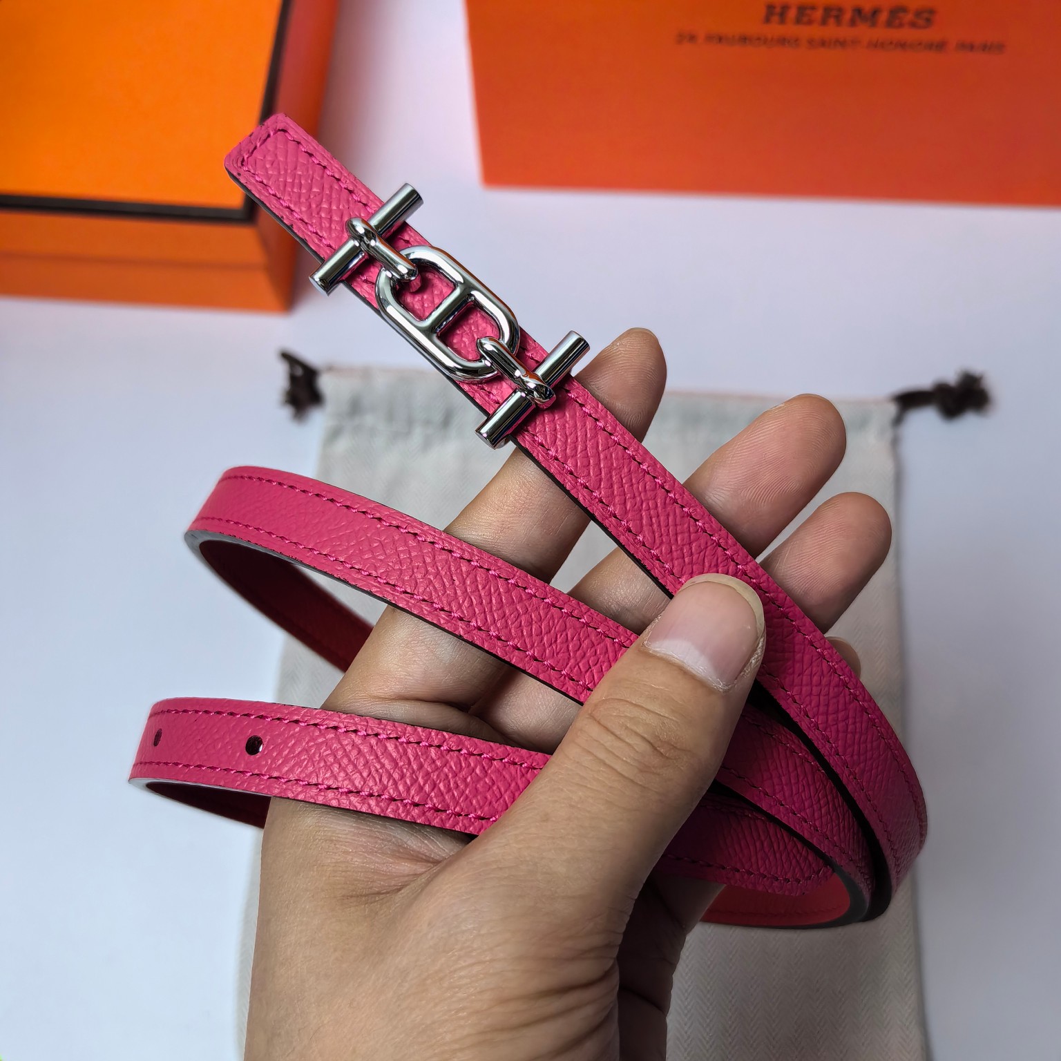 这款皮带是AAAAA 1:1 质量 (非常棒). 使用了和原版一模一样的材料. 商标部分也保持了和爱马仕/Hermes一样. 图片拍摄是实物皮带拍摄, 您所收到的实物保证和我们图片一模一样.