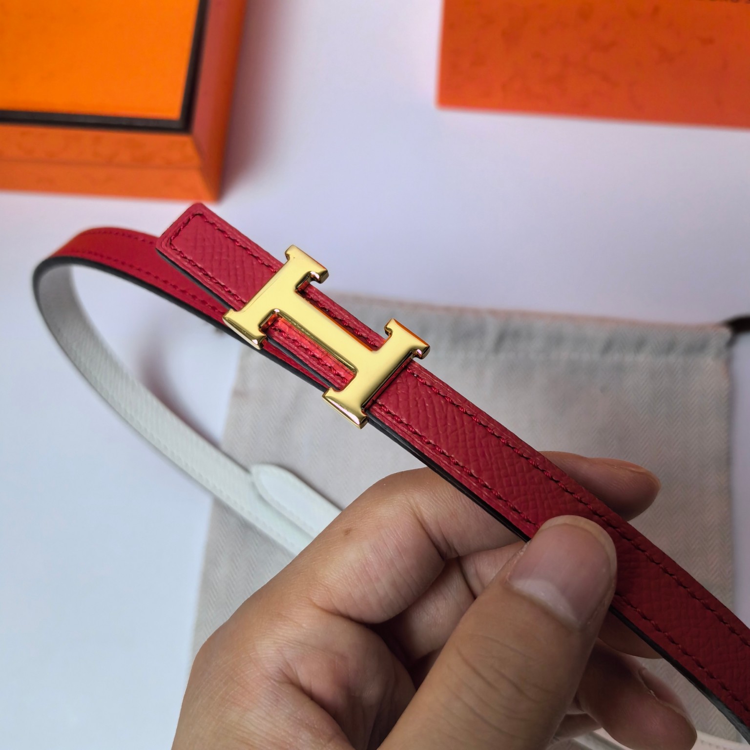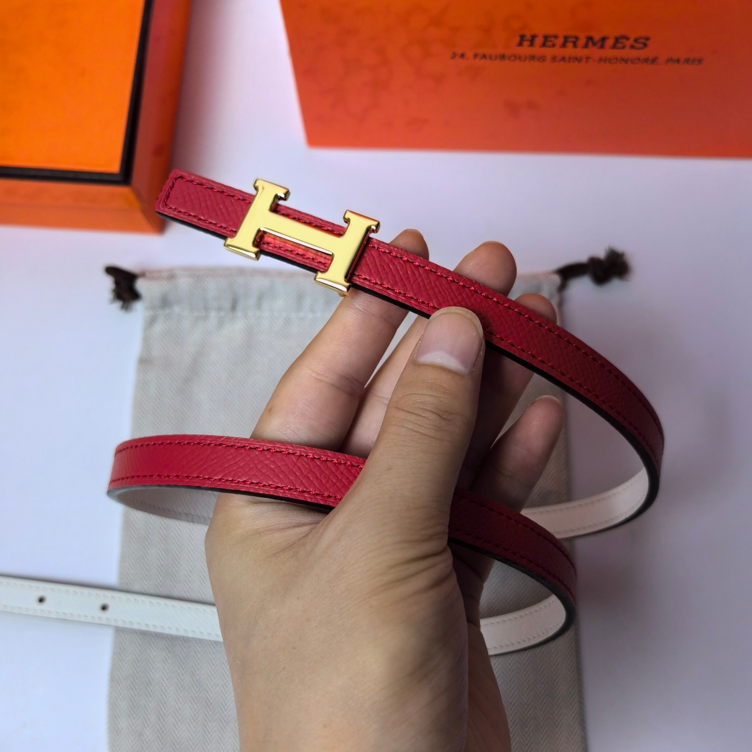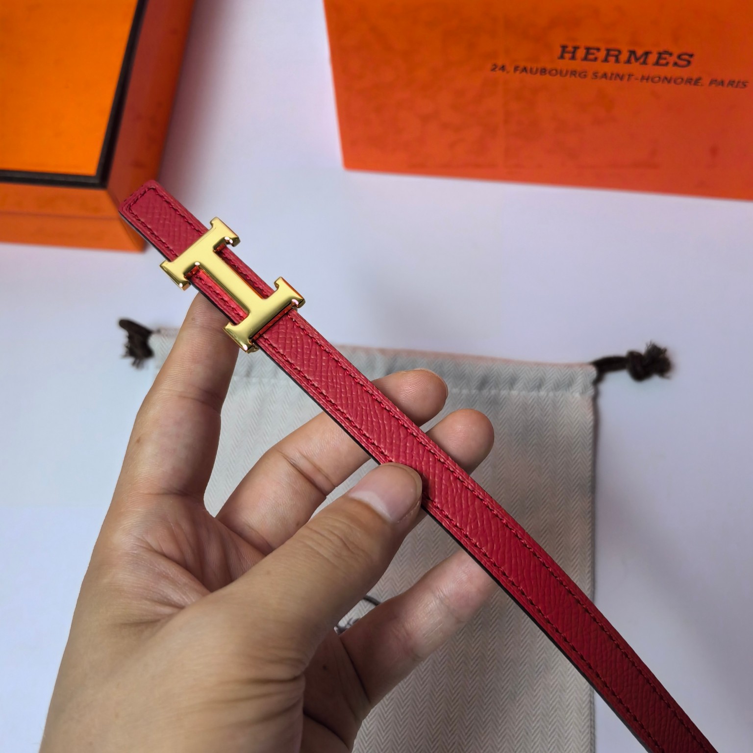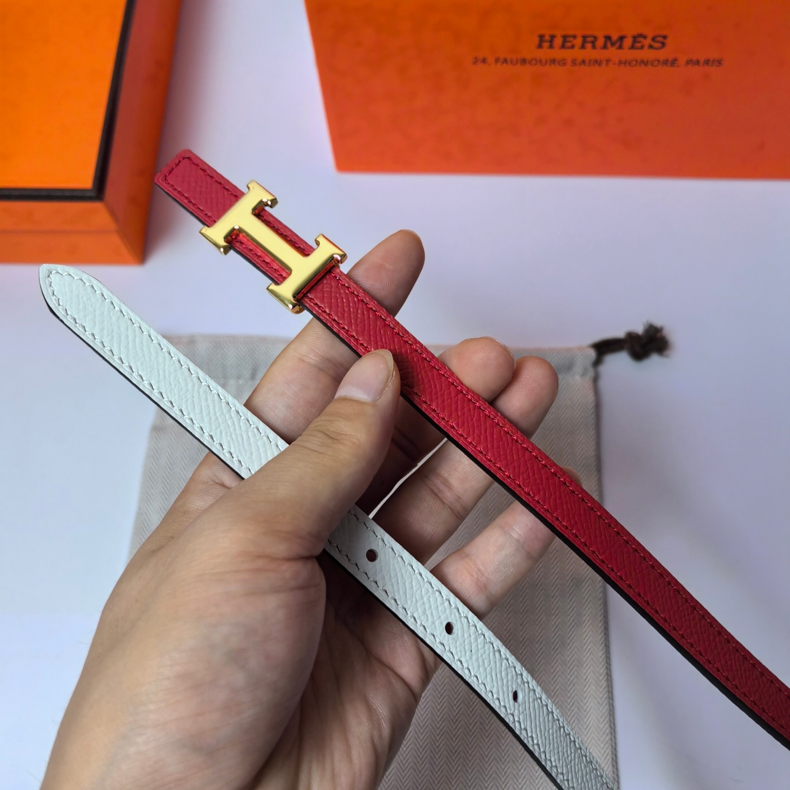 这款皮带是AAAAA 1:1 质量 (非常棒). 使用了和原版一模一样的材料. 商标部分也保持了和爱马仕/Hermes一样. 图片拍摄是实物皮带拍摄, 您所收到的实物保证和我们图片一模一样.