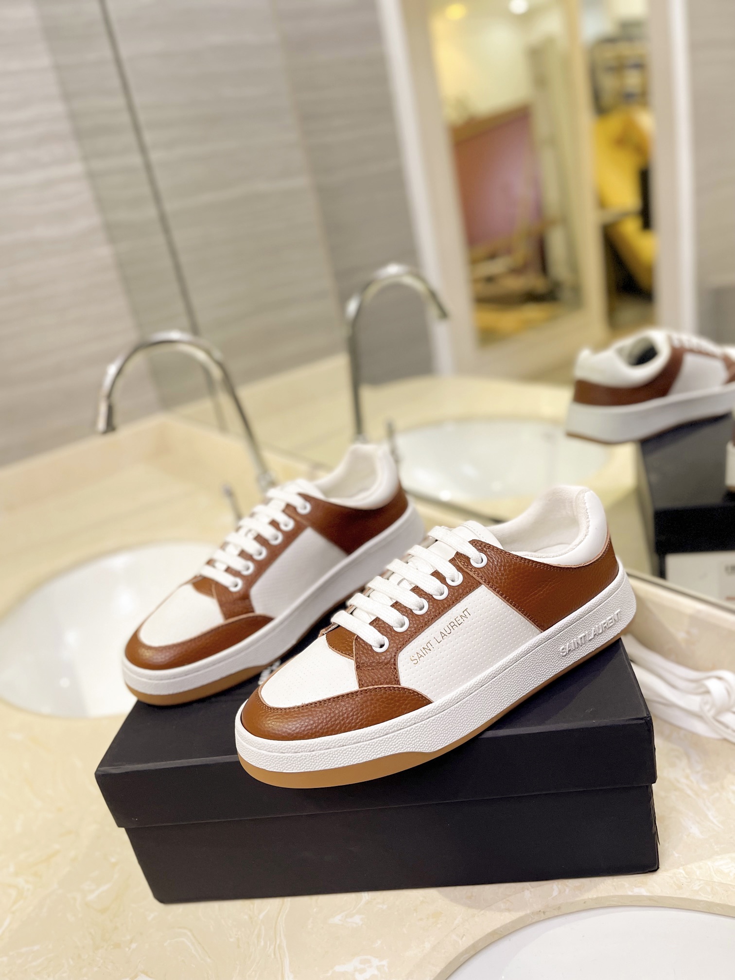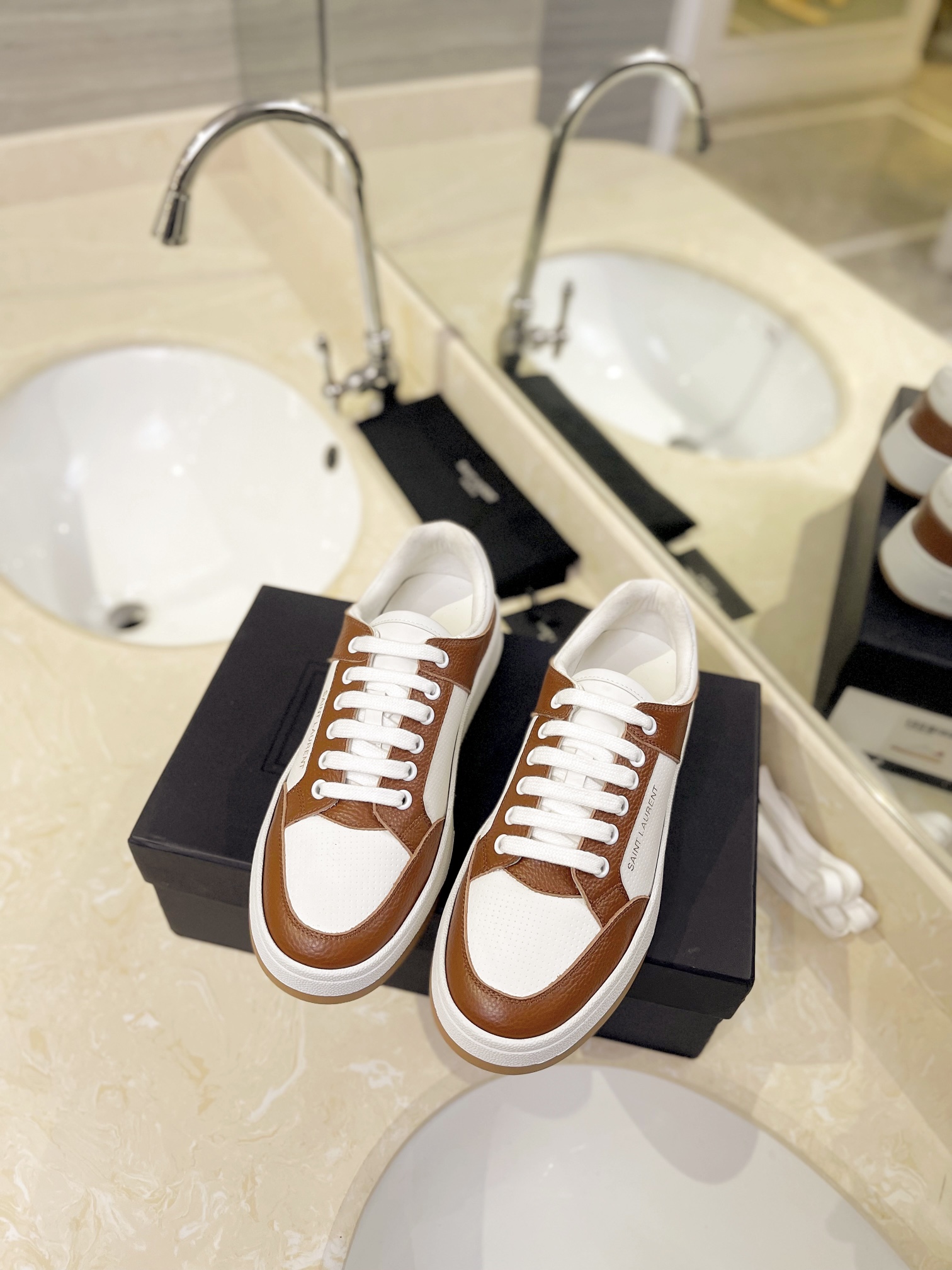 这款鞋子是AAAAA 1:1 质量 (非常棒). 使用了和原版一模一样的材料. 商标部分也保持了和圣罗兰/Saint Laurent一样. 图片拍摄是实物鞋子拍摄, 您所收到的实物保证和我们图片一模一样.