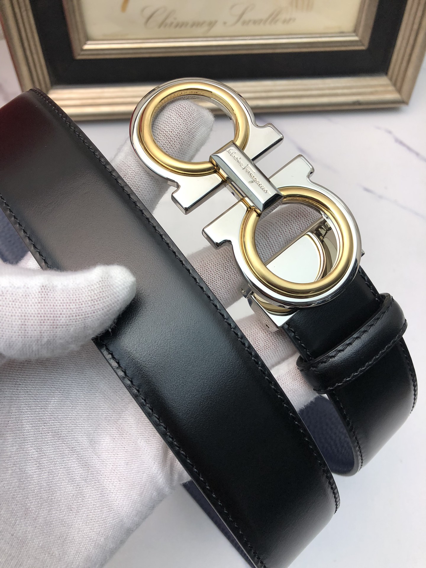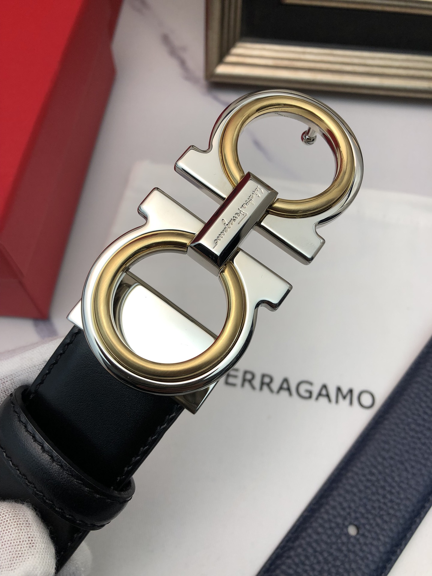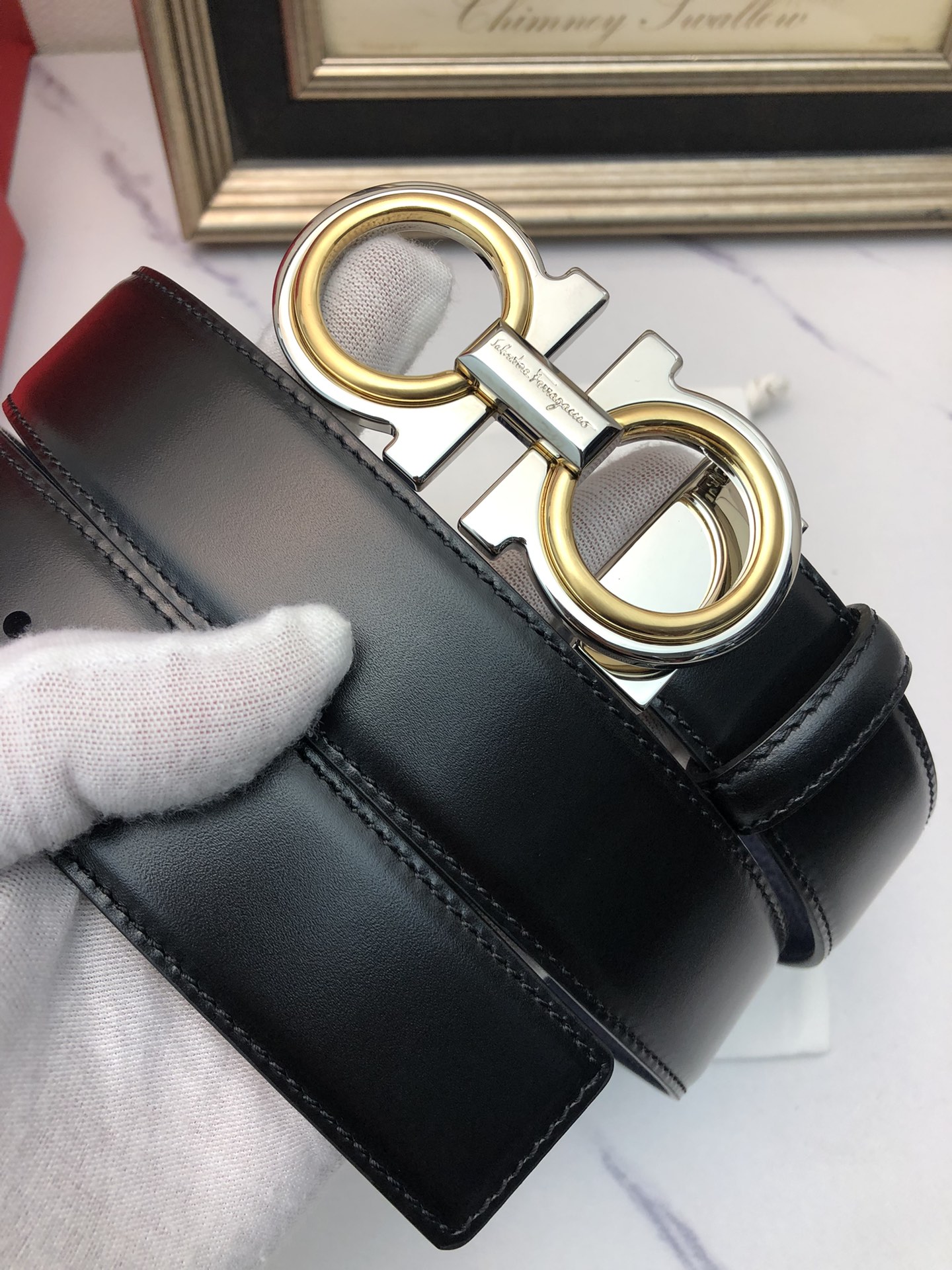这款皮带是AAAAA 1:1 质量 (非常棒). 使用了和原版一模一样的材料. 商标部分也保持了和菲拉格慕/Salvatore Ferragamo一样. 图片拍摄是实物皮带拍摄, 您所收到的实物保证和我们图片一模一样.