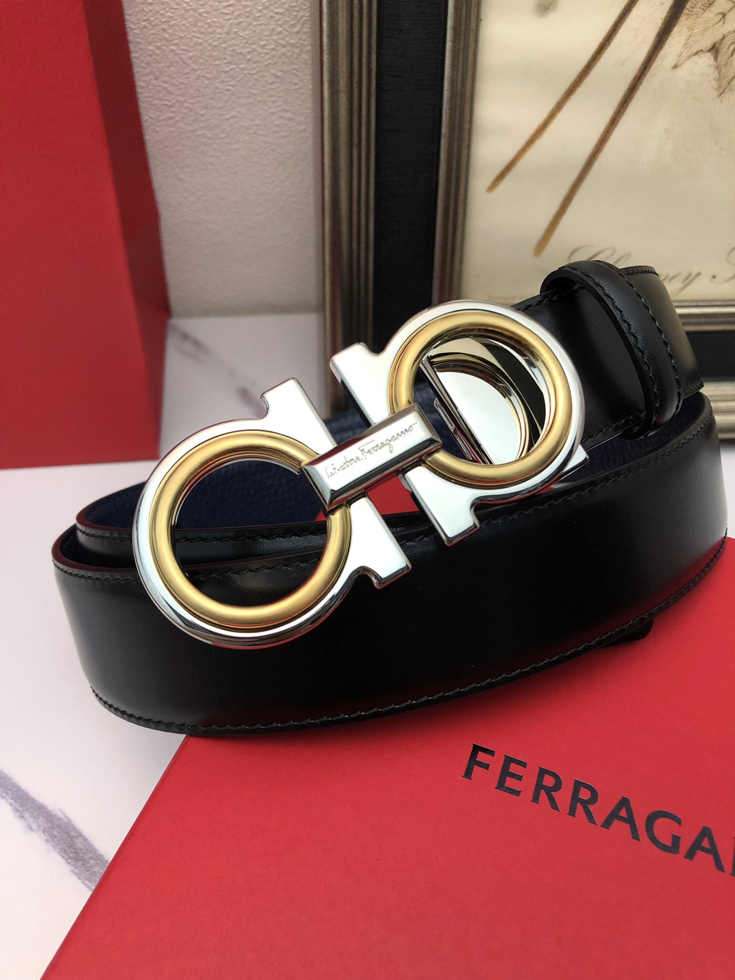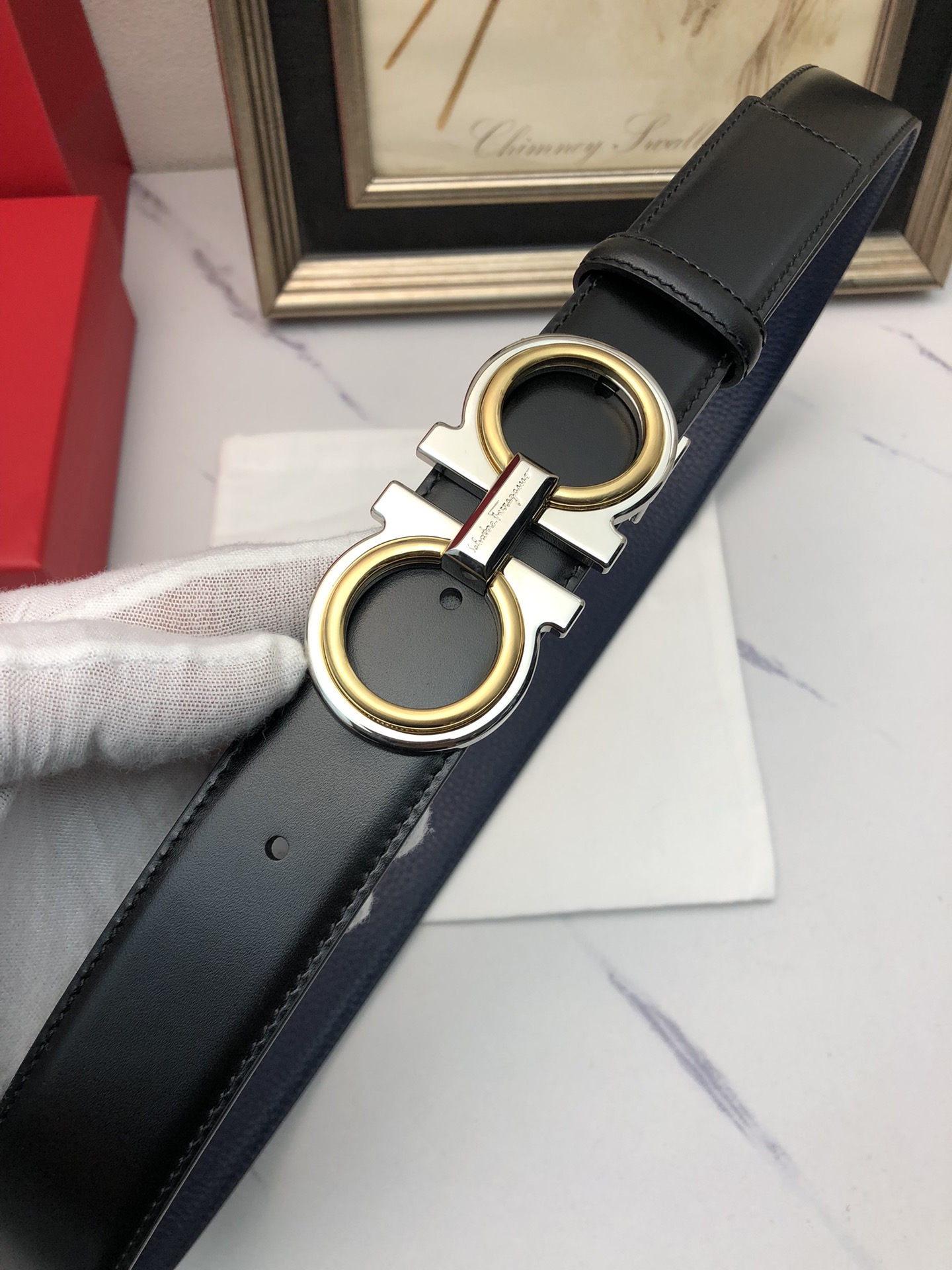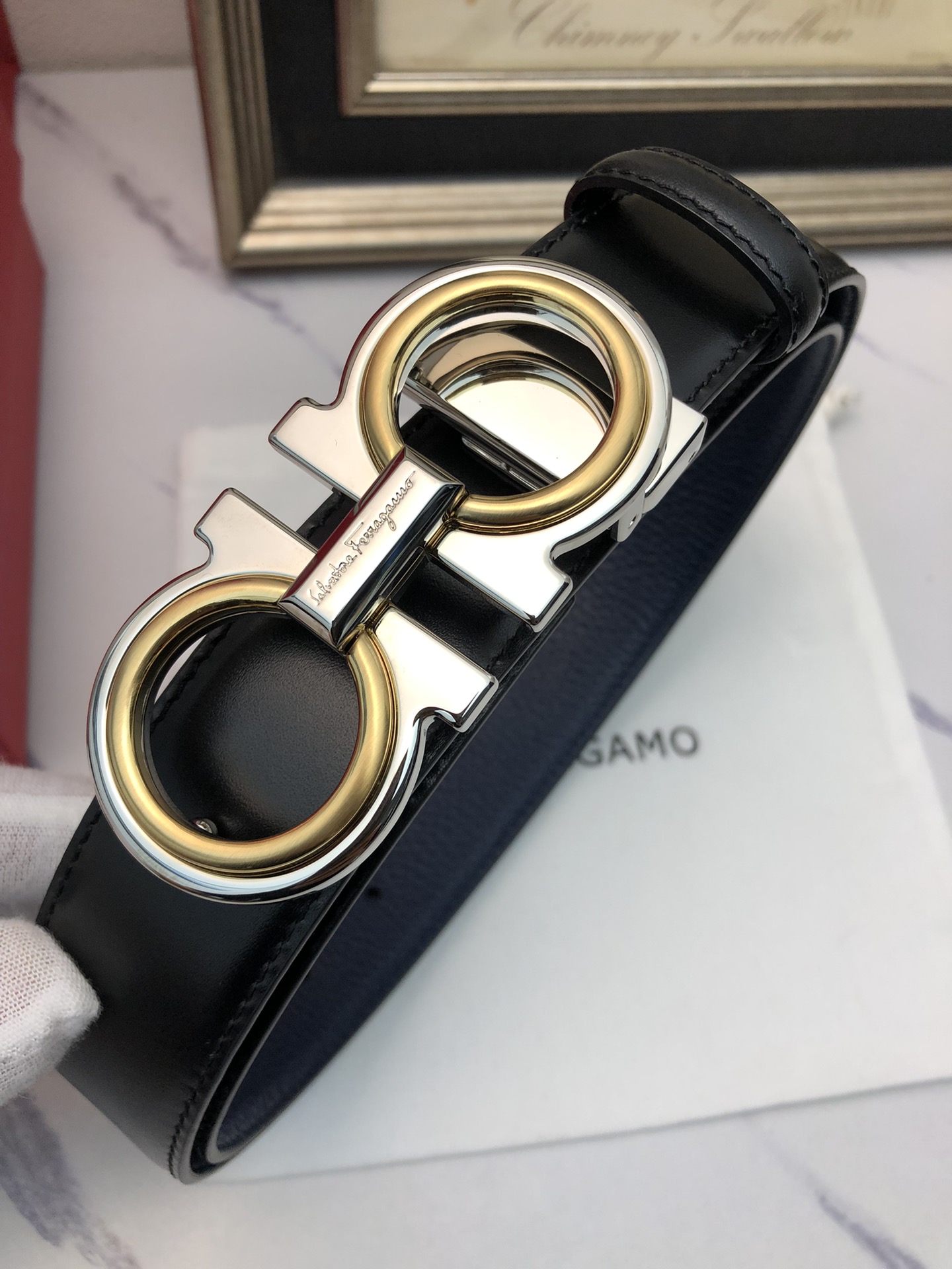 这款皮带是AAAAA 1:1 质量 (非常棒). 使用了和原版一模一样的材料. 商标部分也保持了和菲拉格慕/Salvatore Ferragamo一样. 图片拍摄是实物皮带拍摄, 您所收到的实物保证和我们图片一模一样.