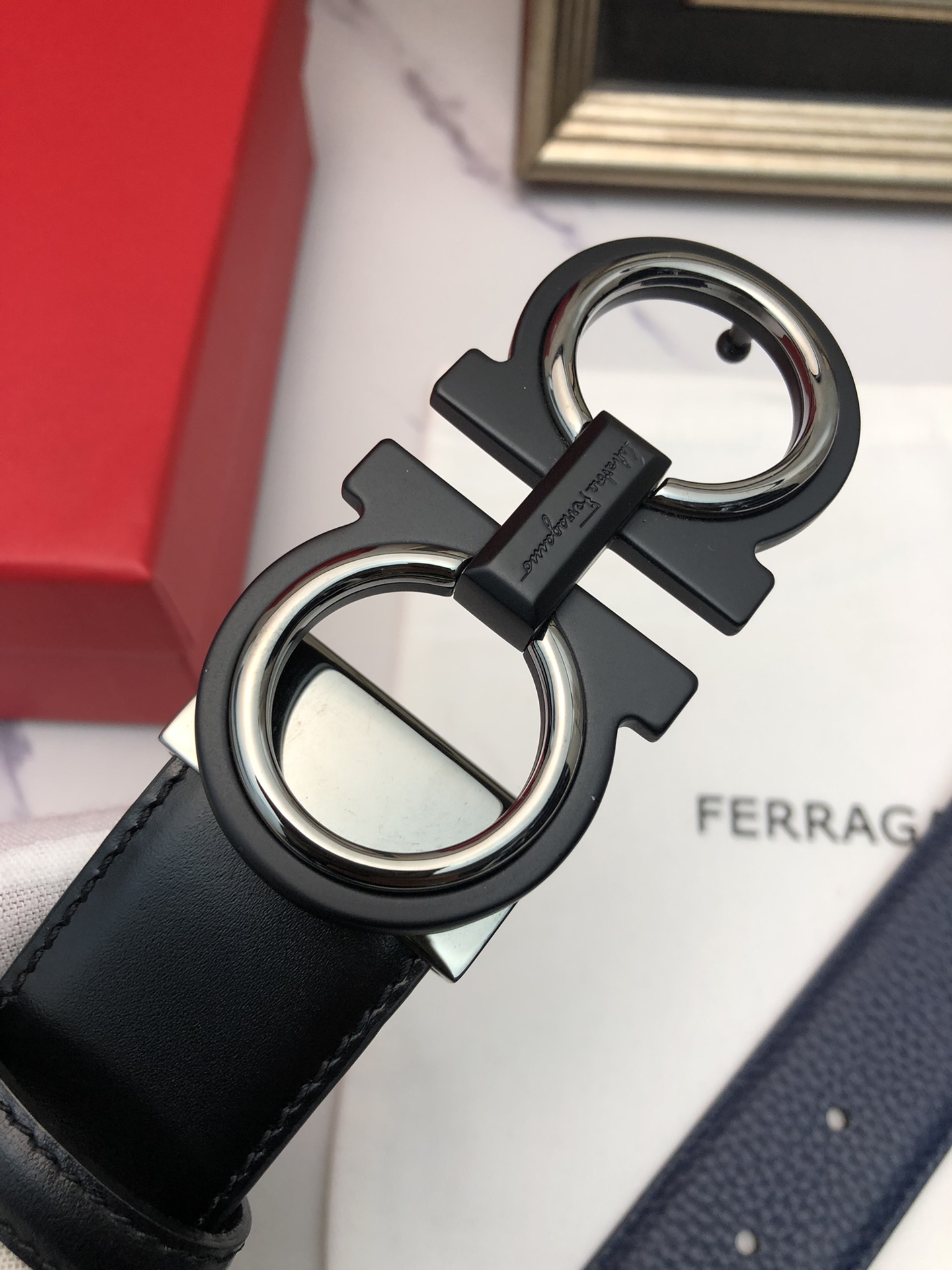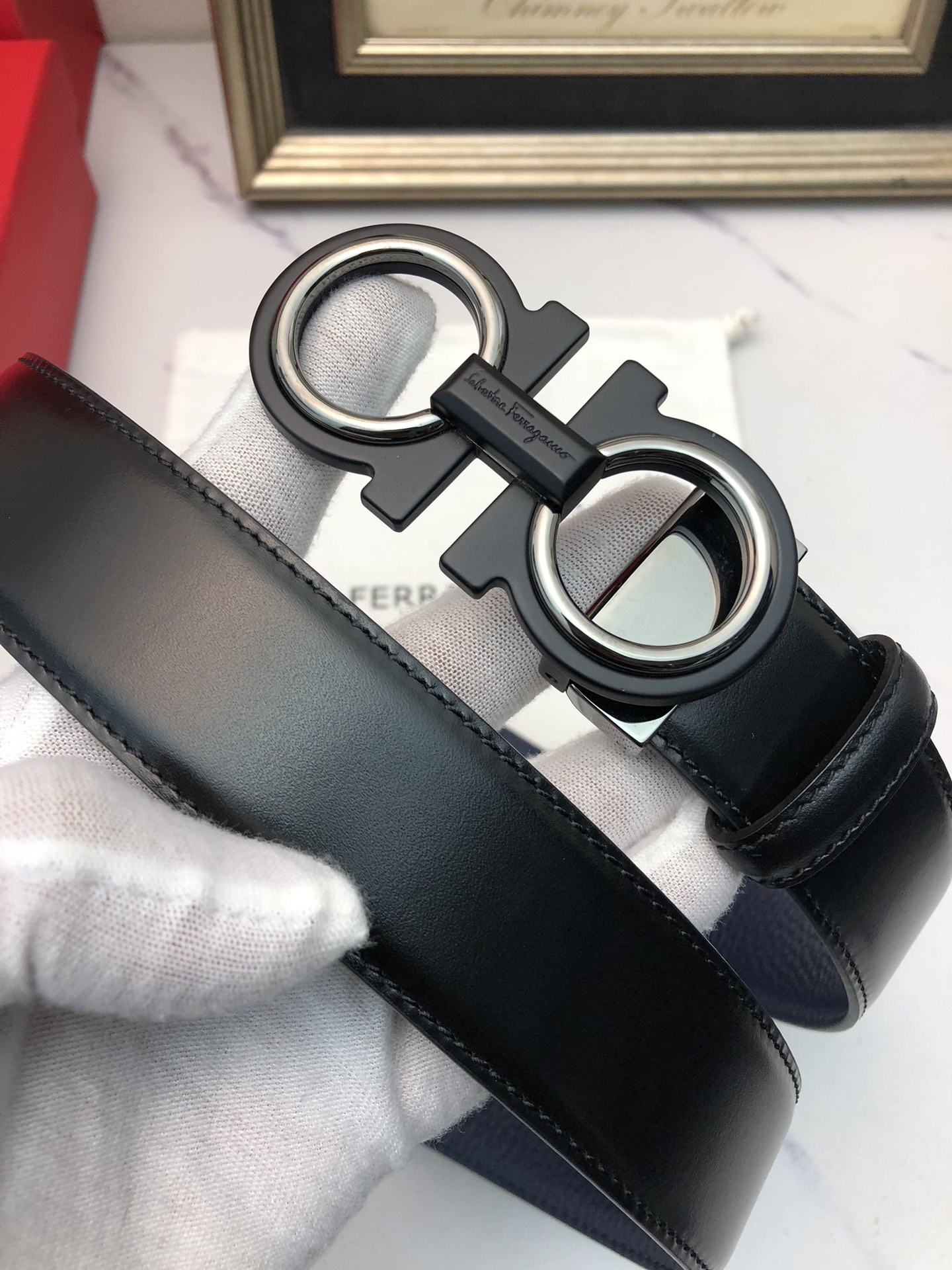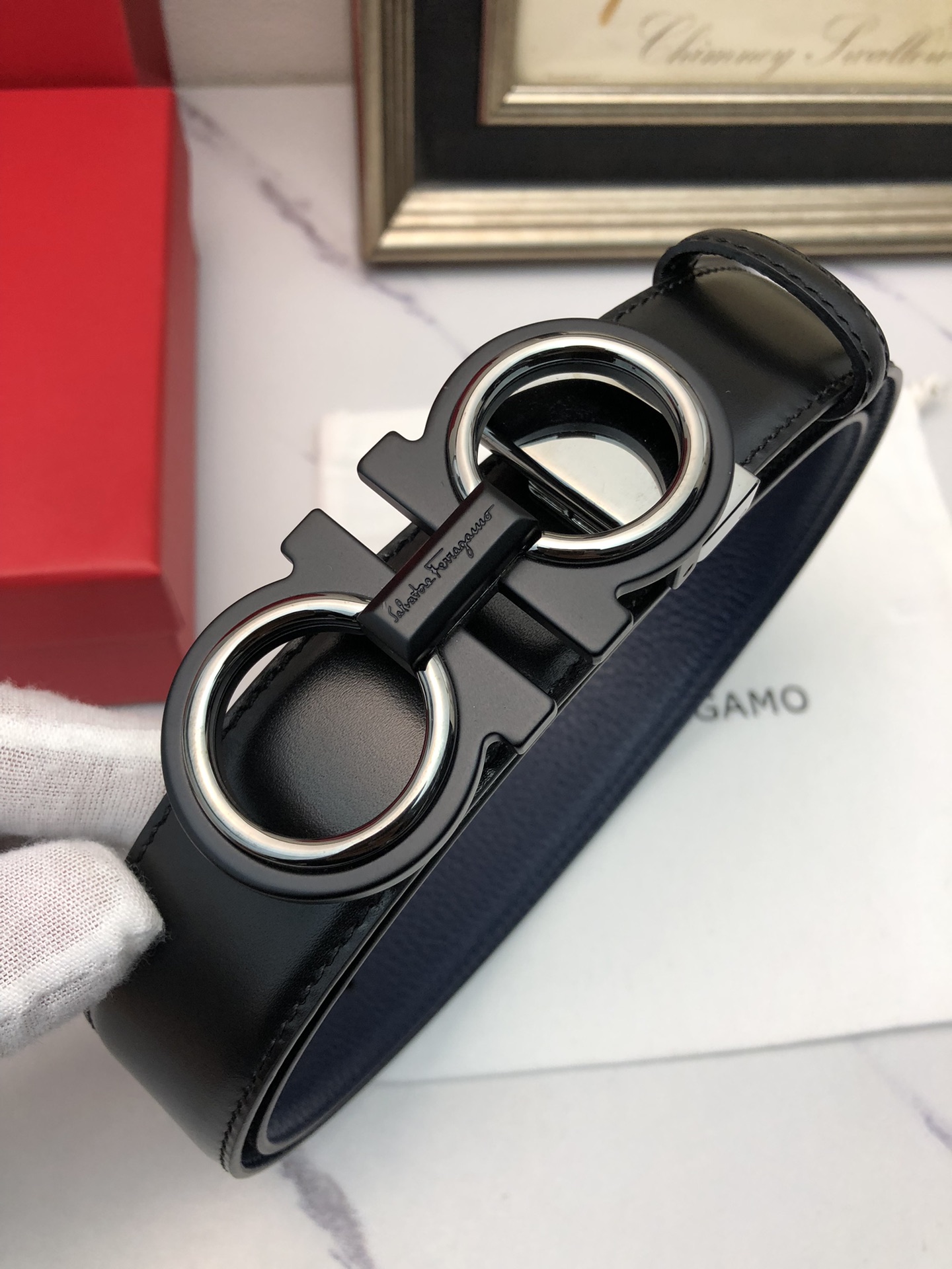 这款皮带是AAAAA 1:1 质量 (非常棒). 使用了和原版一模一样的材料. 商标部分也保持了和菲拉格慕/Salvatore Ferragamo一样. 图片拍摄是实物皮带拍摄, 您所收到的实物保证和我们图片一模一样.