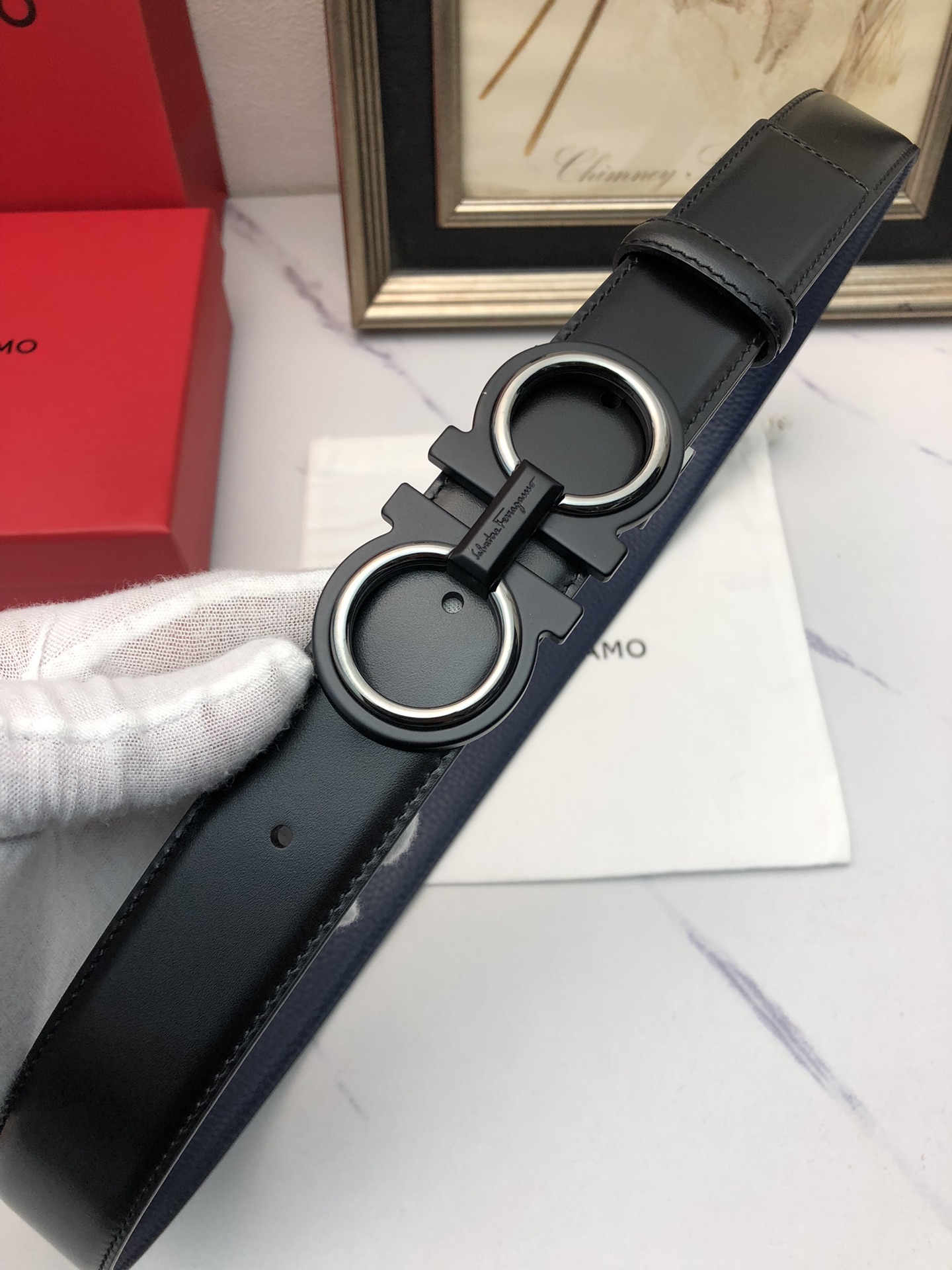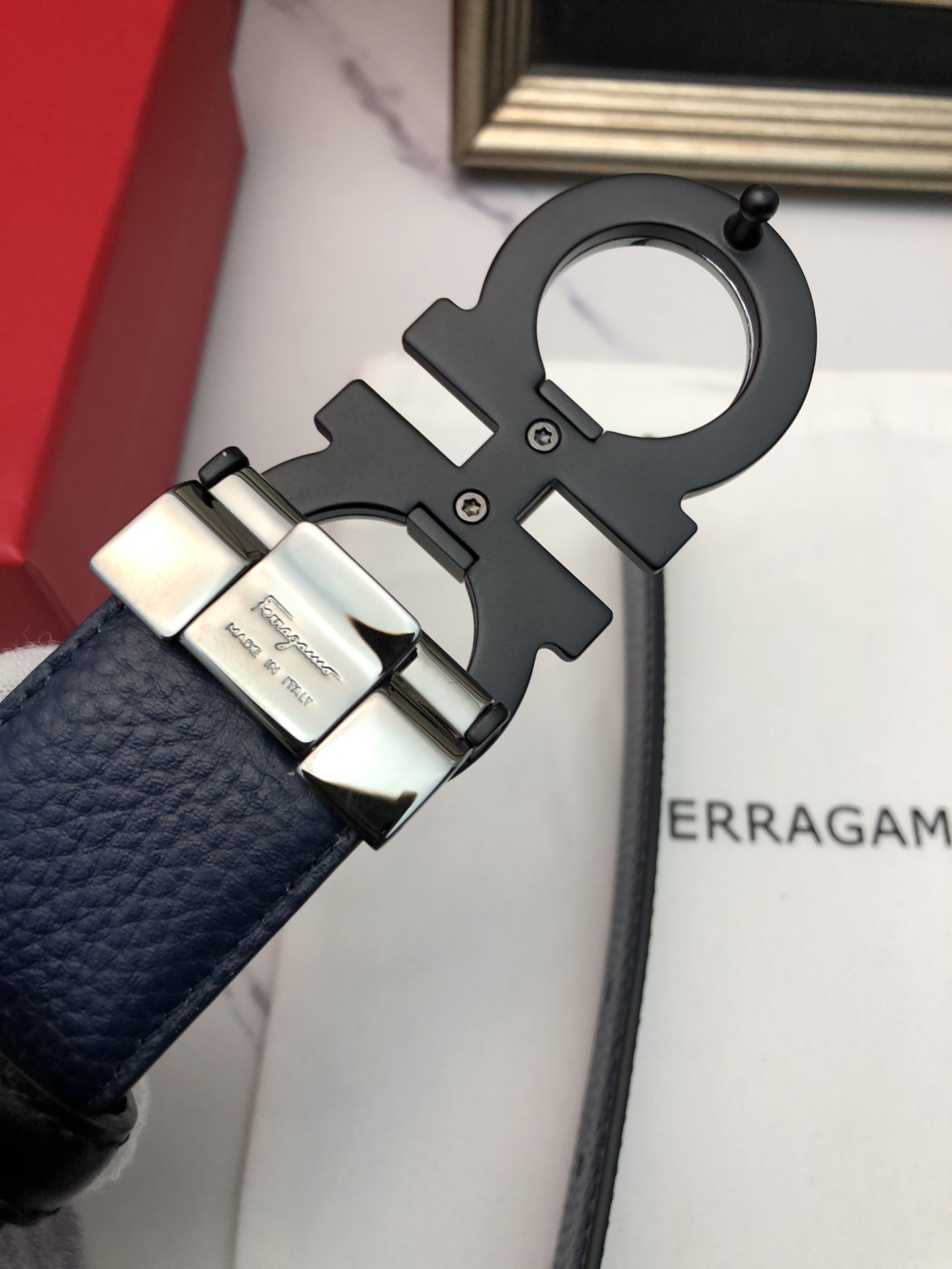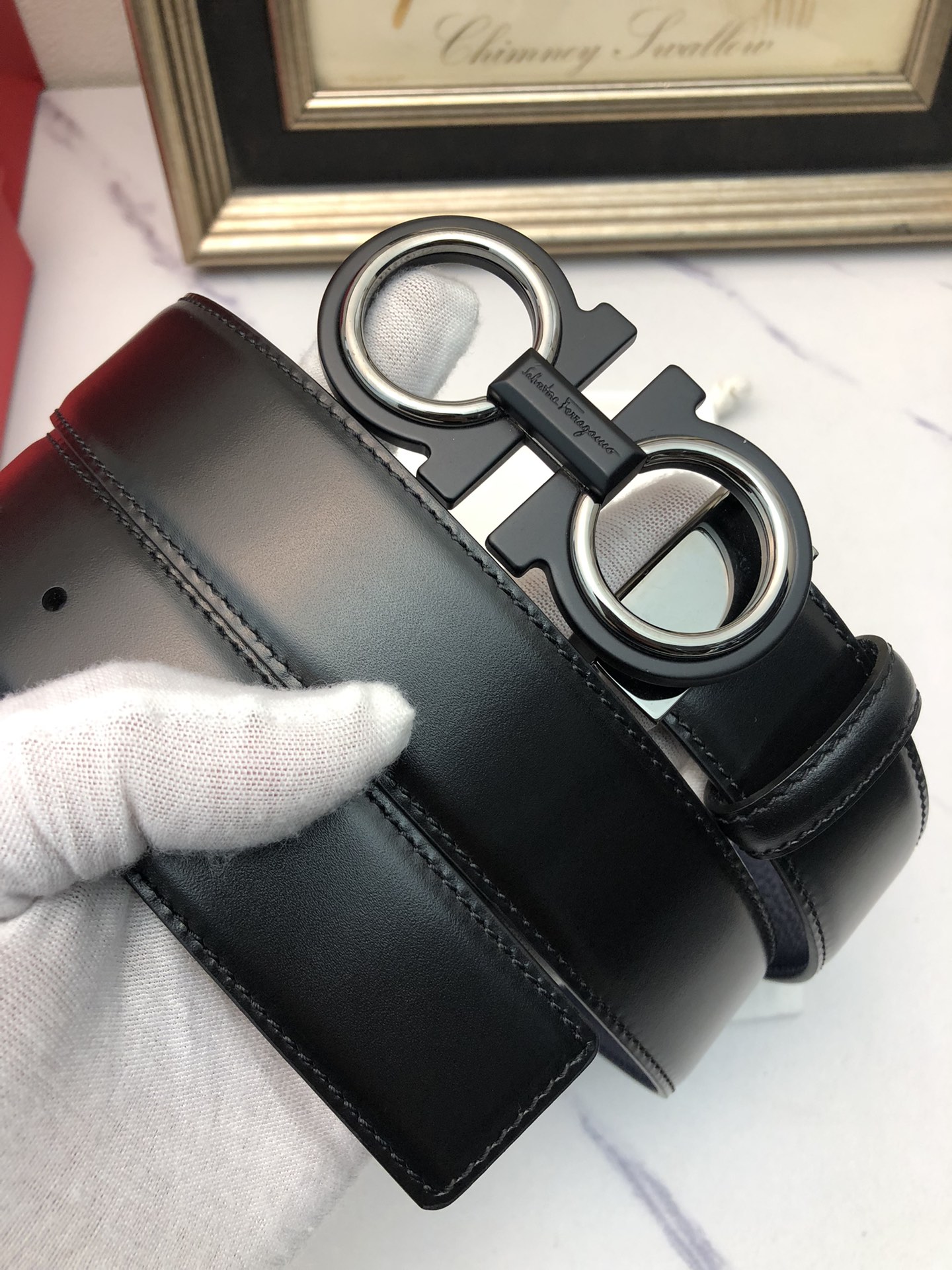 这款皮带是AAAAA 1:1 质量 (非常棒). 使用了和原版一模一样的材料. 商标部分也保持了和菲拉格慕/Salvatore Ferragamo一样. 图片拍摄是实物皮带拍摄, 您所收到的实物保证和我们图片一模一样.