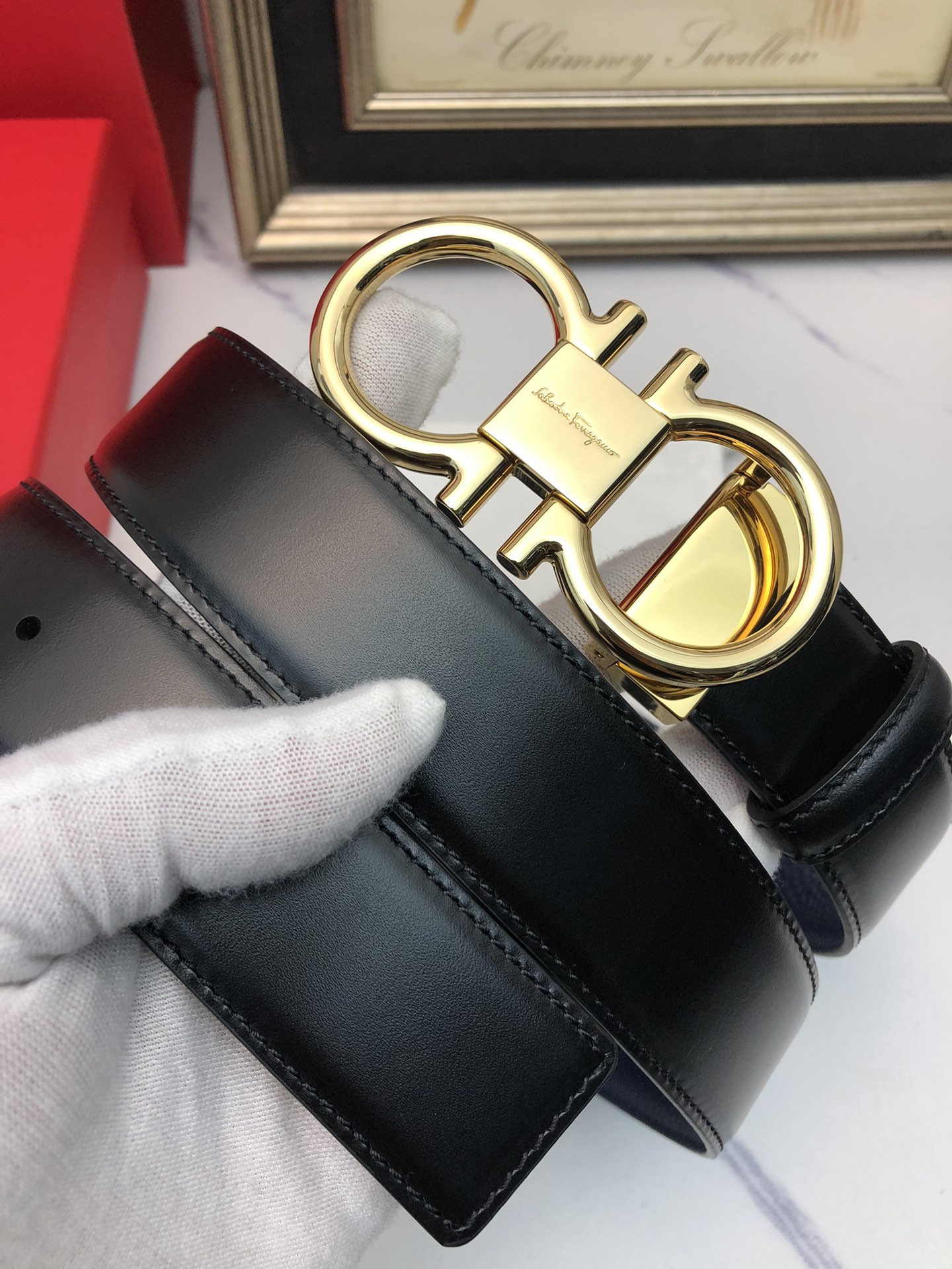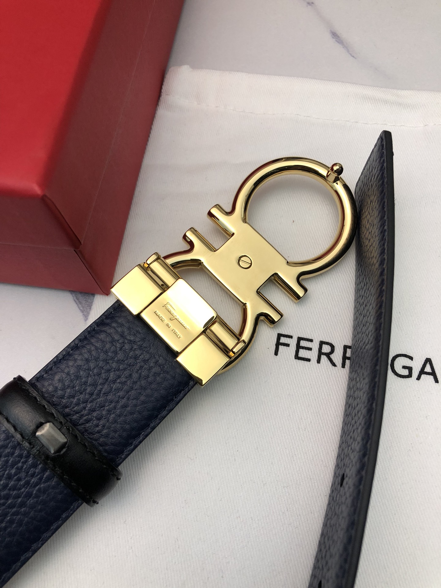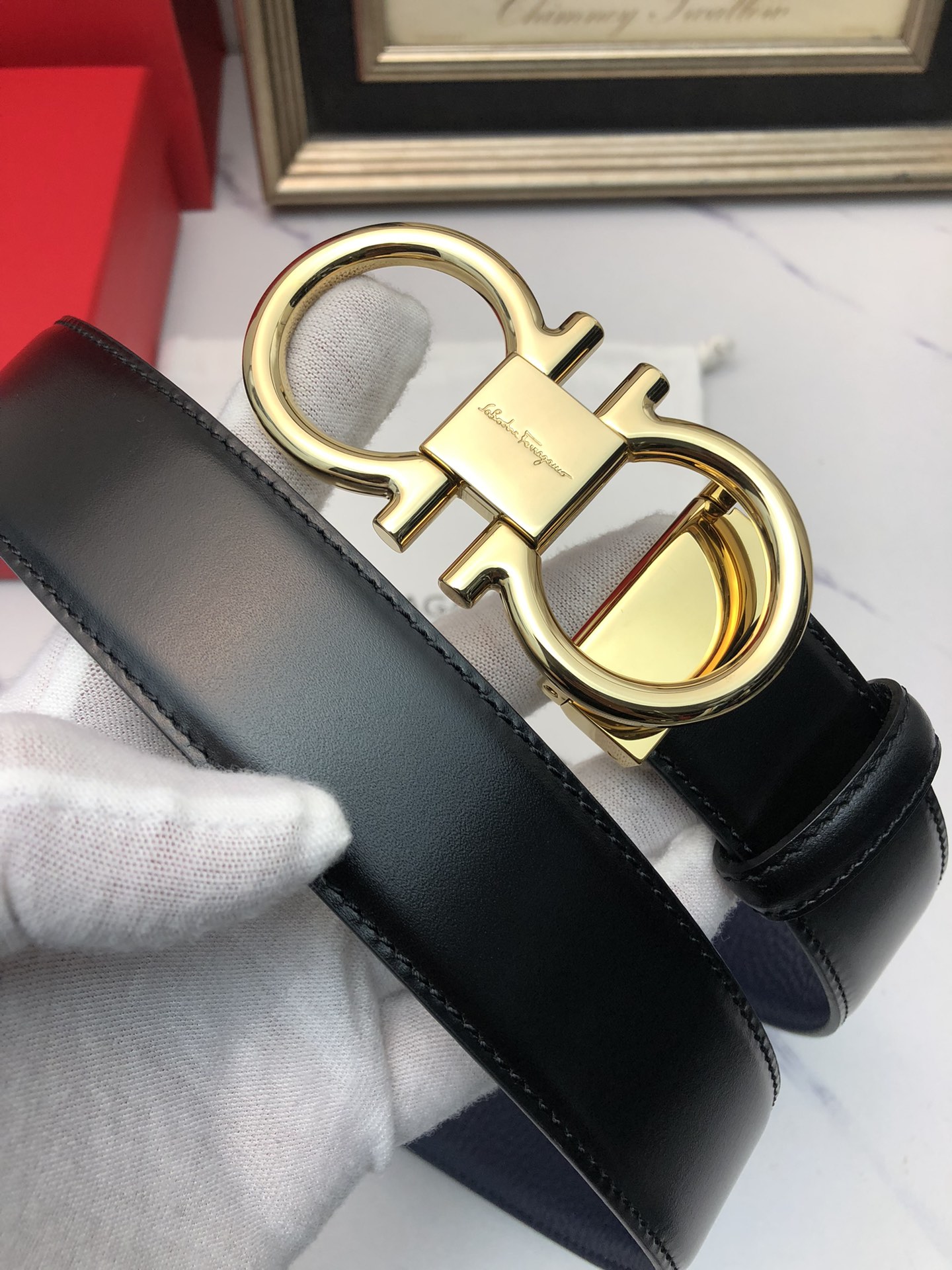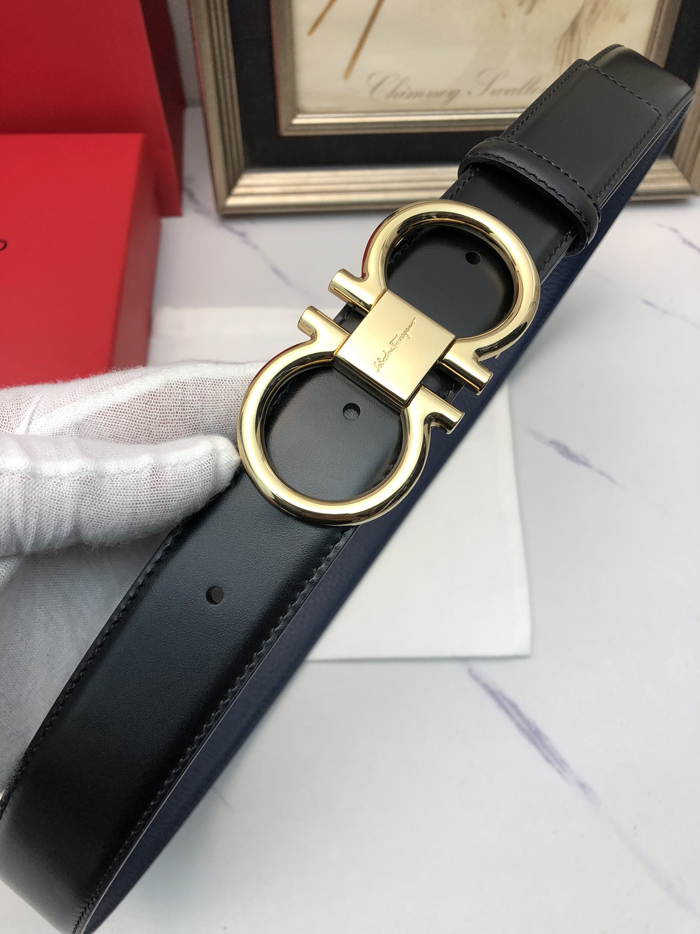 这款皮带是AAAAA 1:1 质量 (非常棒). 使用了和原版一模一样的材料. 商标部分也保持了和菲拉格慕/Salvatore Ferragamo一样. 图片拍摄是实物皮带拍摄, 您所收到的实物保证和我们图片一模一样.