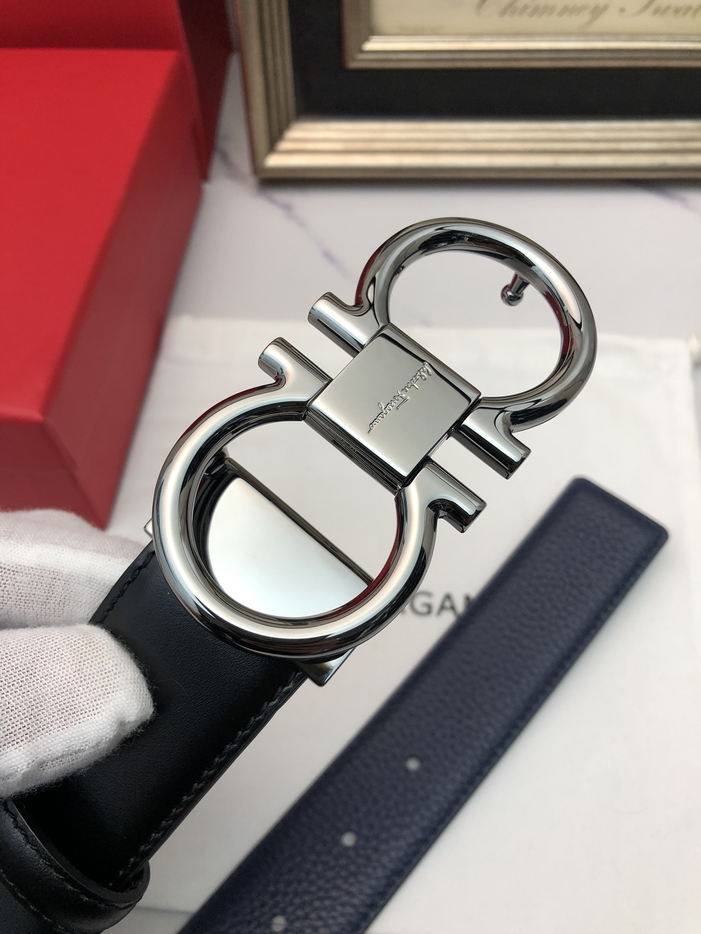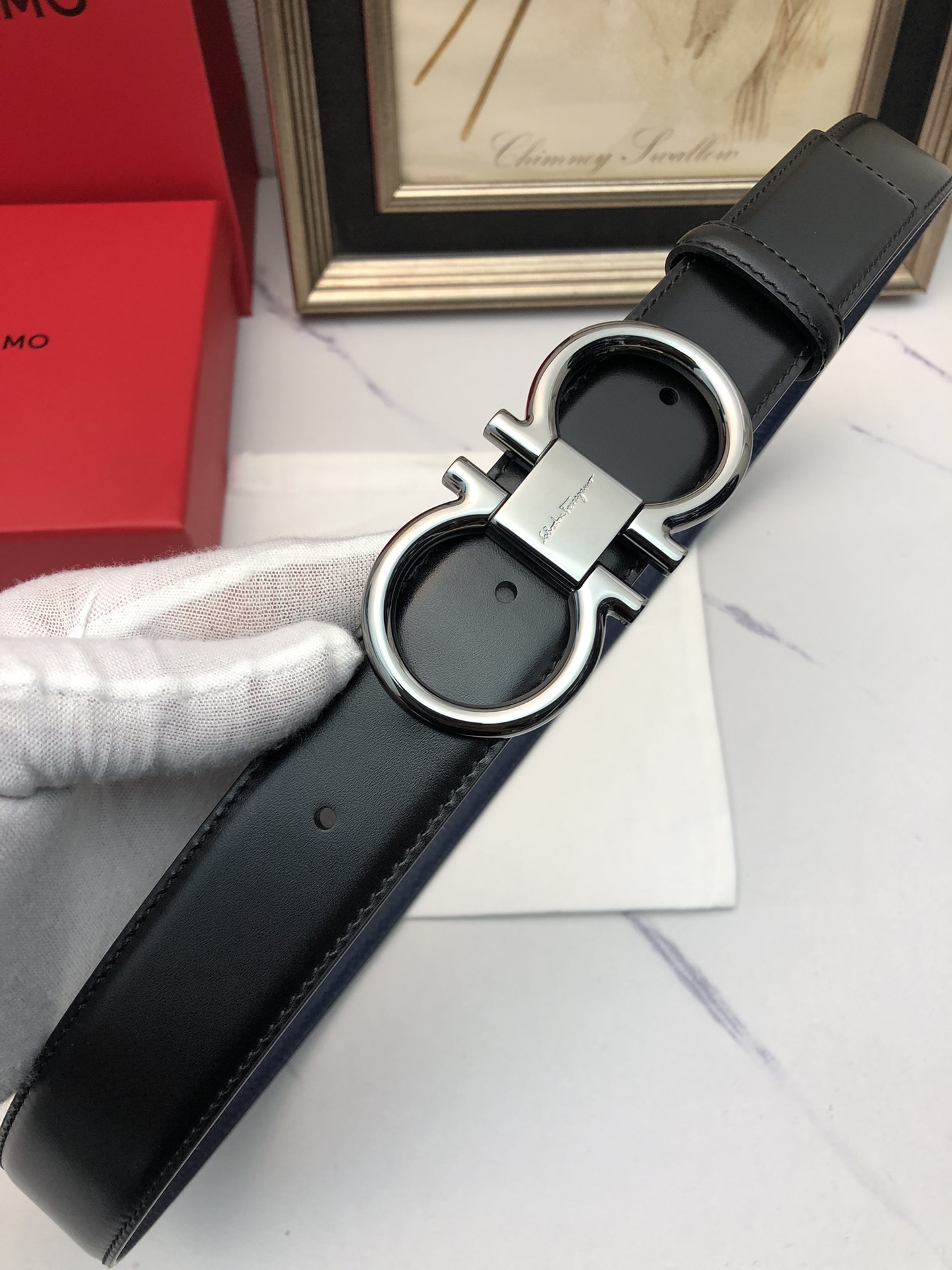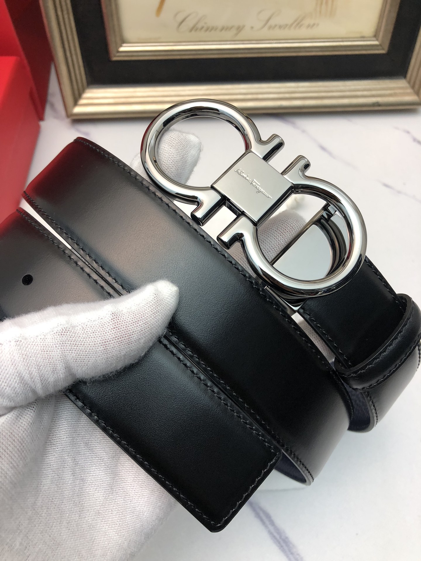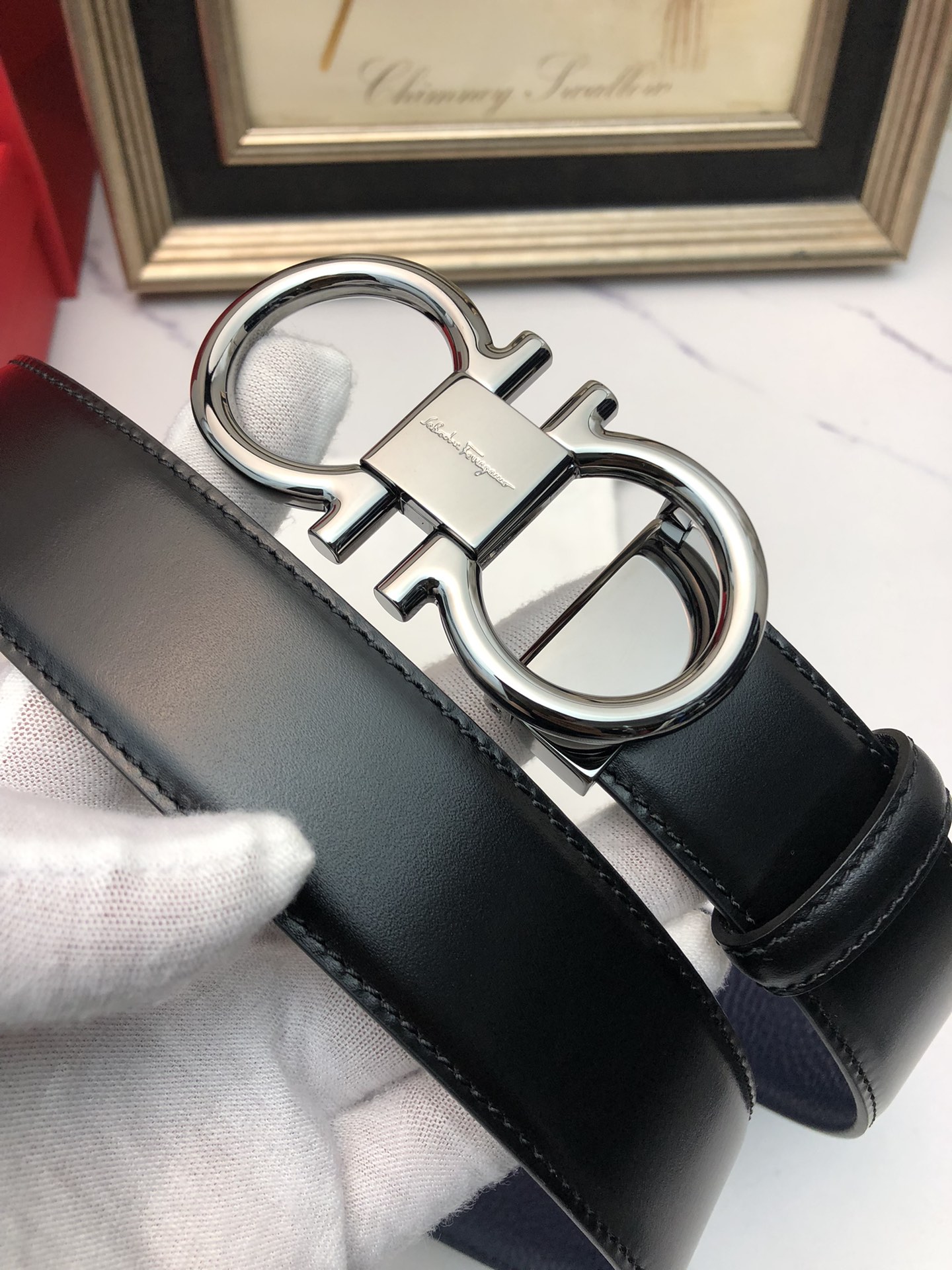 这款皮带是AAAAA 1:1 质量 (非常棒). 使用了和原版一模一样的材料. 商标部分也保持了和菲拉格慕/Salvatore Ferragamo一样. 图片拍摄是实物皮带拍摄, 您所收到的实物保证和我们图片一模一样.