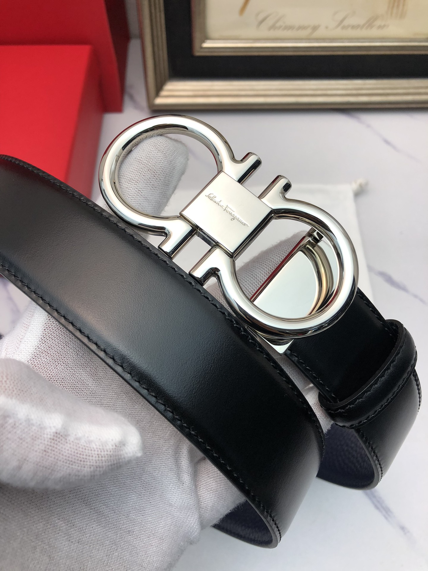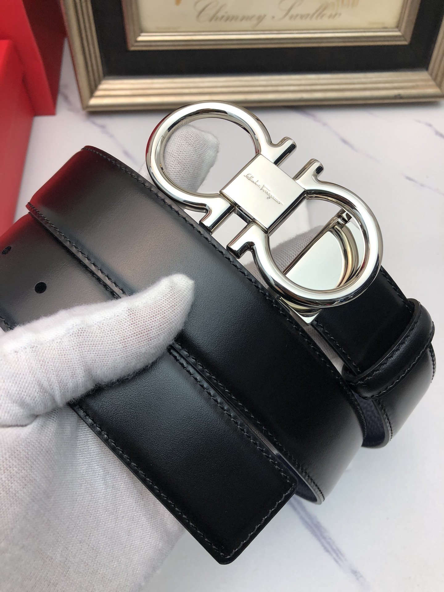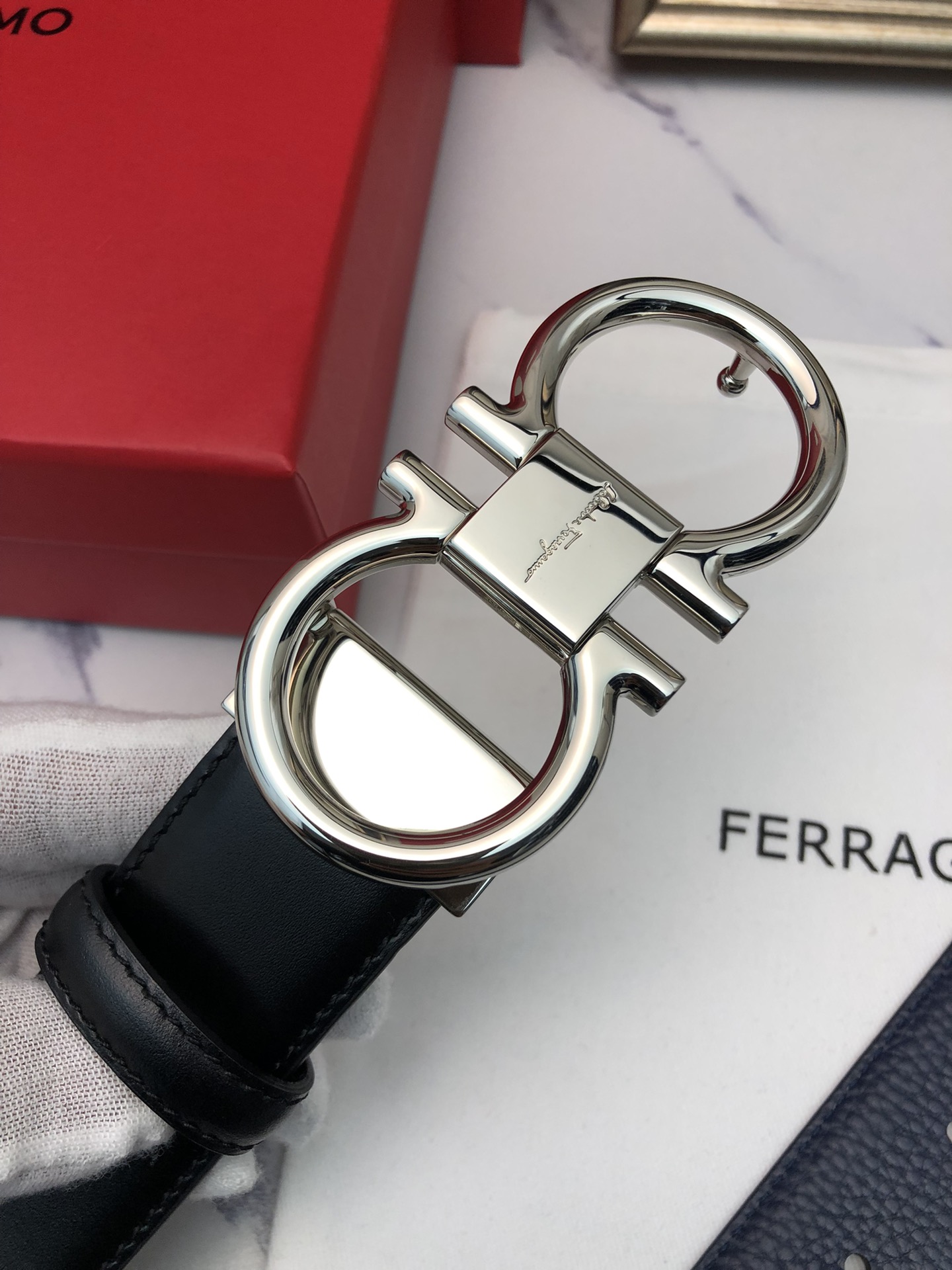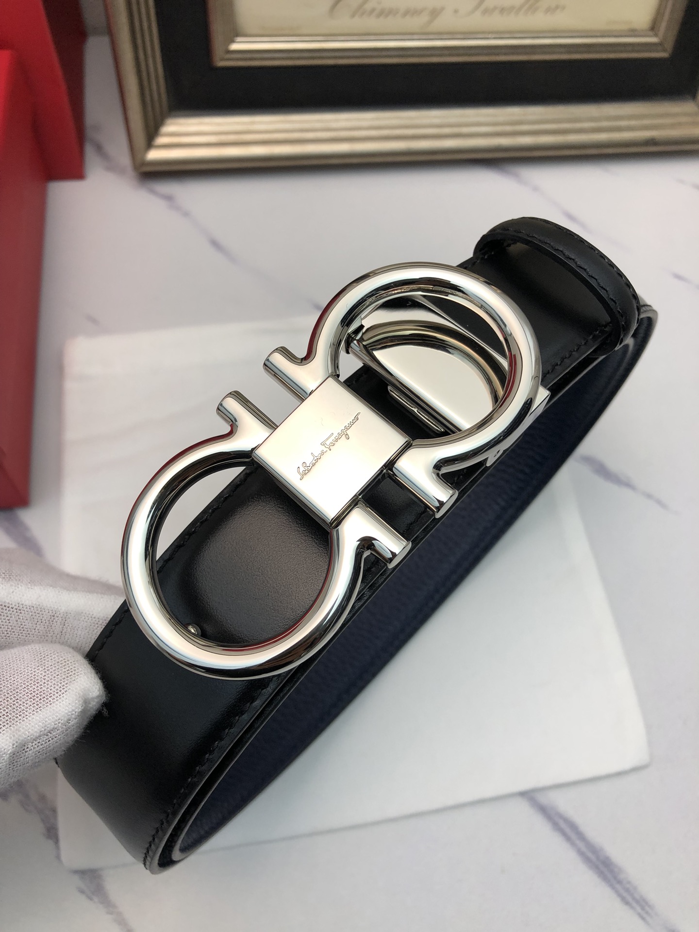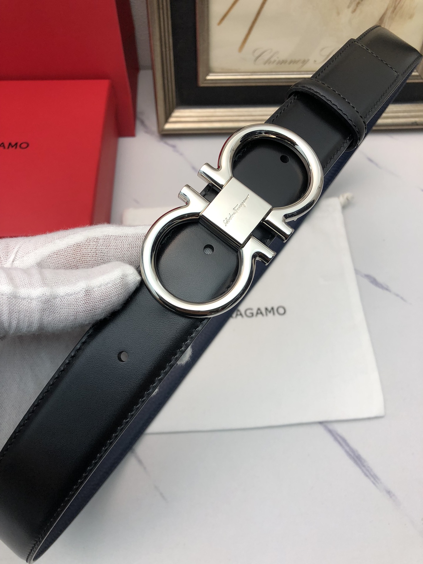 这款皮带是AAAAA 1:1 质量 (非常棒). 使用了和原版一模一样的材料. 商标部分也保持了和菲拉格慕/Salvatore Ferragamo一样. 图片拍摄是实物皮带拍摄, 您所收到的实物保证和我们图片一模一样.