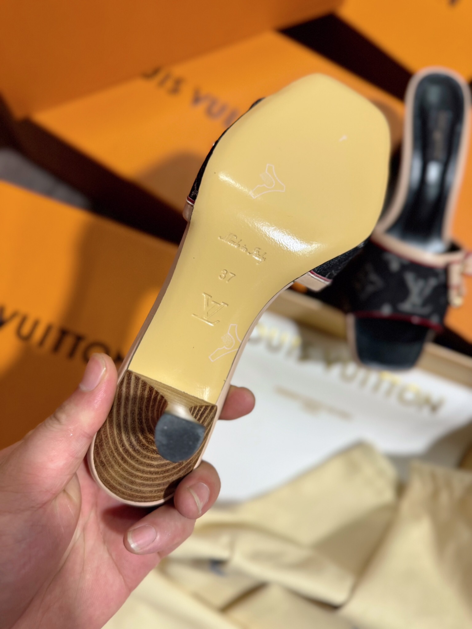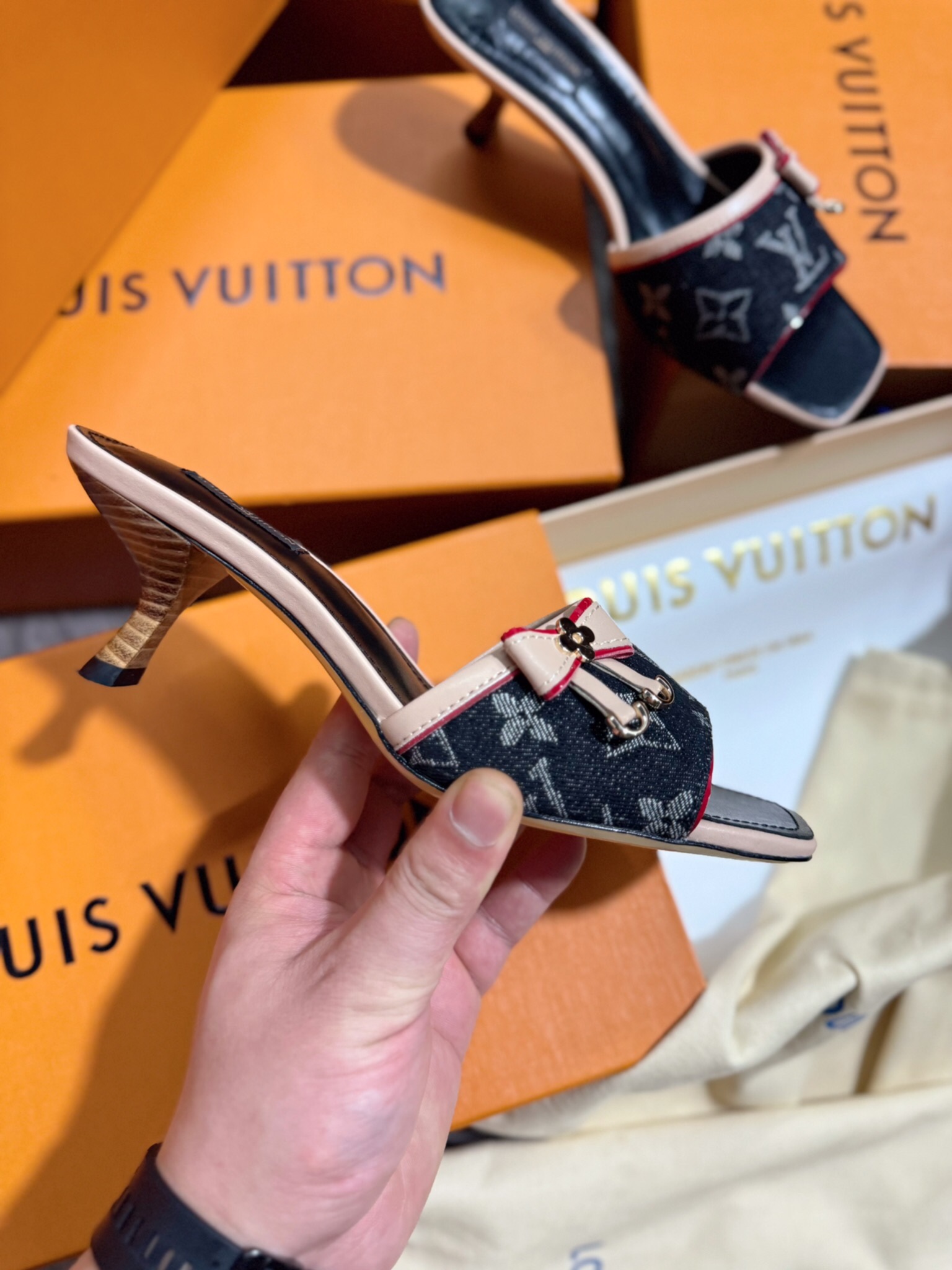 这款鞋子是AAAAA 1:1 质量 (非常棒). 使用了和原版一模一样的材料. 商标部分也保持了和路易威登/Louis Vuitton一样. 图片拍摄是实物鞋子拍摄, 您所收到的实物保证和我们图片一模一样.