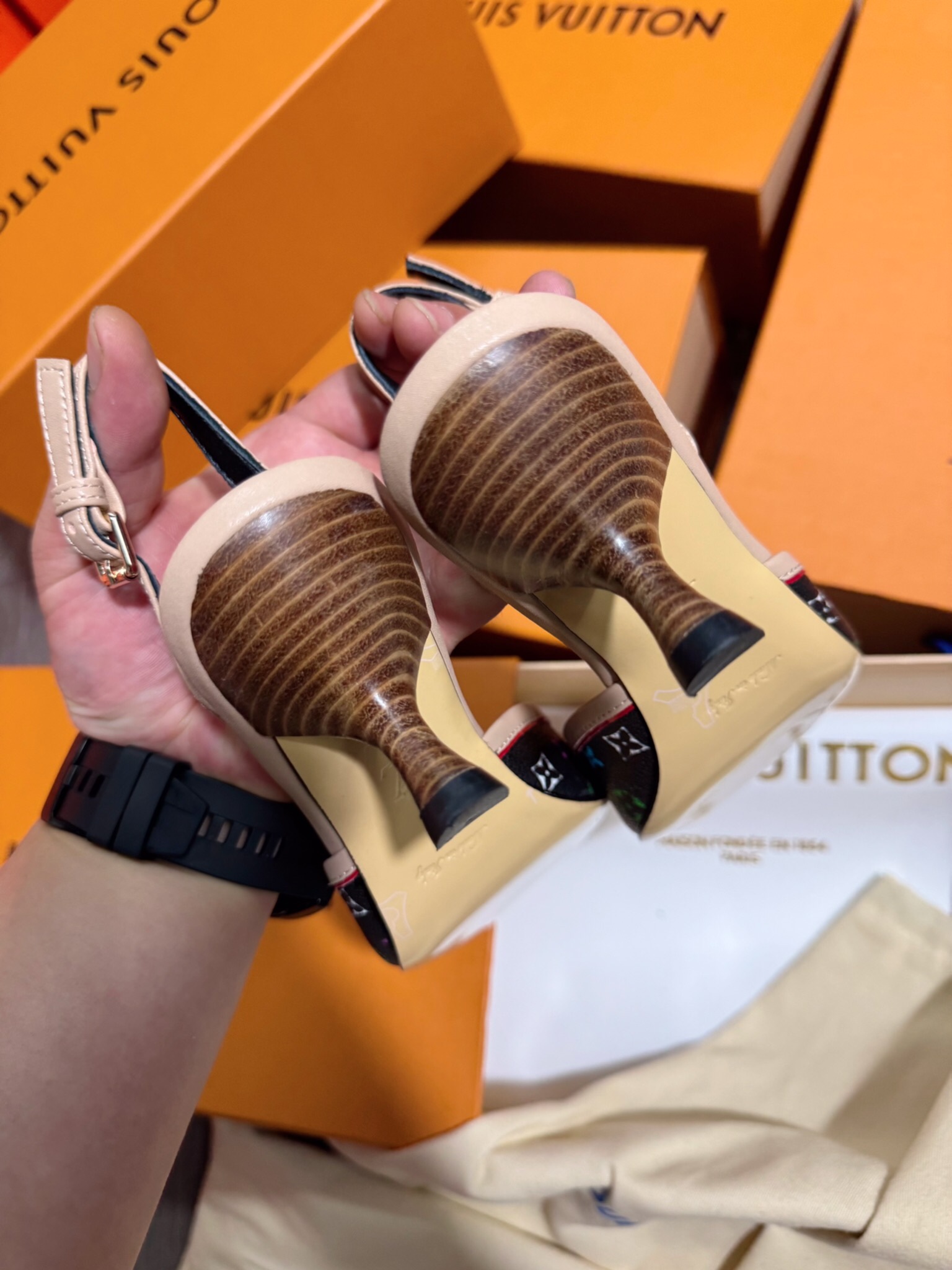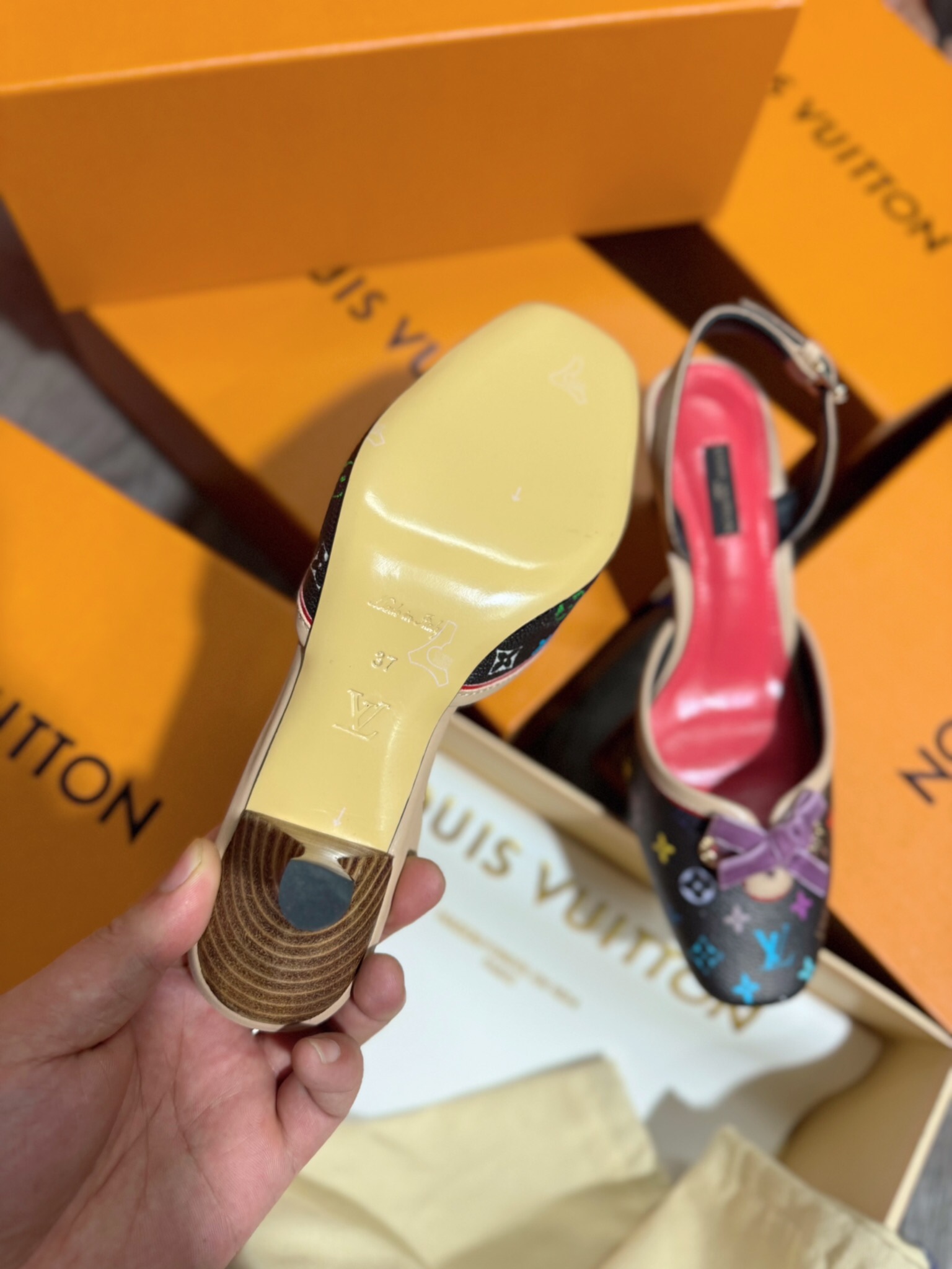 这款鞋子是AAAAA 1:1 质量 (非常棒). 使用了和原版一模一样的材料. 商标部分也保持了和路易威登/Louis Vuitton一样. 图片拍摄是实物鞋子拍摄, 您所收到的实物保证和我们图片一模一样.