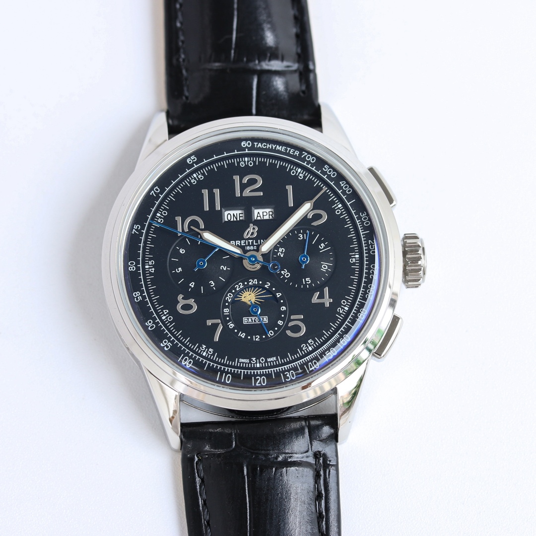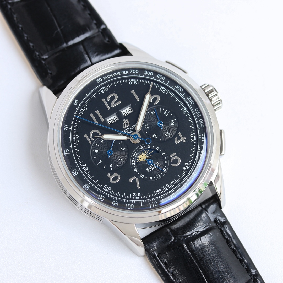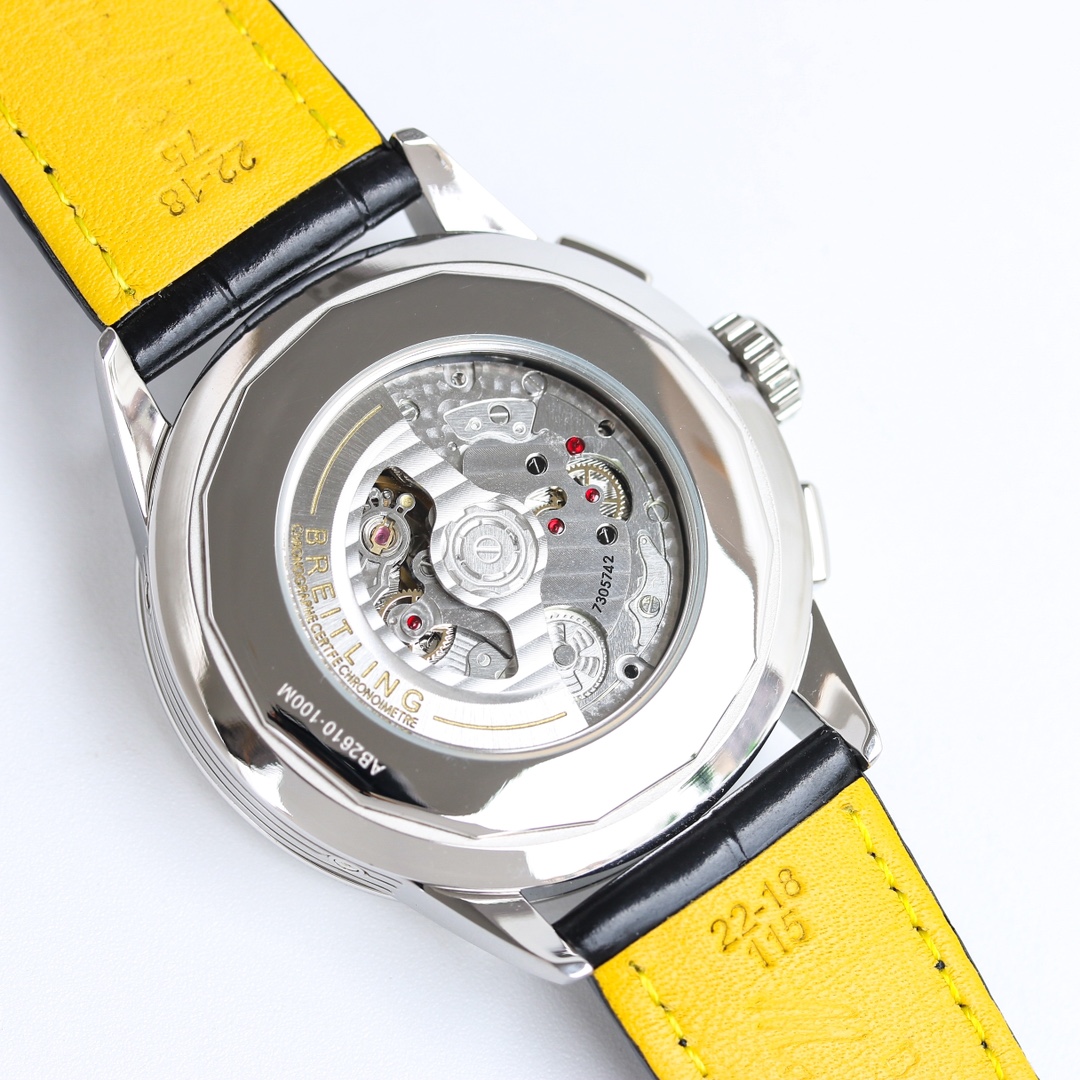 这款手表是AAAAA 1:1 质量 (非常棒). 使用了和原版一模一样的材料. 商标部分也保持了和Breitling一样. 图片拍摄是实物手表拍摄, 您所收到的实物保证和我们图片一模一样.