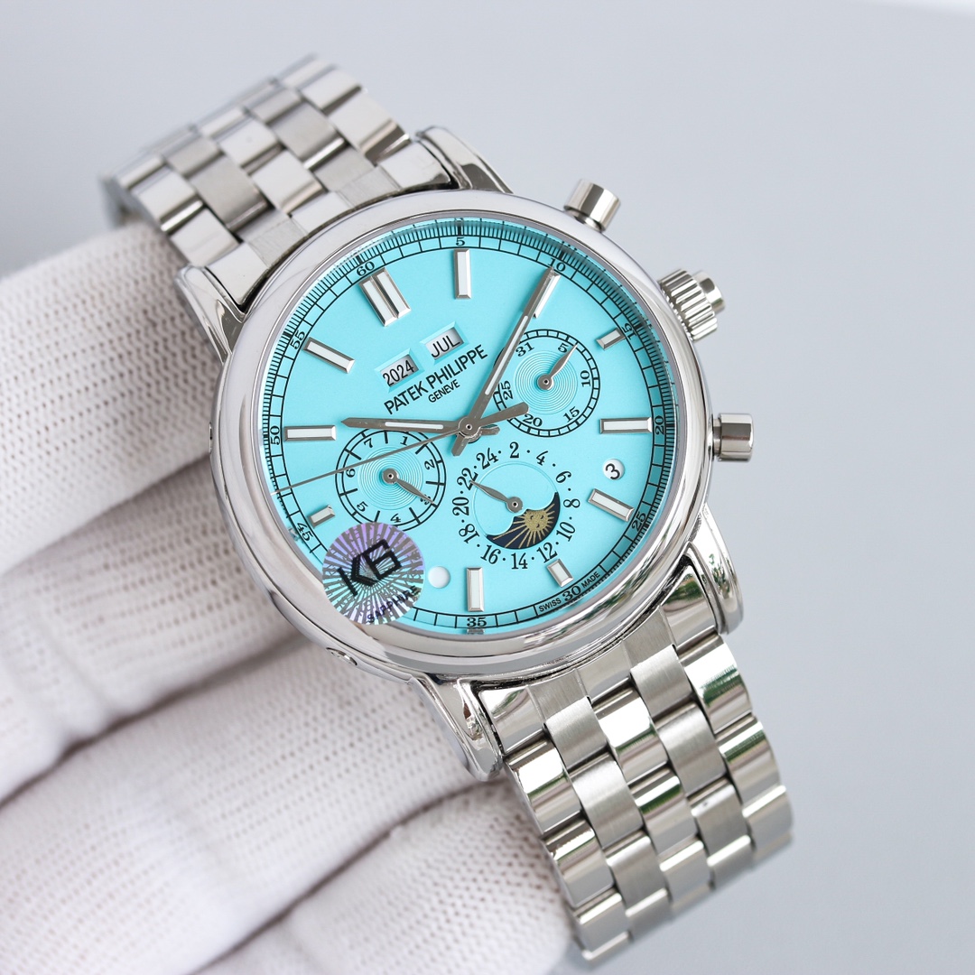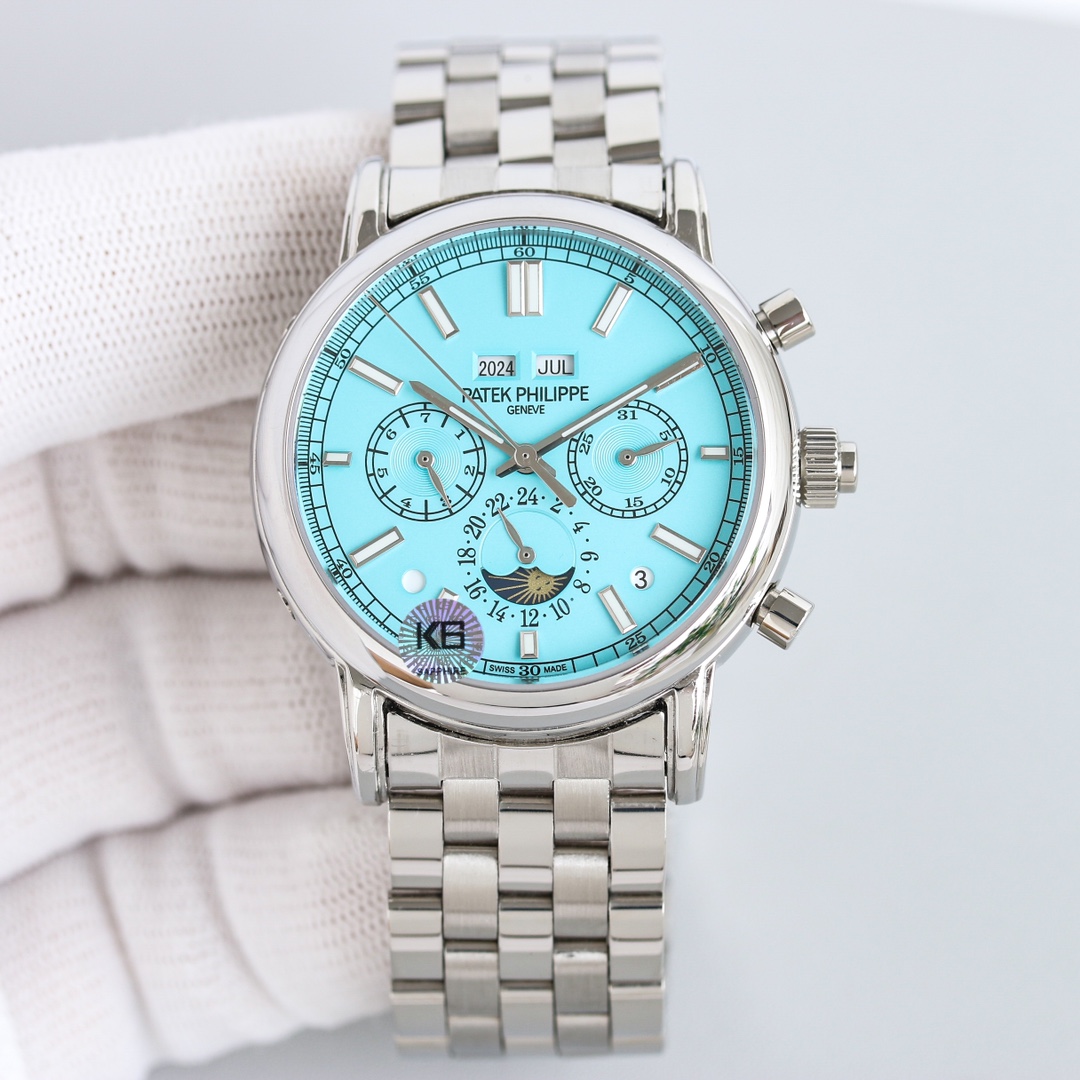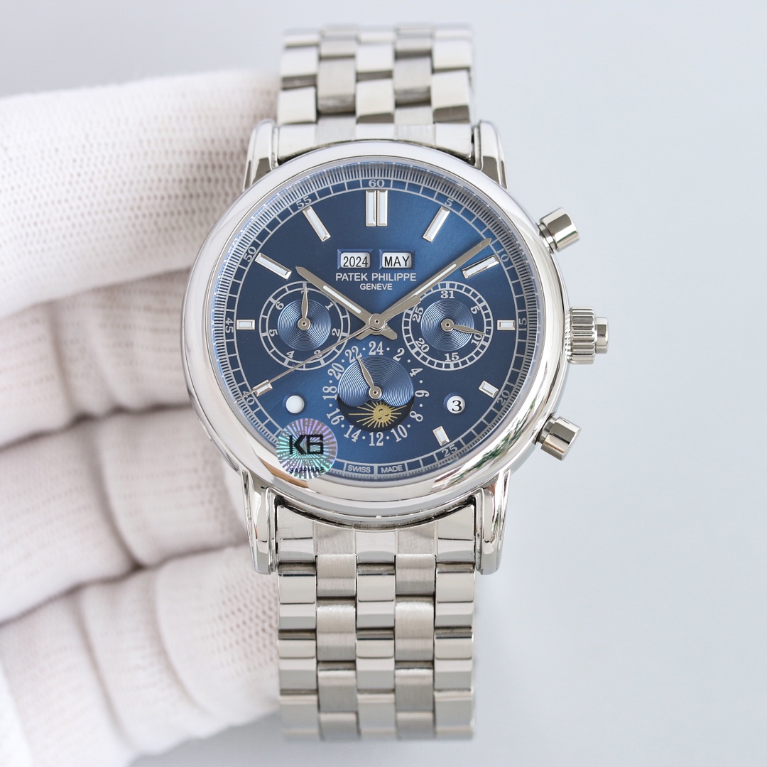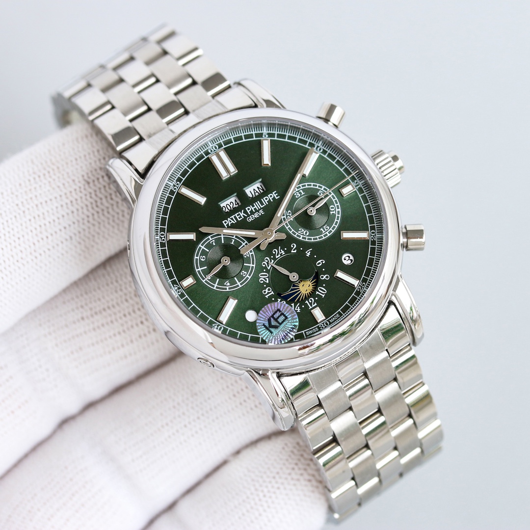 这款手表是AAAAA 1:1 质量 (非常棒). 使用了和原版一模一样的材料. 商标部分也保持了和百达翡丽/Patek Philippe一样. 图片拍摄是实物手表拍摄, 您所收到的实物保证和我们图片一模一样.