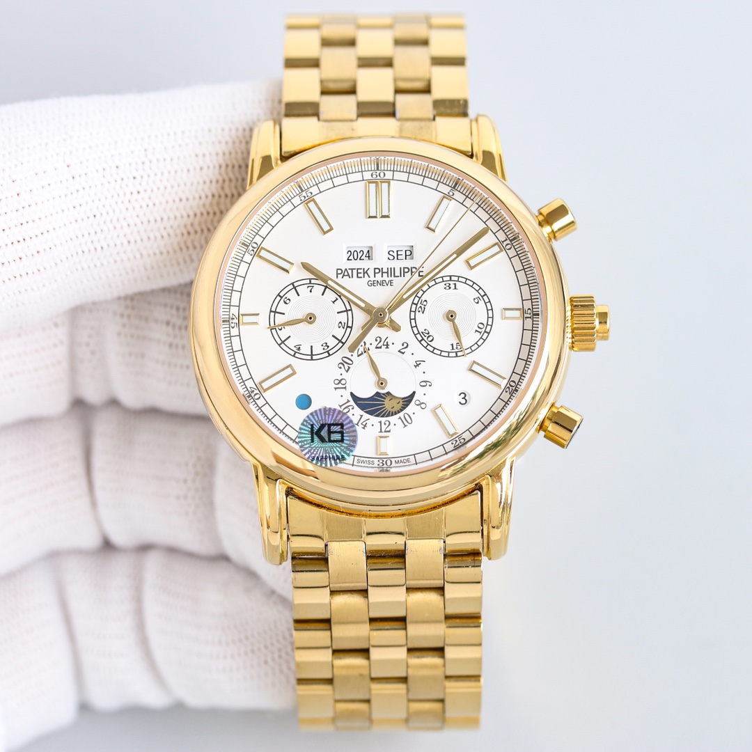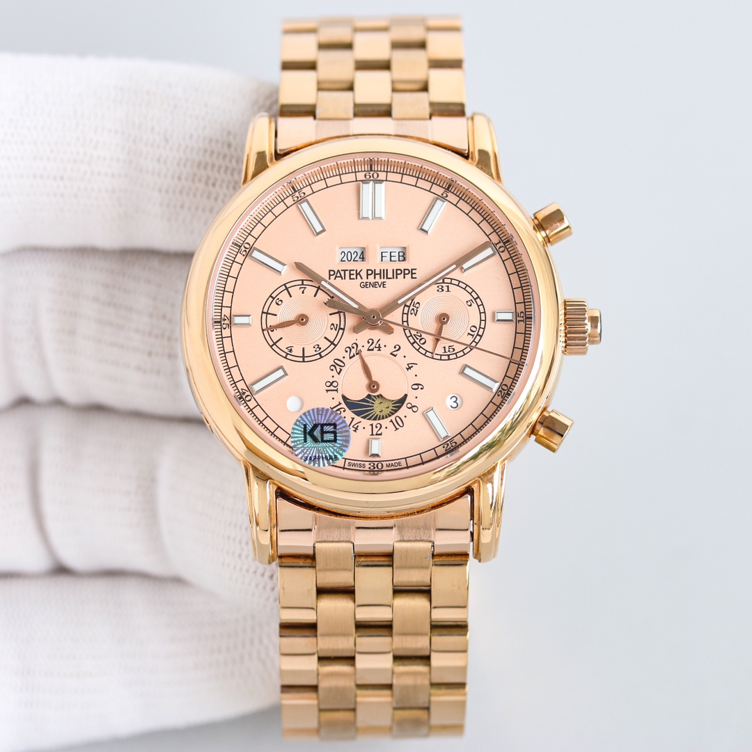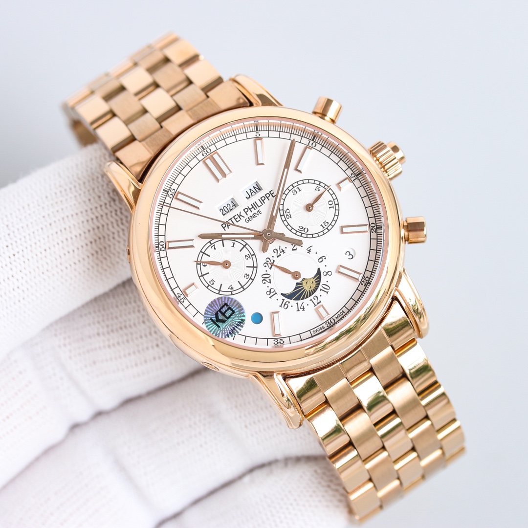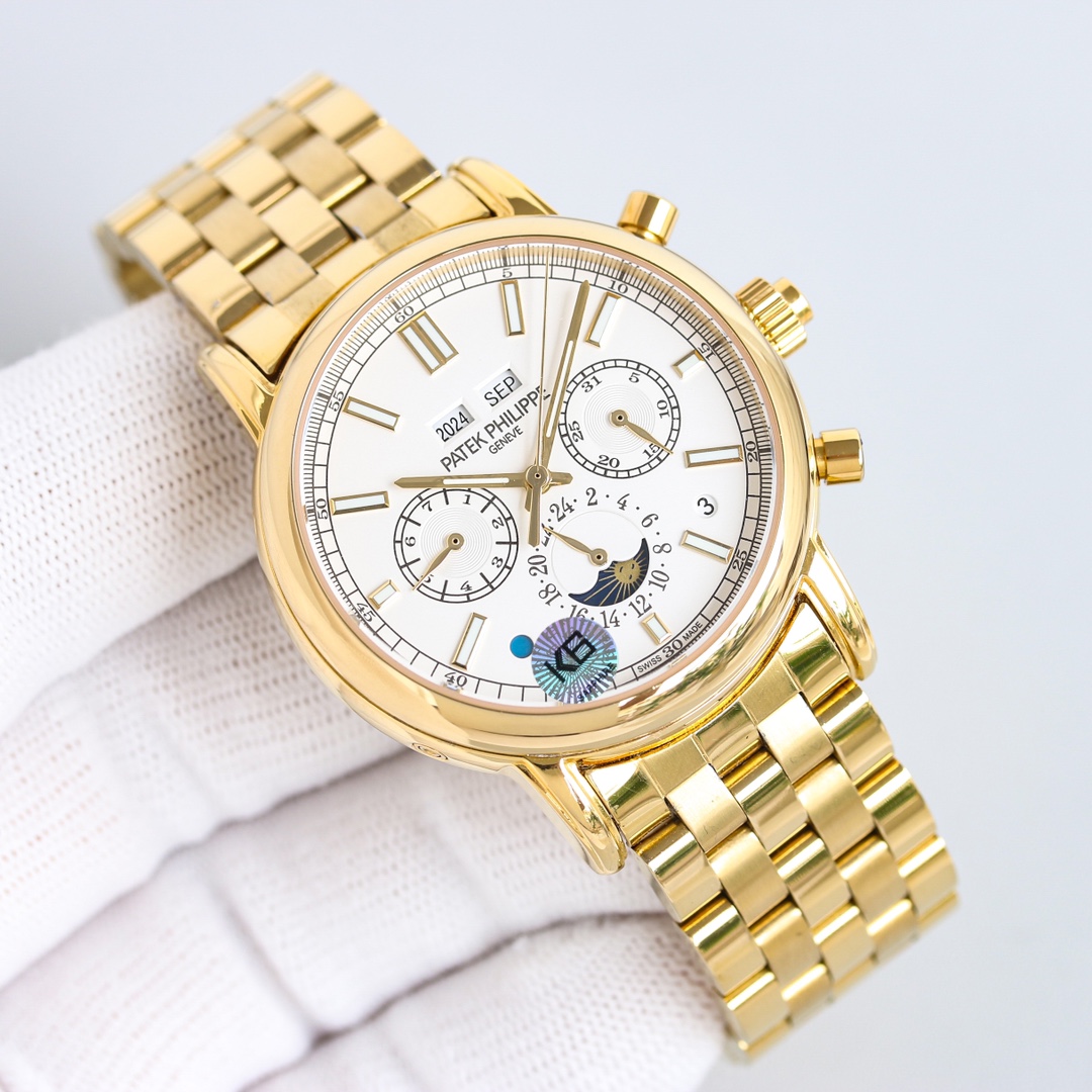 这款手表是AAAAA 1:1 质量 (非常棒). 使用了和原版一模一样的材料. 商标部分也保持了和百达翡丽/Patek Philippe一样. 图片拍摄是实物手表拍摄, 您所收到的实物保证和我们图片一模一样.