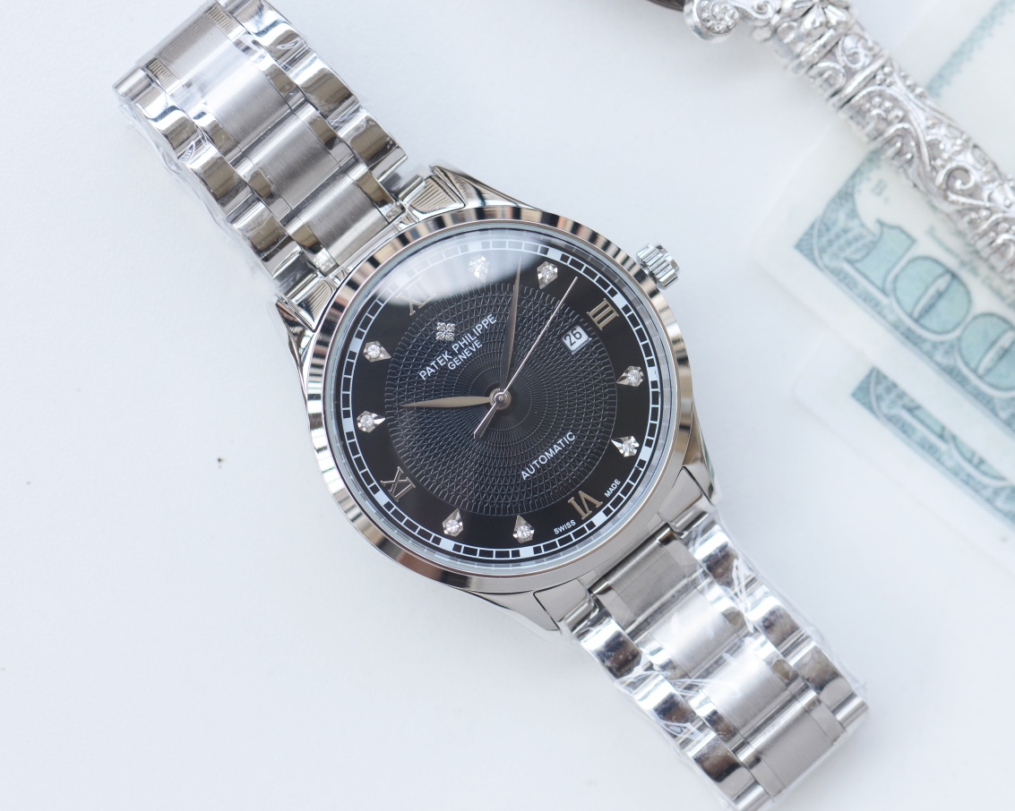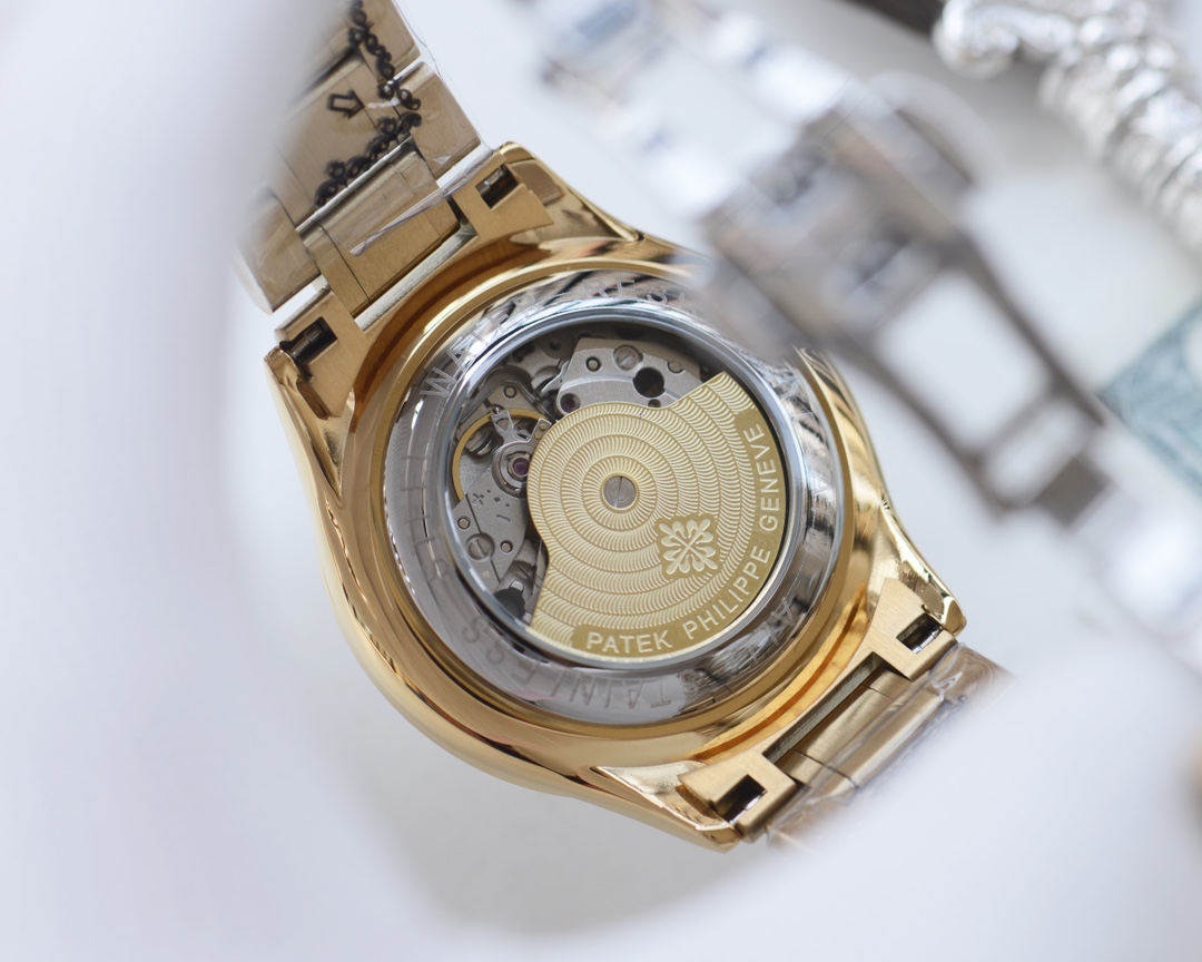 这款手表是AAAAA 1:1 质量 (非常棒). 使用了和原版一模一样的材料. 商标部分也保持了和百达翡丽/Patek Philippe一样. 图片拍摄是实物手表拍摄, 您所收到的实物保证和我们图片一模一样.