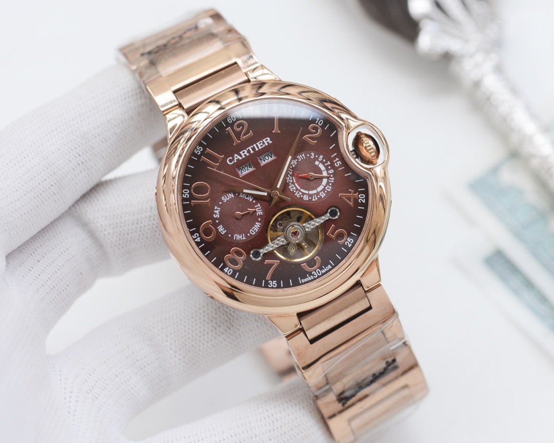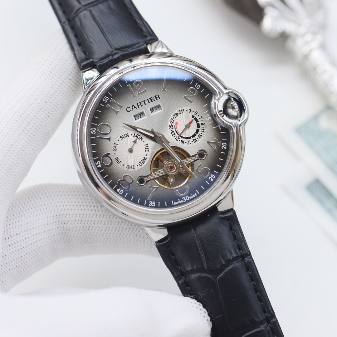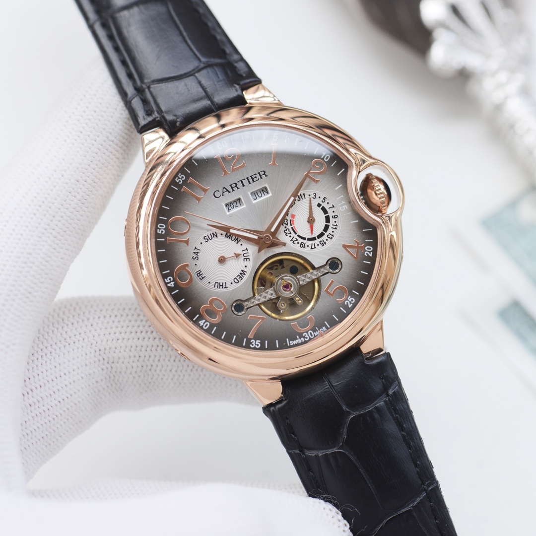 这款手表是AAAAA 1:1 质量 (非常棒). 使用了和原版一模一样的材料. 商标部分也保持了和卡地亚/Cartier一样. 图片拍摄是实物手表拍摄, 您所收到的实物保证和我们图片一模一样.