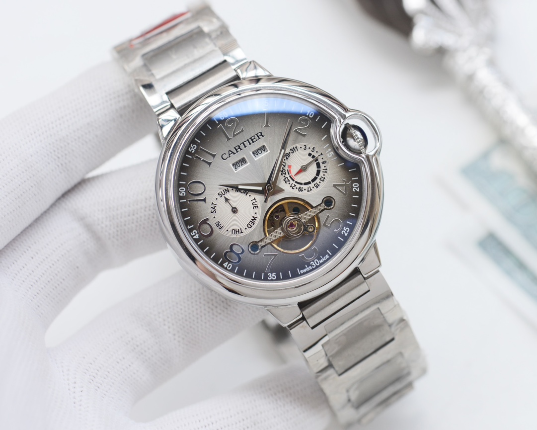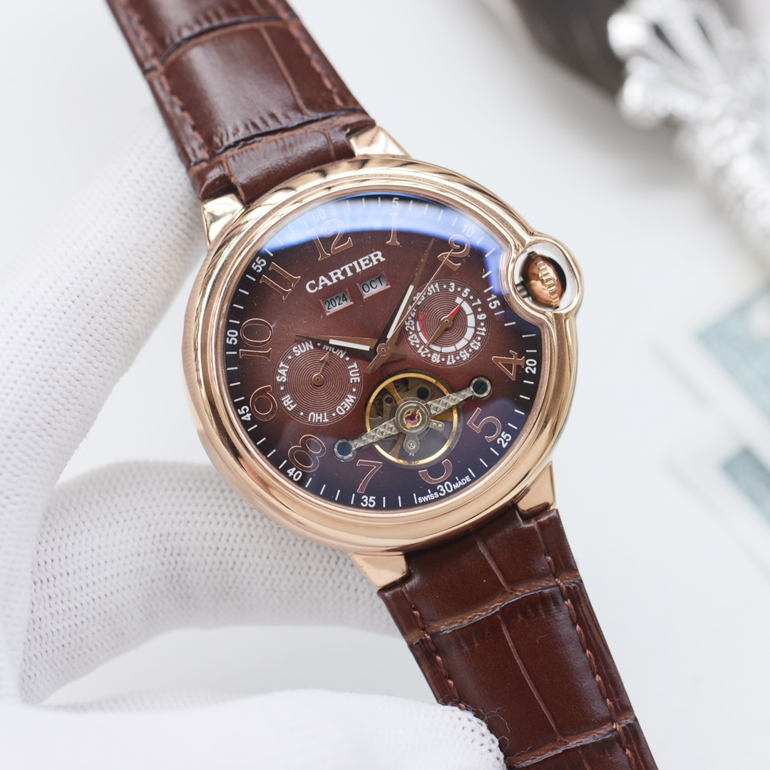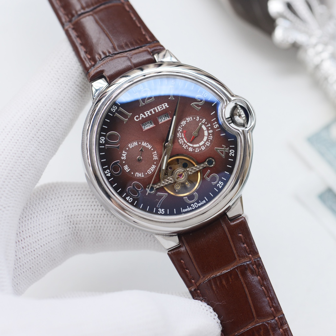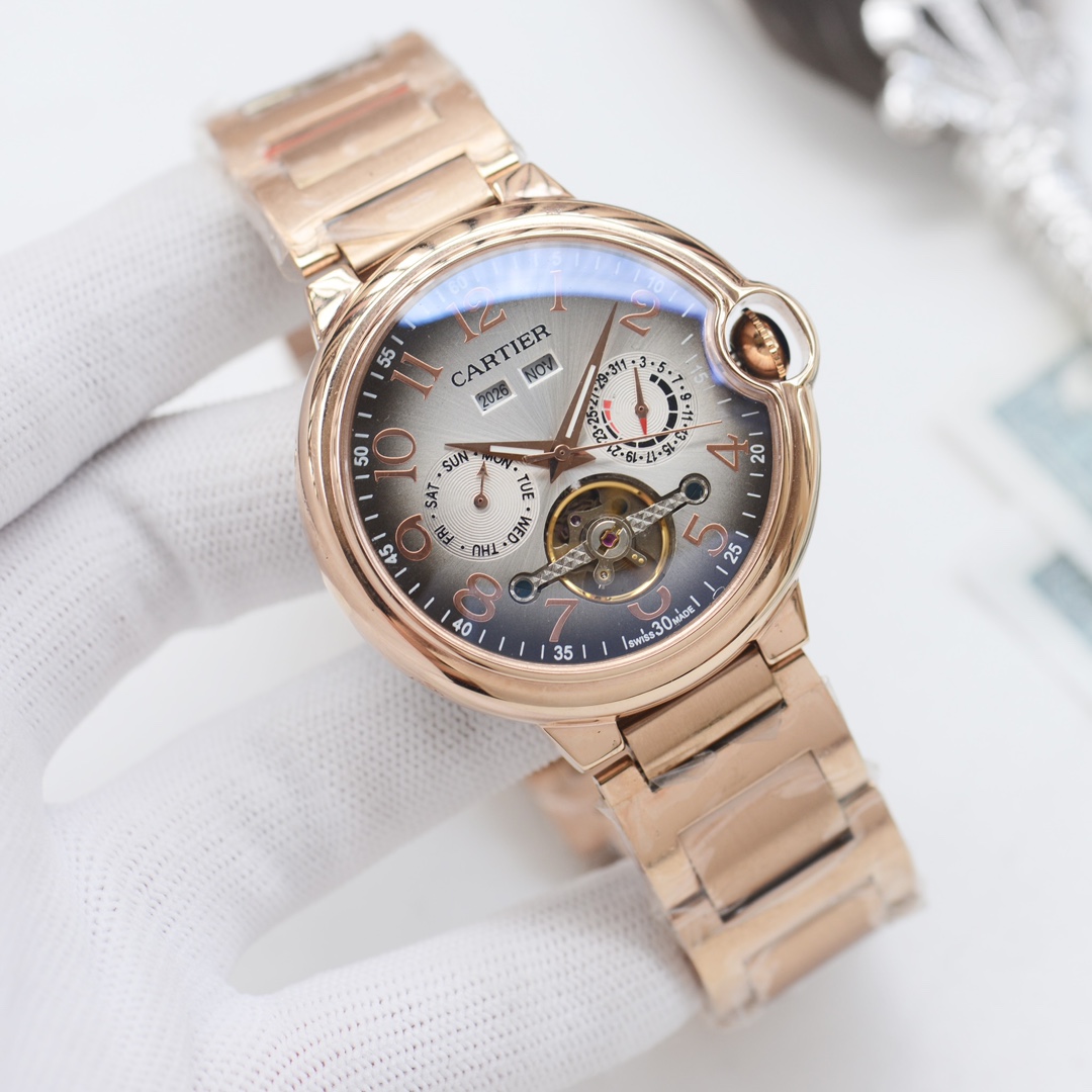 这款手表是AAAAA 1:1 质量 (非常棒). 使用了和原版一模一样的材料. 商标部分也保持了和卡地亚/Cartier一样. 图片拍摄是实物手表拍摄, 您所收到的实物保证和我们图片一模一样.