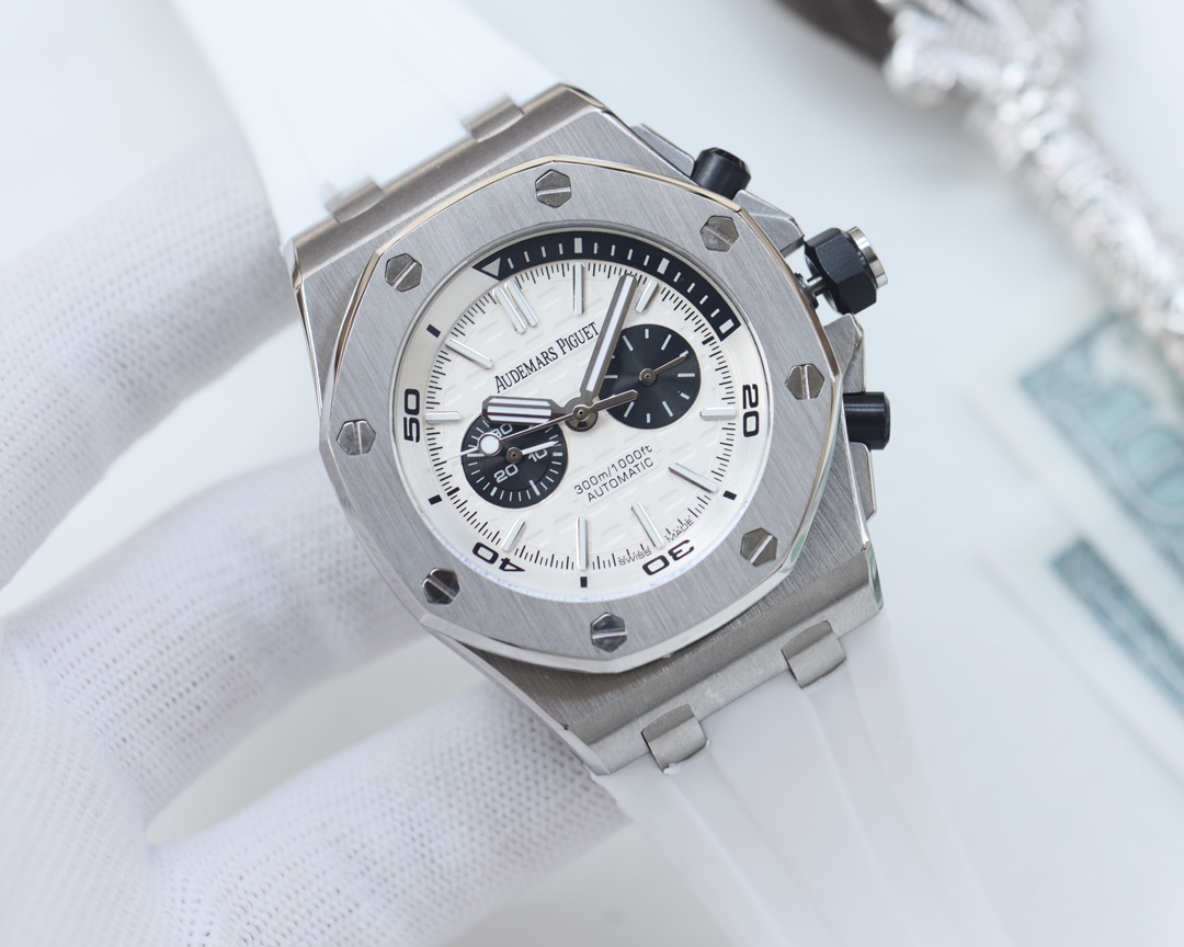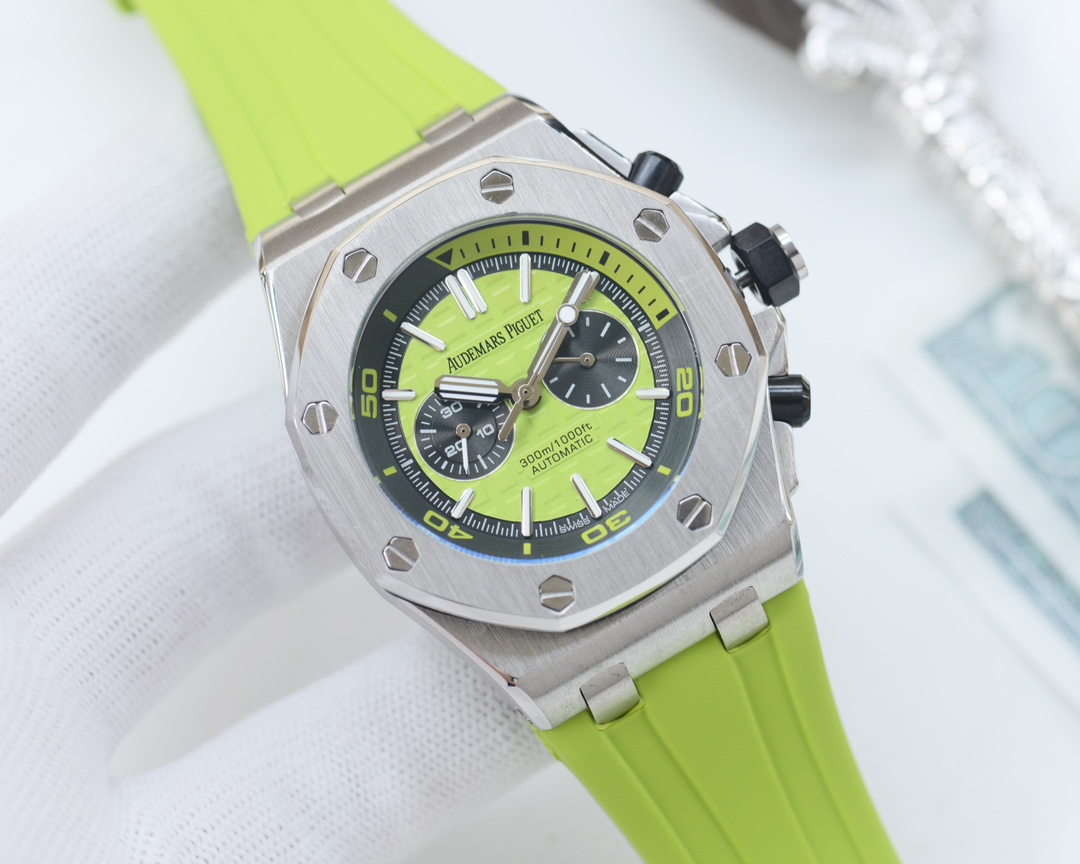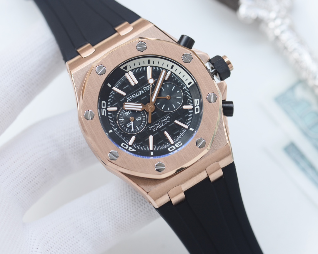 这款手表是AAAAA 1:1 质量 (非常棒). 使用了和原版一模一样的材料. 商标部分也保持了和爱彼/Audemars Piguet一样. 图片拍摄是实物手表拍摄, 您所收到的实物保证和我们图片一模一样.