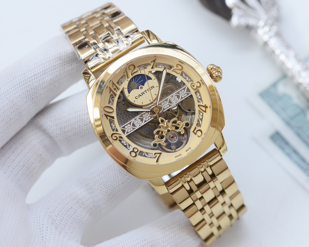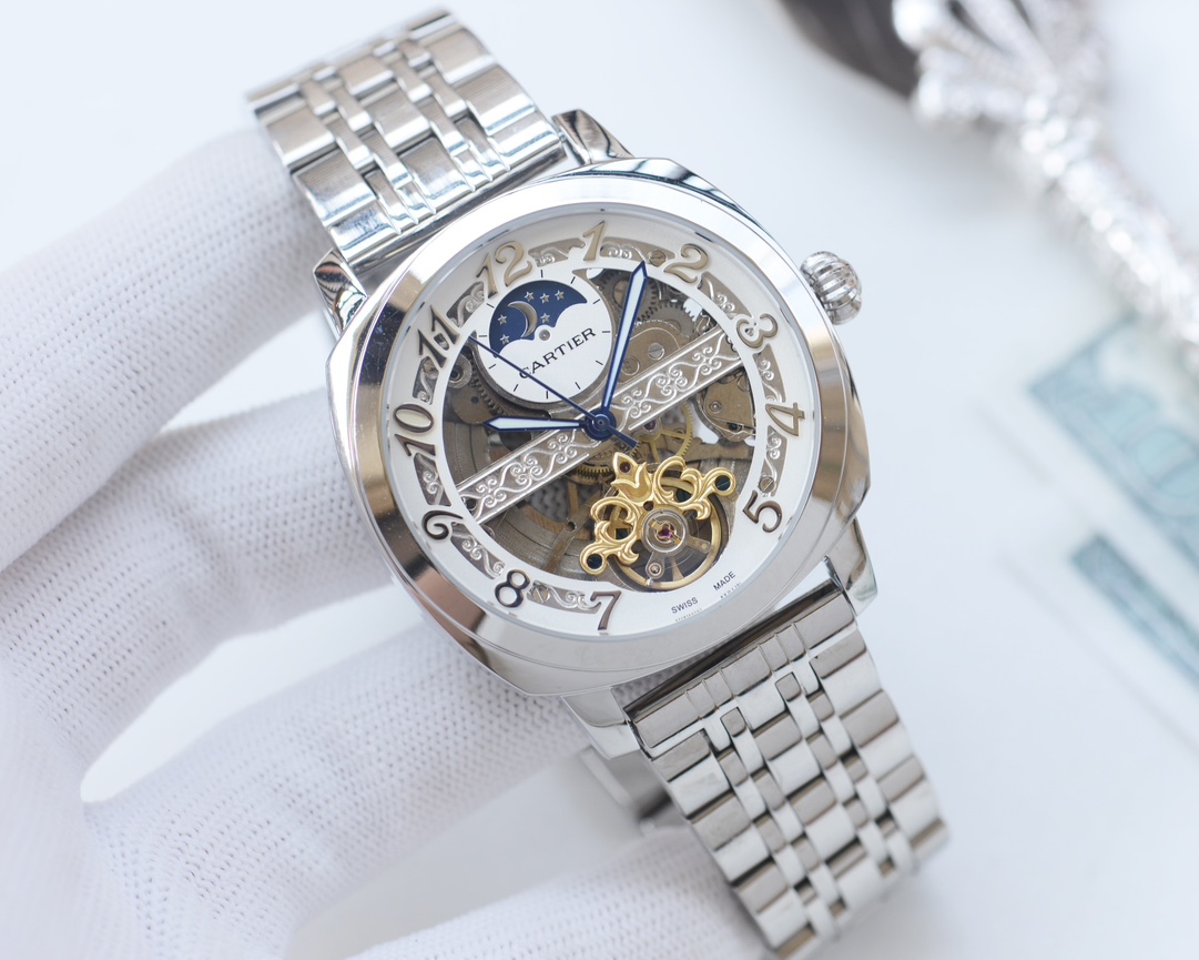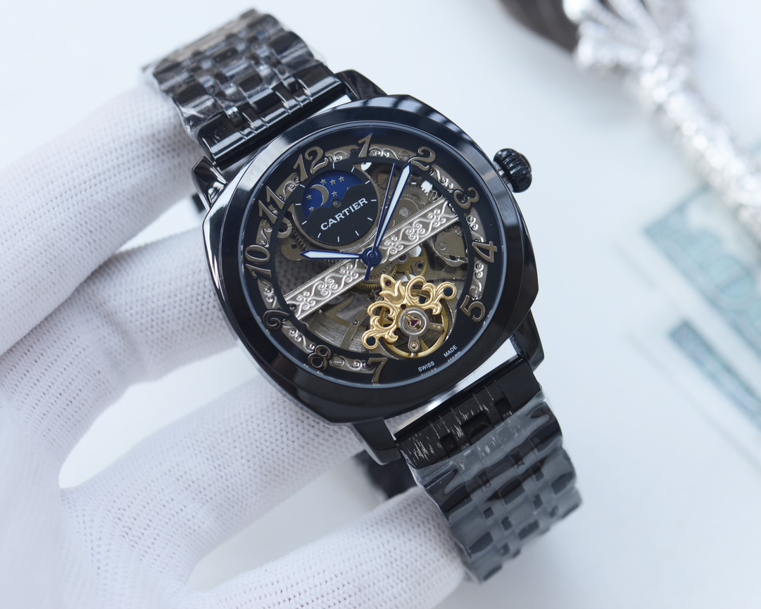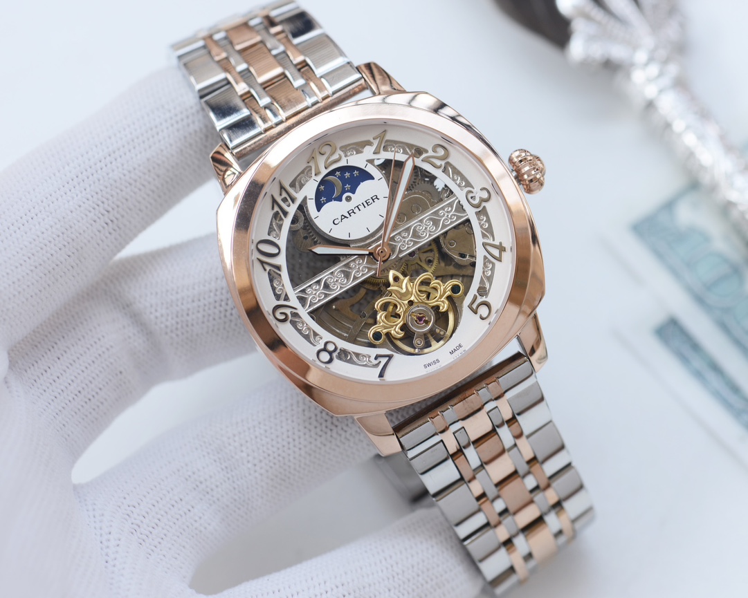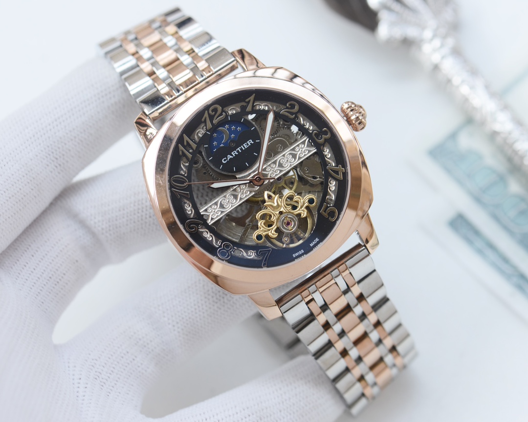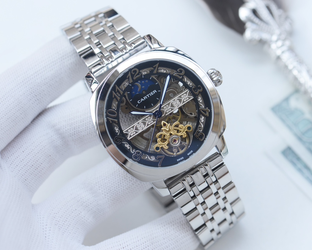 这款手表是AAAAA 1:1 质量 (非常棒). 使用了和原版一模一样的材料. 商标部分也保持了和卡地亚/Cartier一样. 图片拍摄是实物手表拍摄, 您所收到的实物保证和我们图片一模一样.