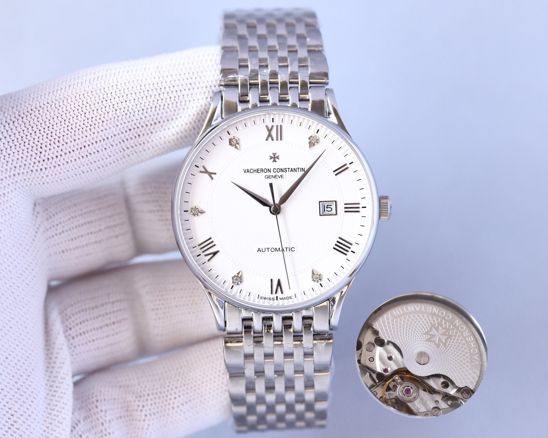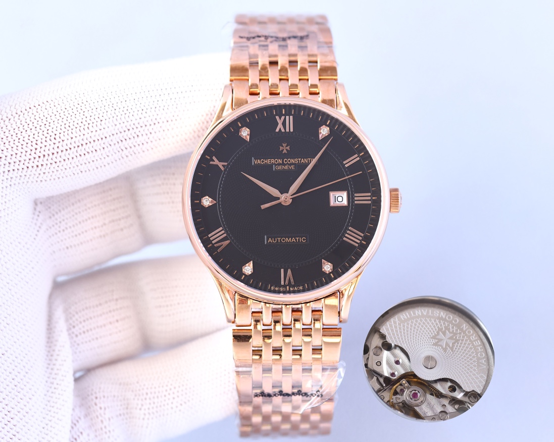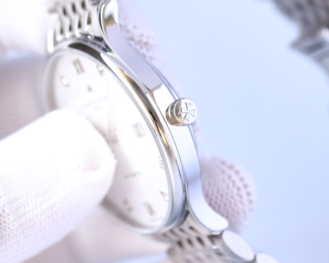 这款手表是AAAAA 1:1 质量 (非常棒). 使用了和原版一模一样的材料. 商标部分也保持了和江诗丹顿/Vacheron Constantin一样. 图片拍摄是实物手表拍摄, 您所收到的实物保证和我们图片一模一样.