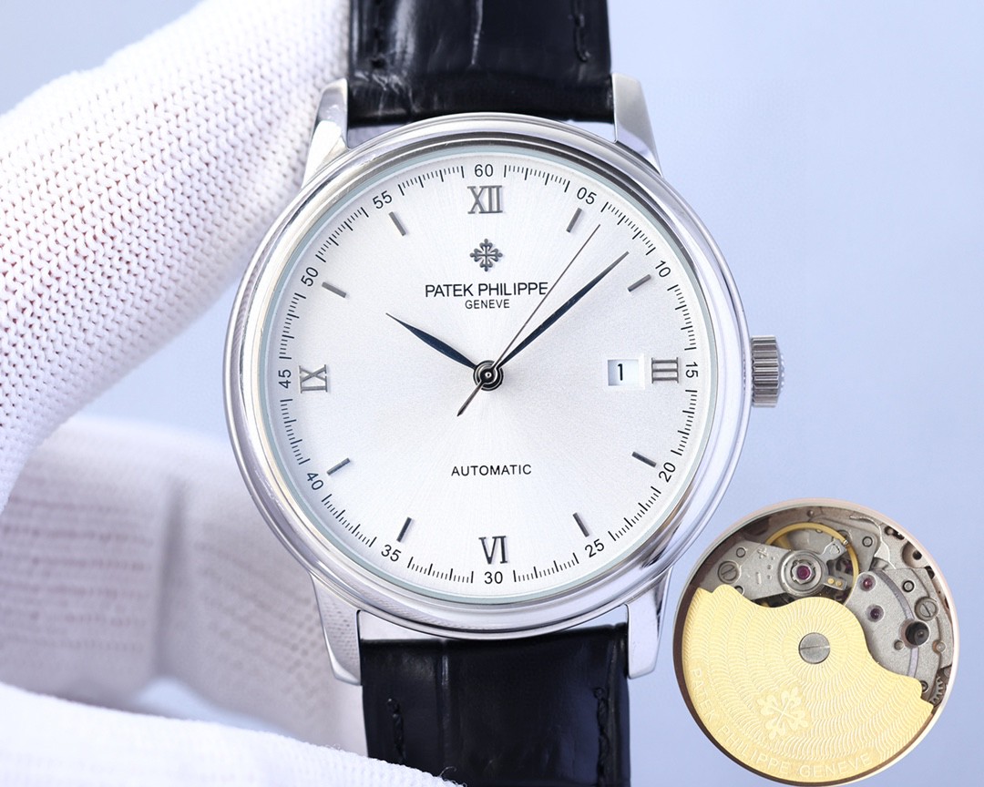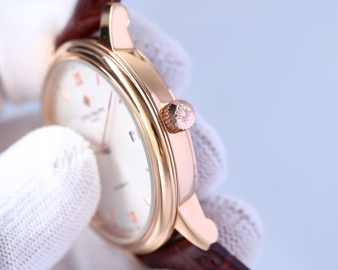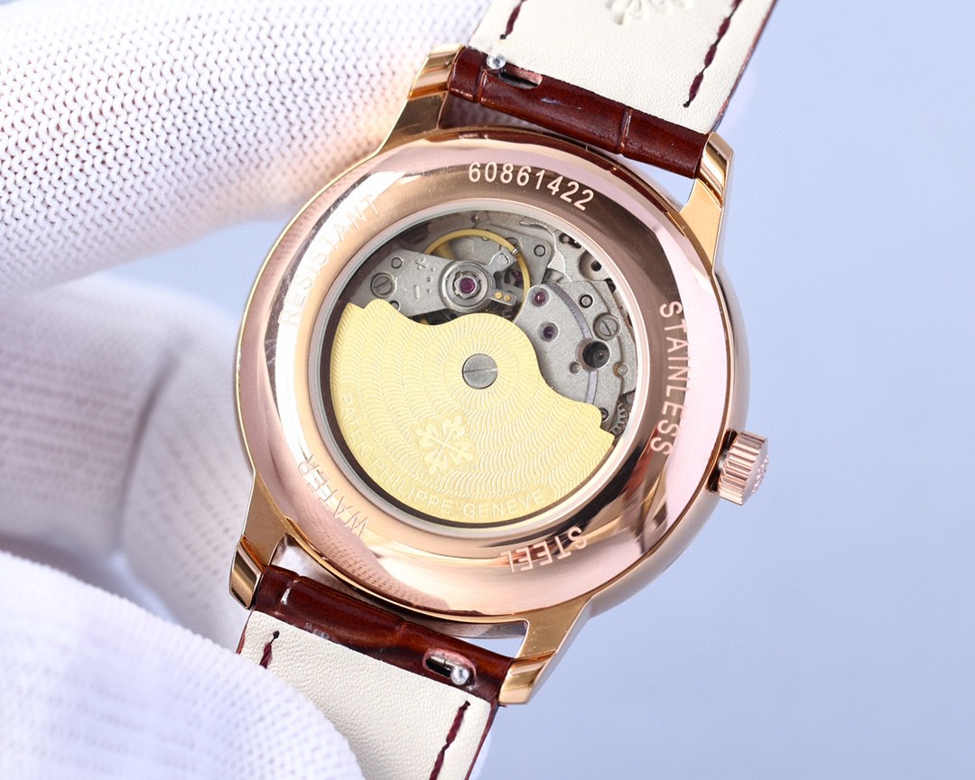 这款手表是AAAAA 1:1 质量 (非常棒). 使用了和原版一模一样的材料. 商标部分也保持了和百达翡丽/Patek Philippe一样. 图片拍摄是实物手表拍摄, 您所收到的实物保证和我们图片一模一样.