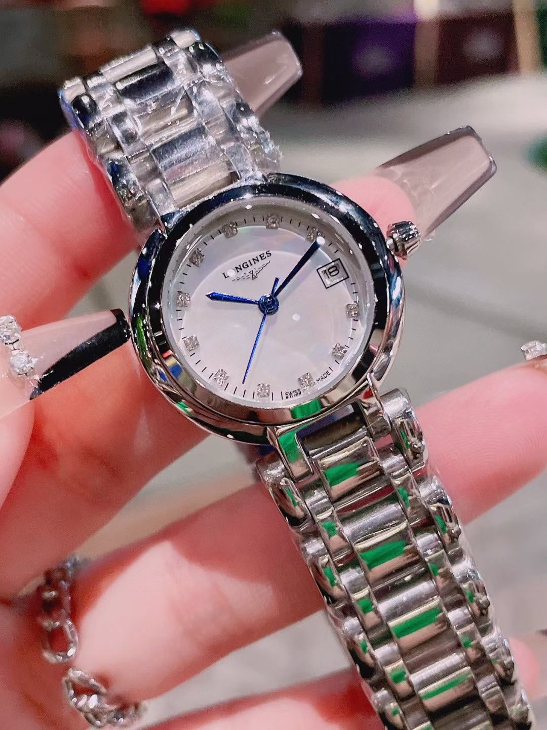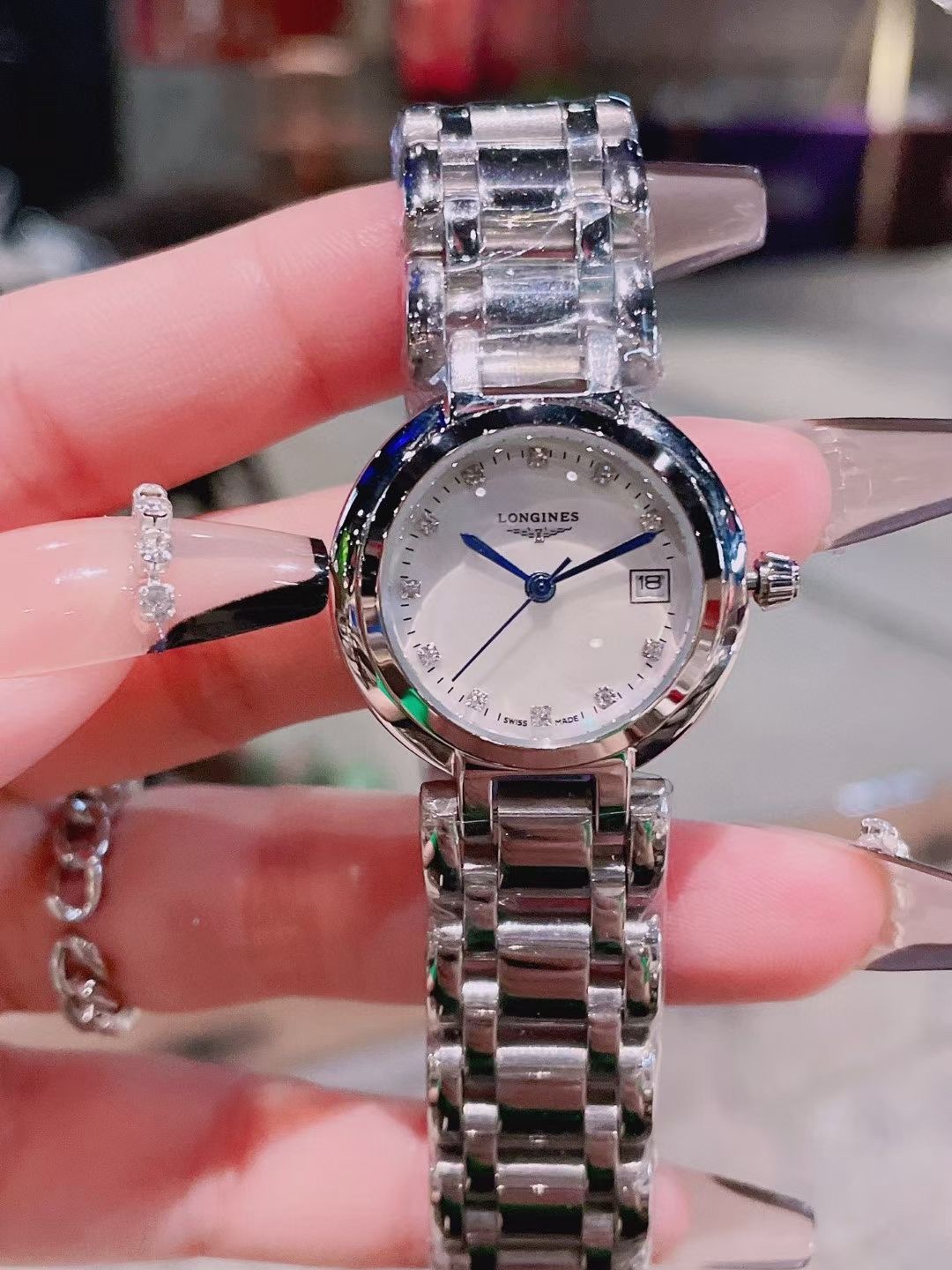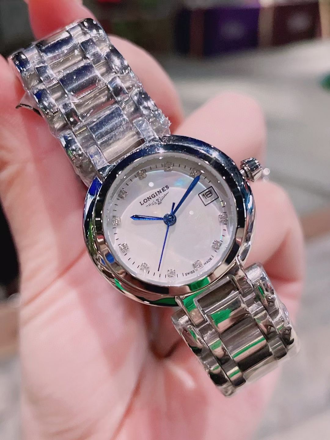 这款手表是AAAAA 1:1 质量 (非常棒). 使用了和原版一模一样的材料. 商标部分也保持了和浪琴/Longines一样. 图片拍摄是实物手表拍摄, 您所收到的实物保证和我们图片一模一样.