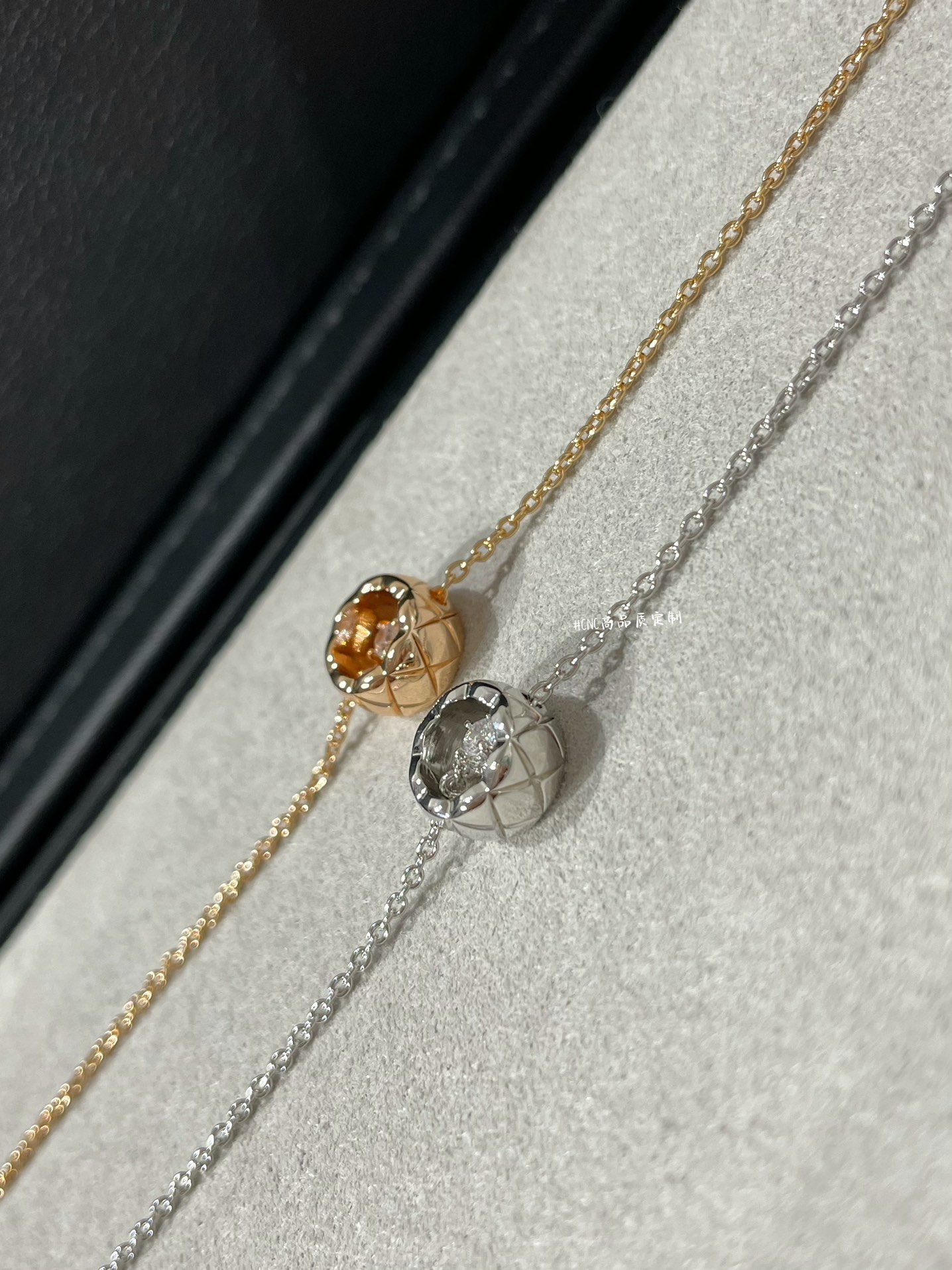 这款首饰是AAAAA 1:1 质量 (非常棒). 使用了和原版一模一样的材料. 商标部分也保持了和香奈儿/Chanel一样. 图片拍摄是实物首饰拍摄, 您所收到的实物保证和我们图片一模一样.