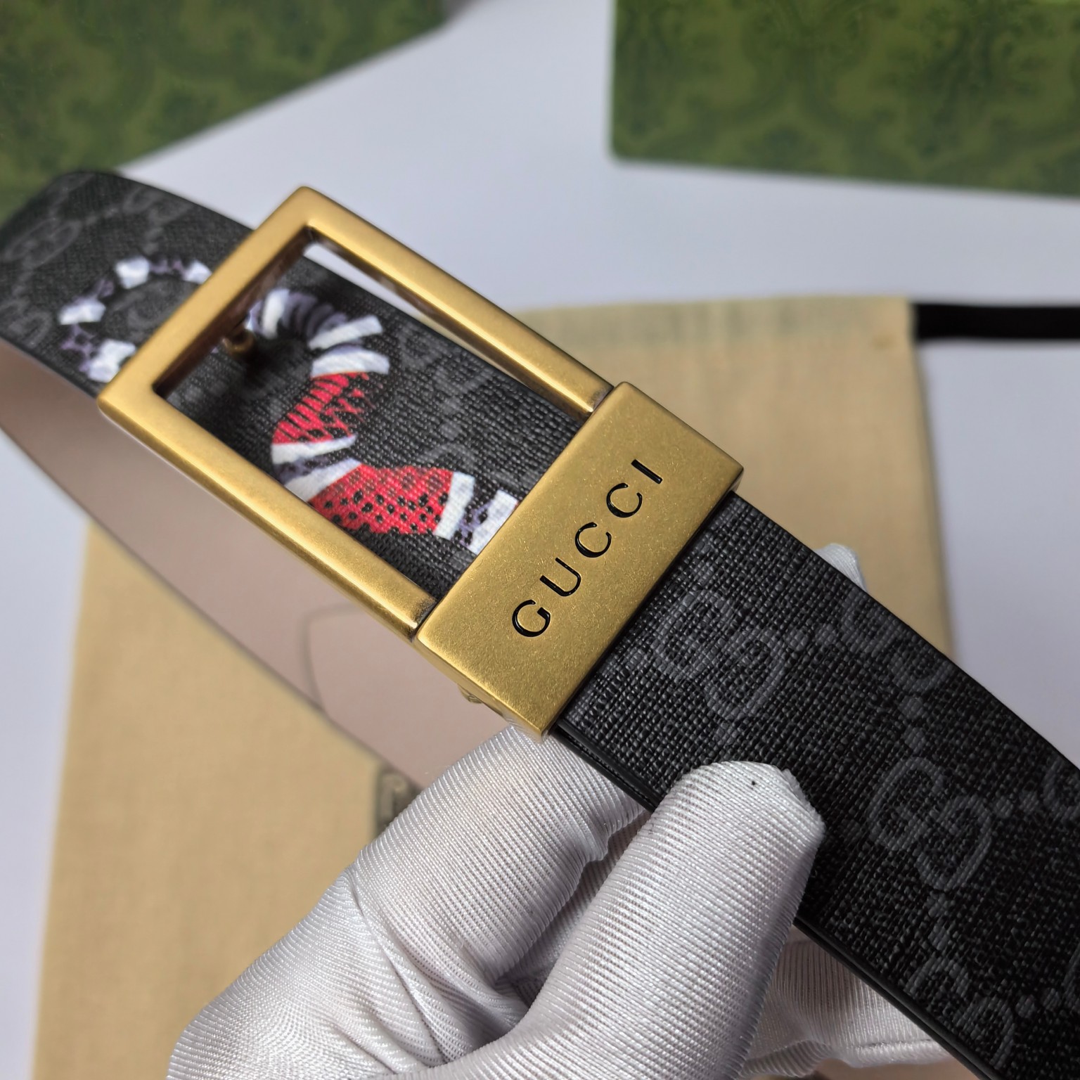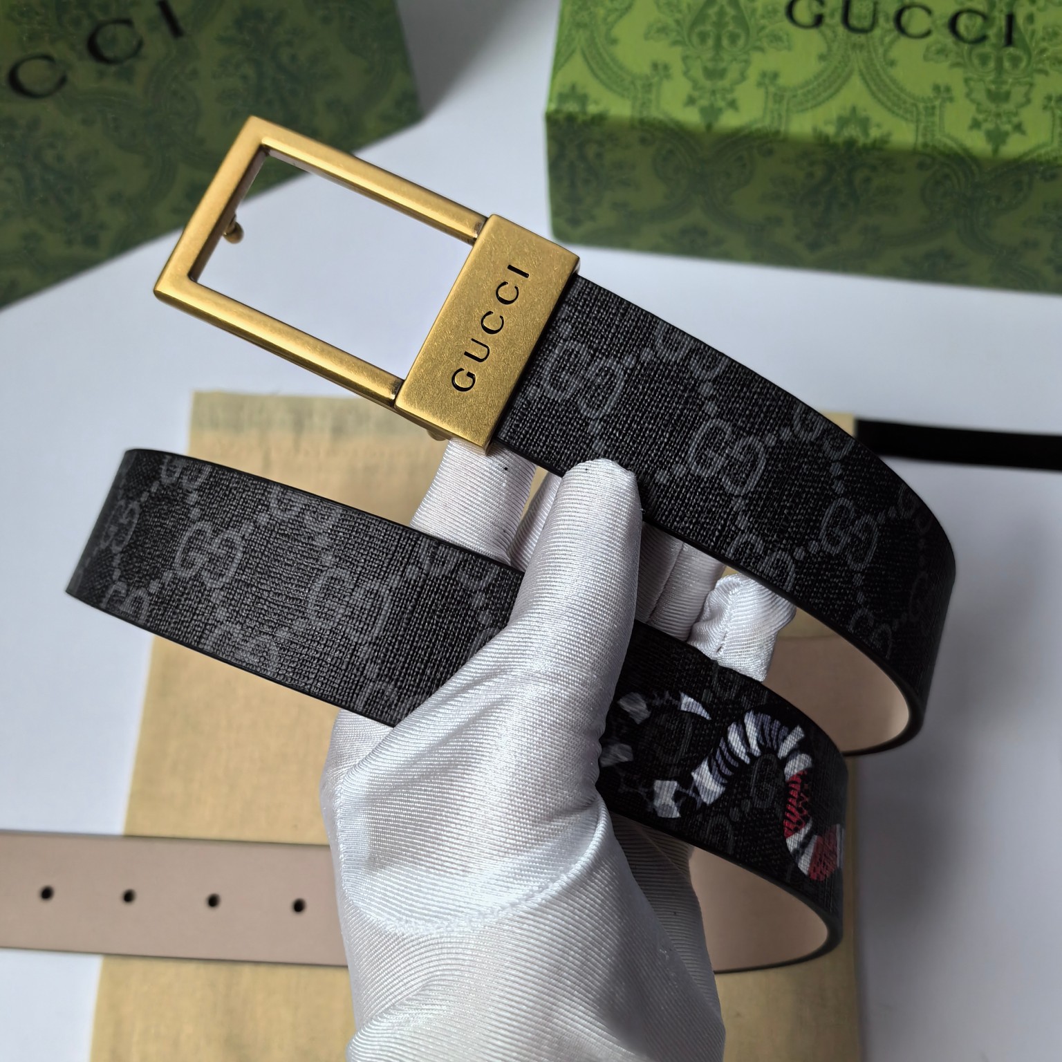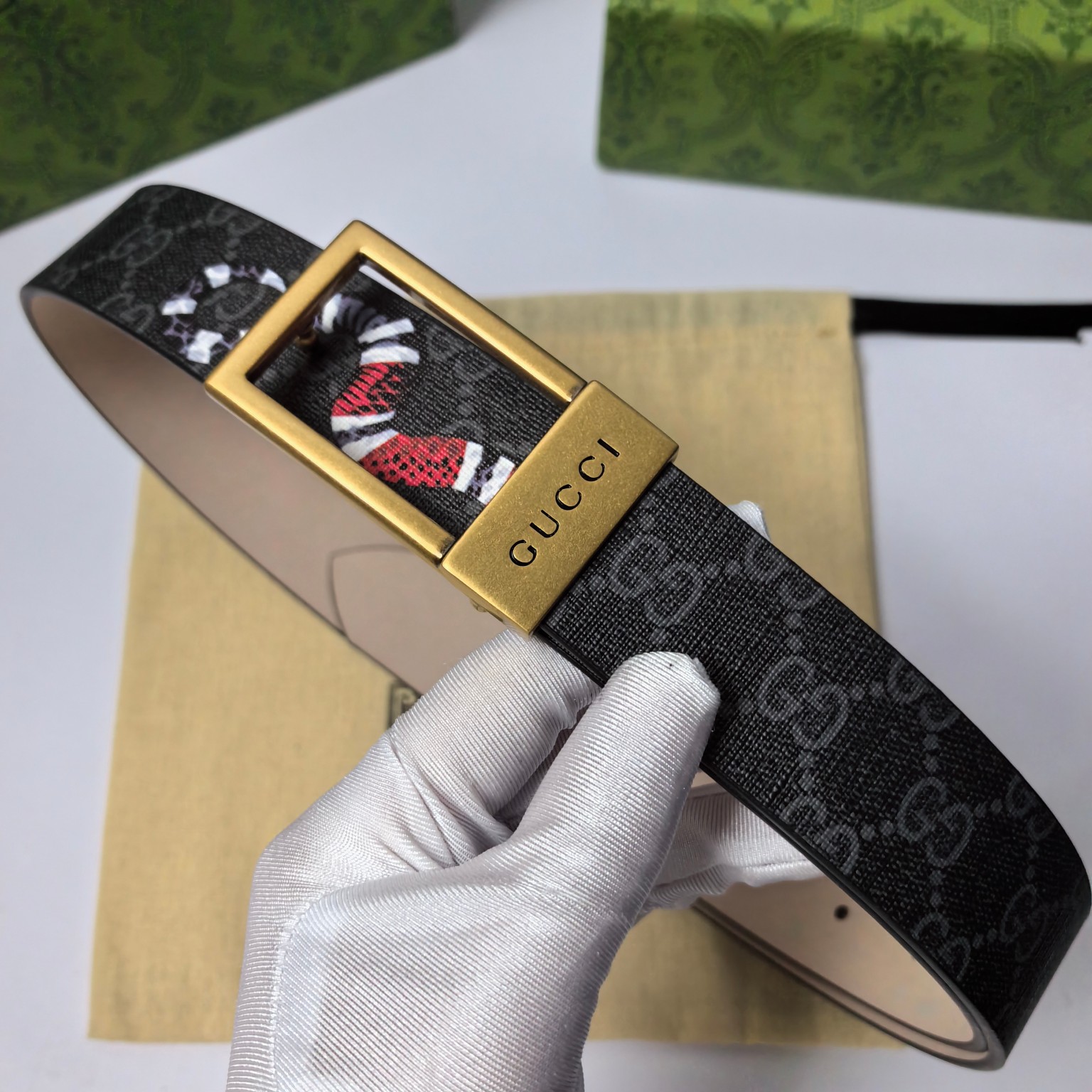这款皮带是AAAAA 1:1 质量 (非常棒). 使用了和原版一模一样的材料. 商标部分也保持了和古奇/Gucci一样. 图片拍摄是实物皮带拍摄, 您所收到的实物保证和我们图片一模一样.