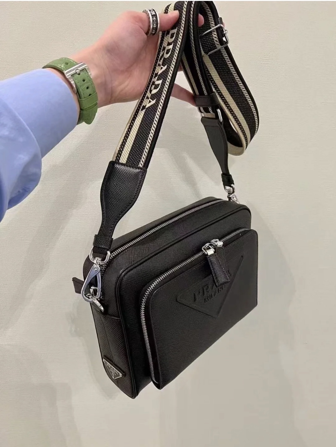 这款包包是AAAAA 1:1 质量 (非常棒). 使用了和原版一模一样的材料. 商标部分也保持了和普拉达/Prada一样. 图片拍摄是实物包包拍摄, 您所收到的实物保证和我们图片一模一样.