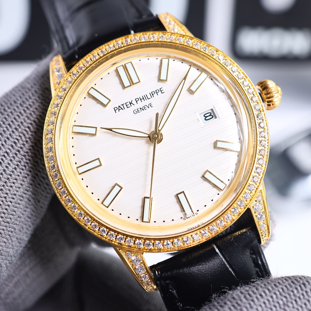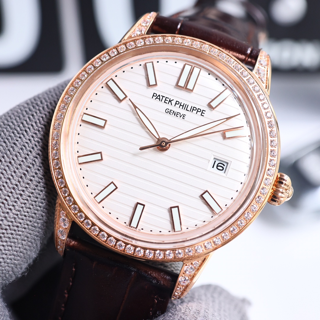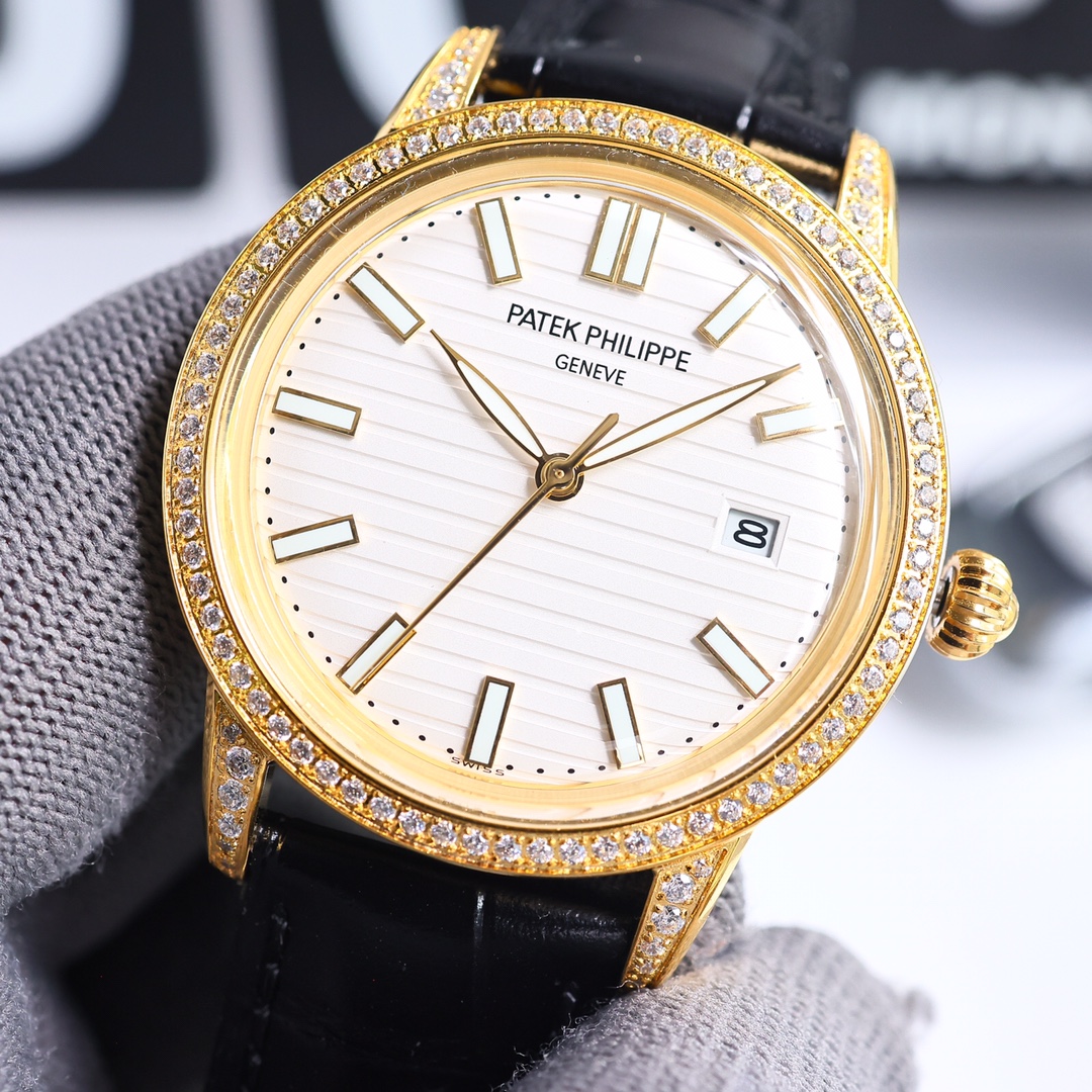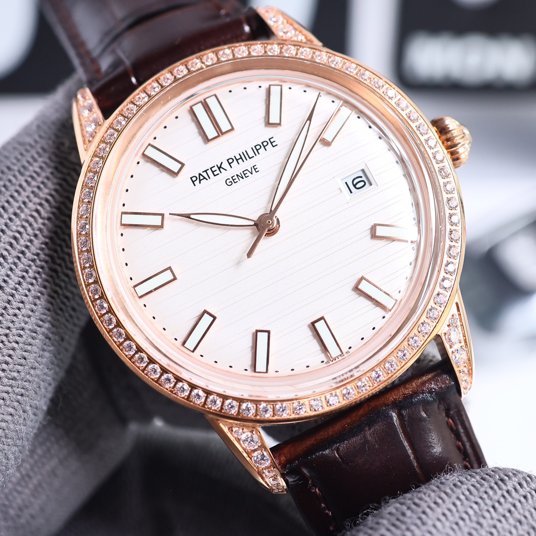 这款手表是AAAAA 1:1 质量 (非常棒). 使用了和原版一模一样的材料. 商标部分也保持了和百达翡丽/Patek Philippe一样. 图片拍摄是实物手表拍摄, 您所收到的实物保证和我们图片一模一样.