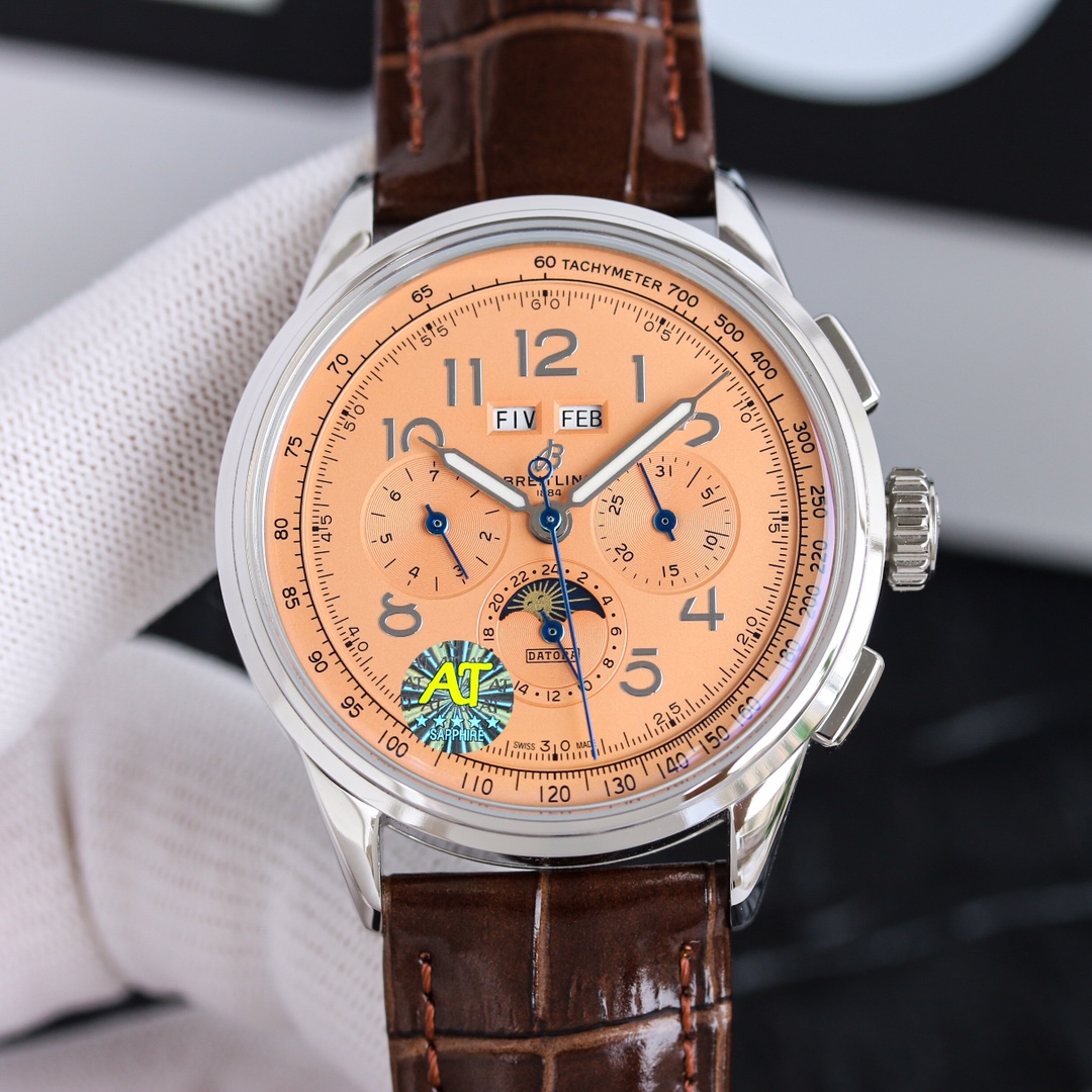 这款手表是AAAAA 1:1 质量 (非常棒). 使用了和原版一模一样的材料. 商标部分也保持了和Breitling一样. 图片拍摄是实物手表拍摄, 您所收到的实物保证和我们图片一模一样.