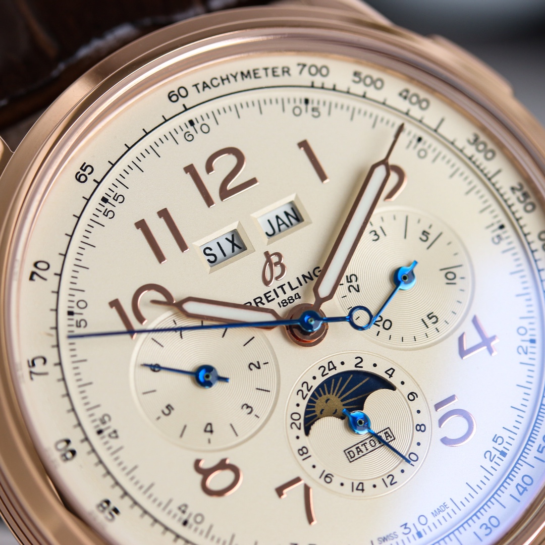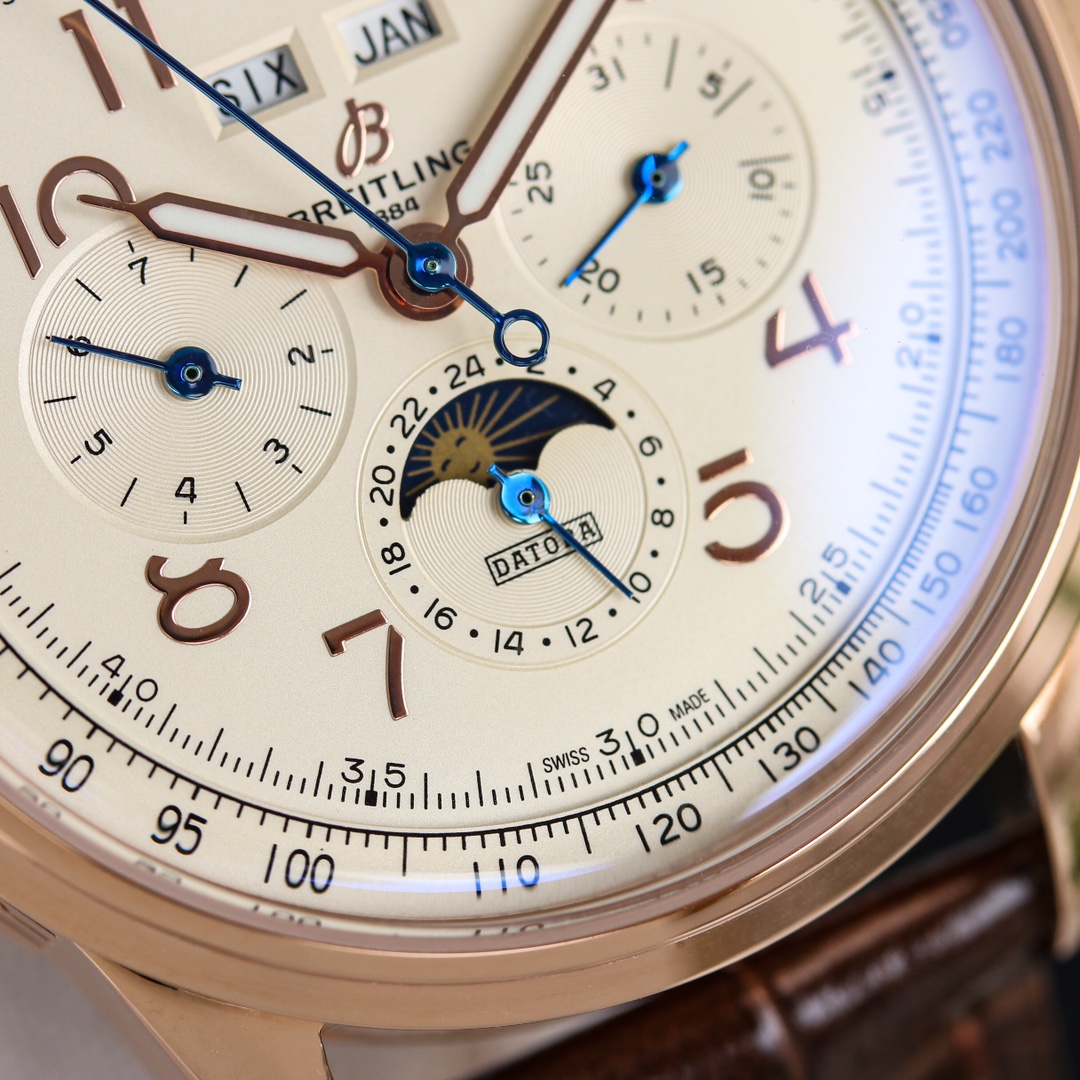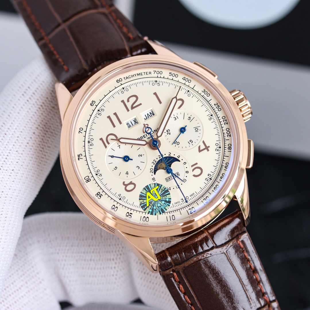 这款手表是AAAAA 1:1 质量 (非常棒). 使用了和原版一模一样的材料. 商标部分也保持了和Breitling一样. 图片拍摄是实物手表拍摄, 您所收到的实物保证和我们图片一模一样.