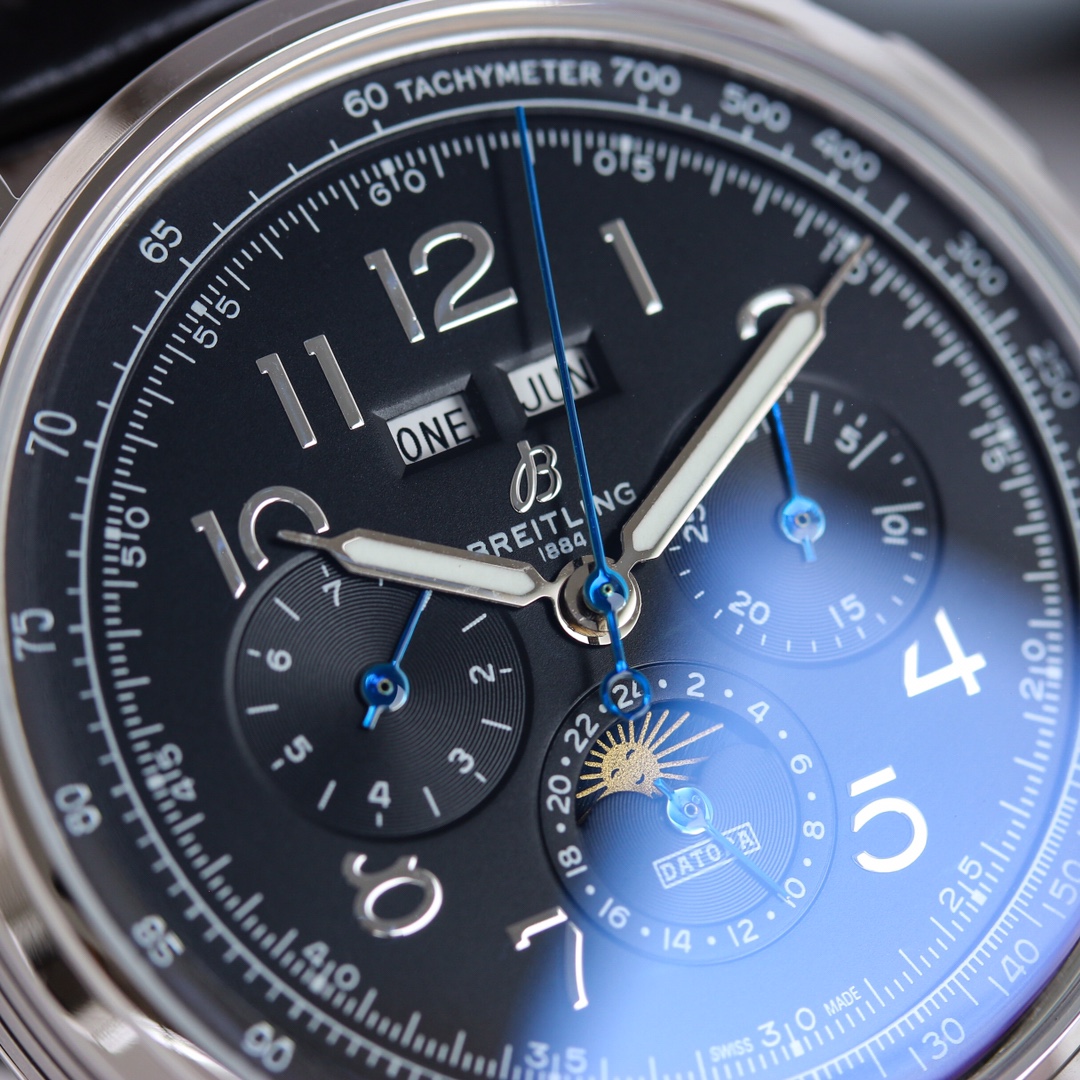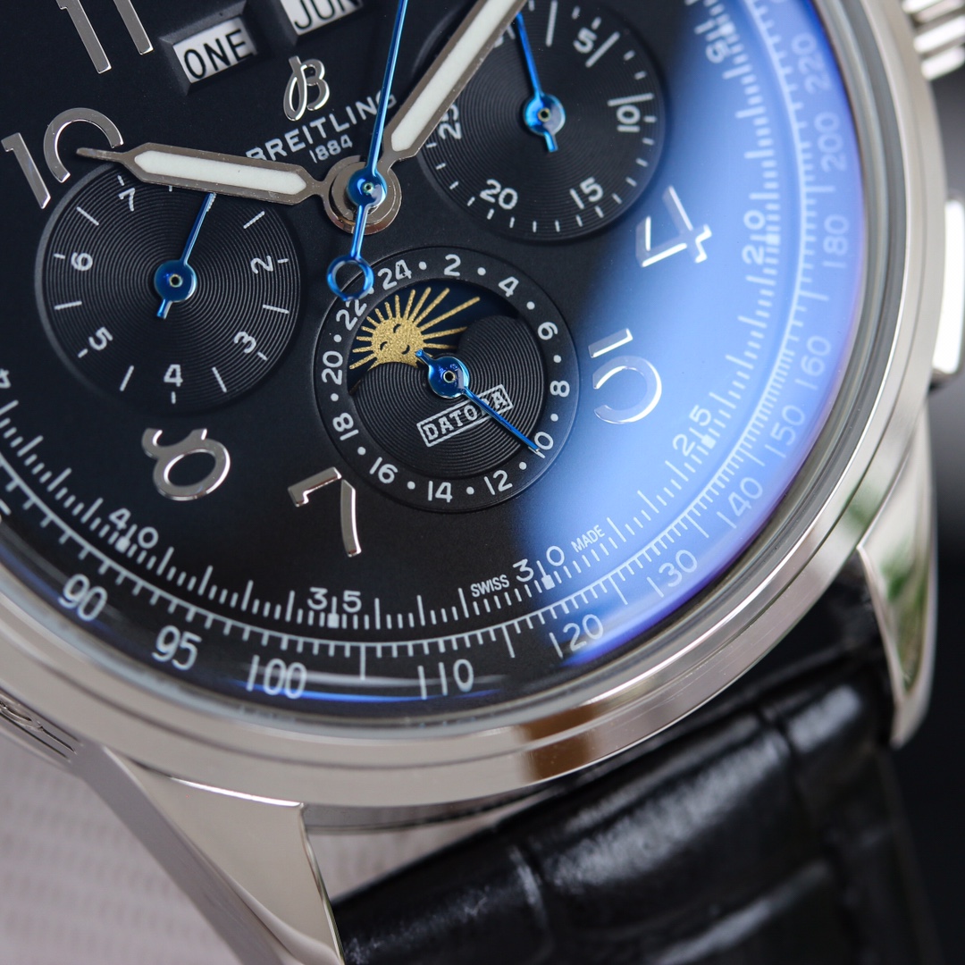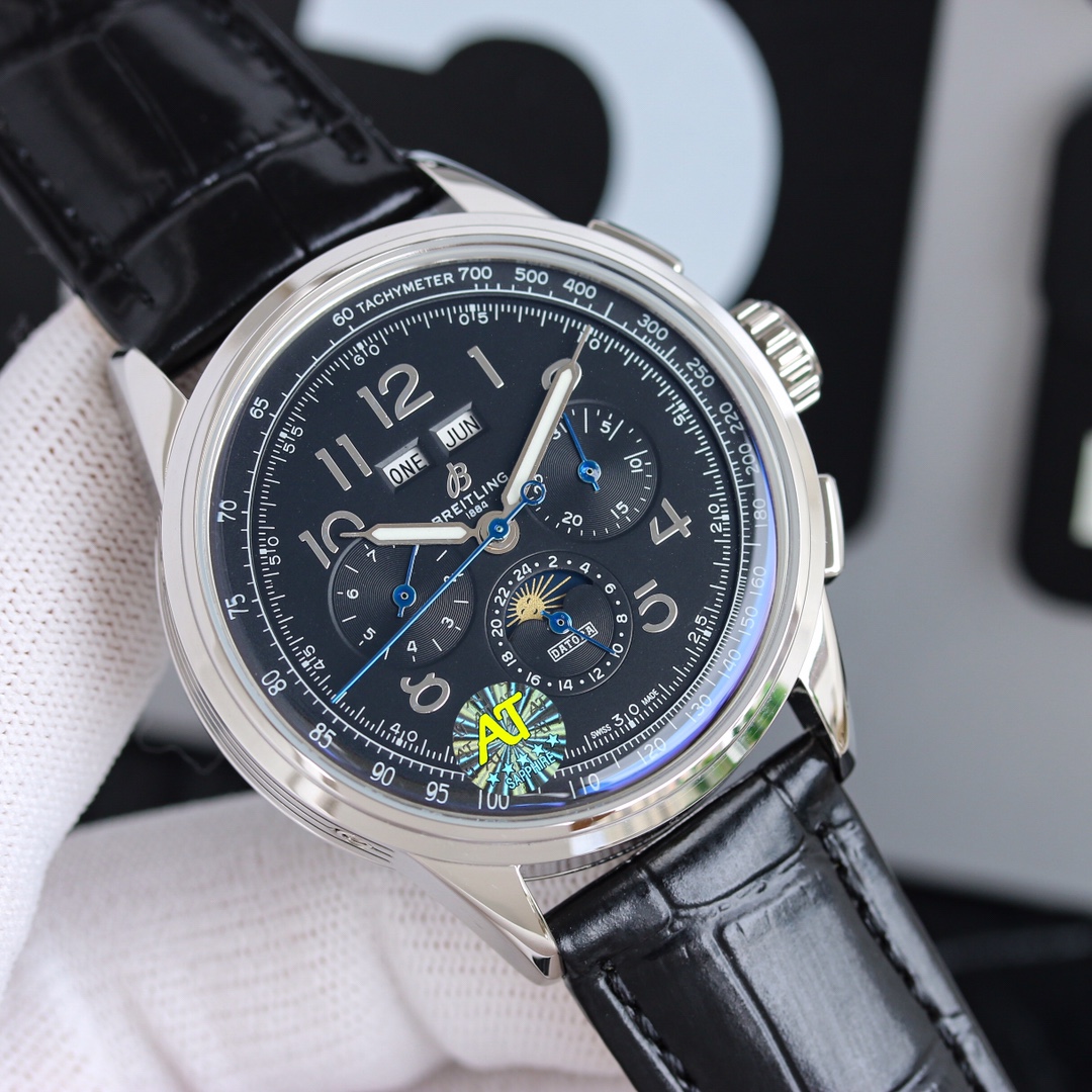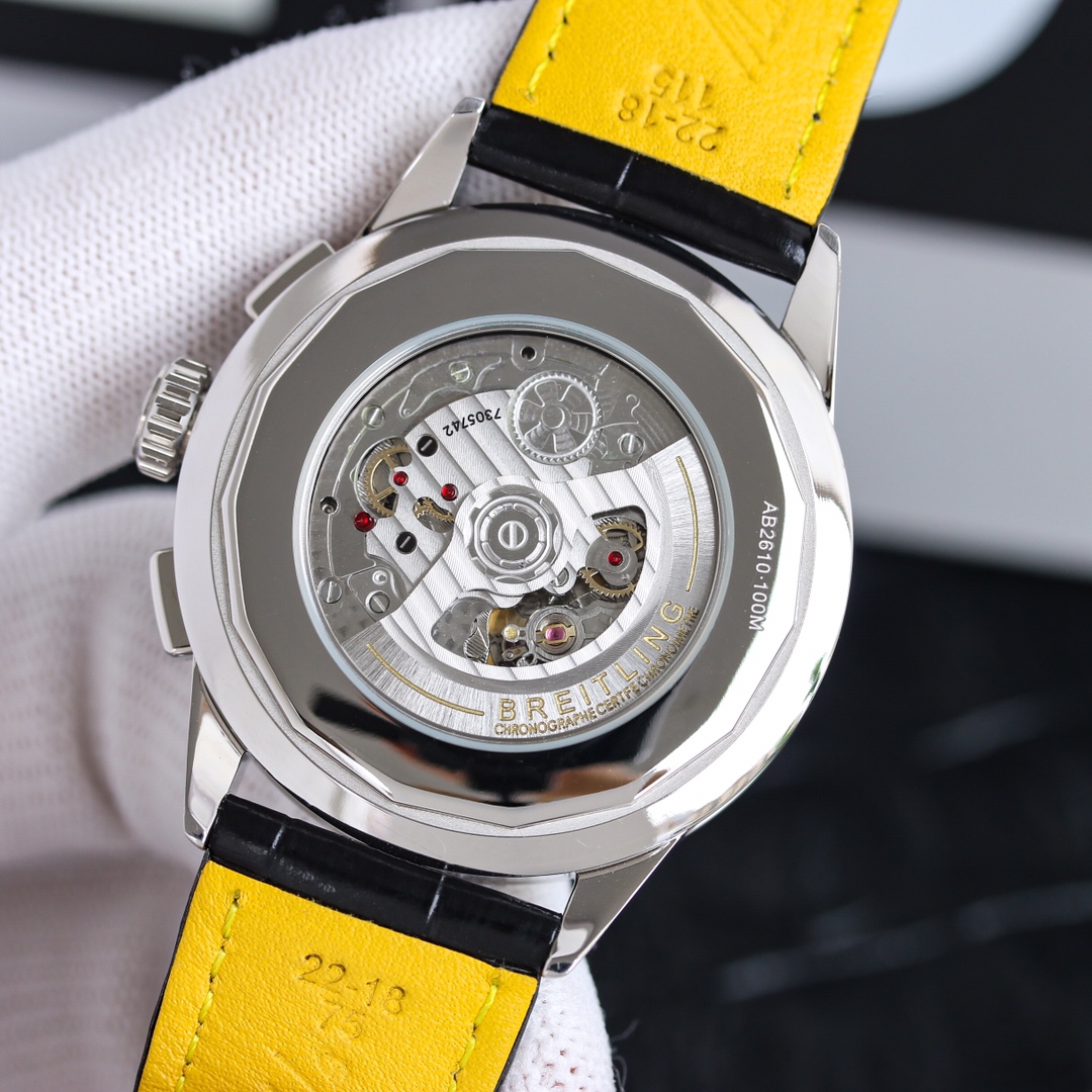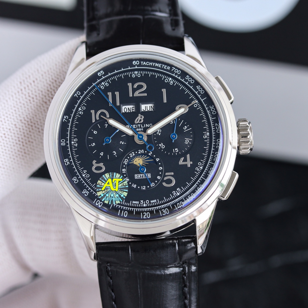 这款手表是AAAAA 1:1 质量 (非常棒). 使用了和原版一模一样的材料. 商标部分也保持了和Breitling一样. 图片拍摄是实物手表拍摄, 您所收到的实物保证和我们图片一模一样.
