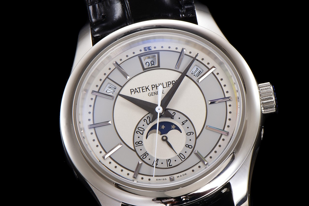 这款手表是AAAAA 1:1 质量 (非常棒). 使用了和原版一模一样的材料. 商标部分也保持了和百达翡丽/Patek Philippe一样. 图片拍摄是实物手表拍摄, 您所收到的实物保证和我们图片一模一样.