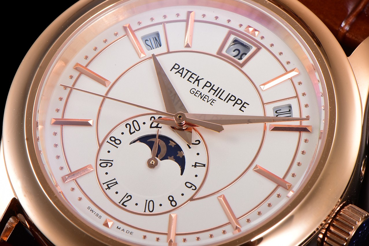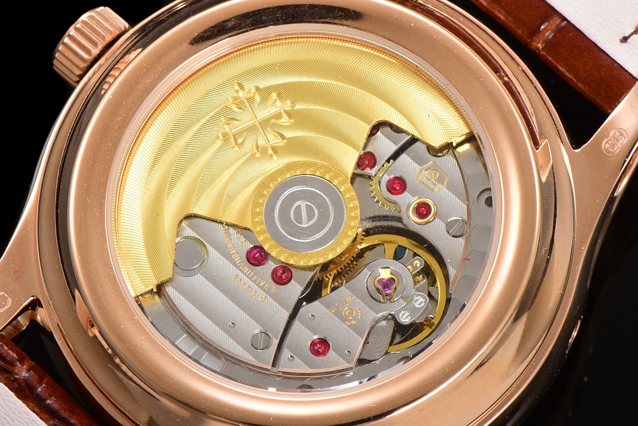 这款手表是AAAAA 1:1 质量 (非常棒). 使用了和原版一模一样的材料. 商标部分也保持了和百达翡丽/Patek Philippe一样. 图片拍摄是实物手表拍摄, 您所收到的实物保证和我们图片一模一样.