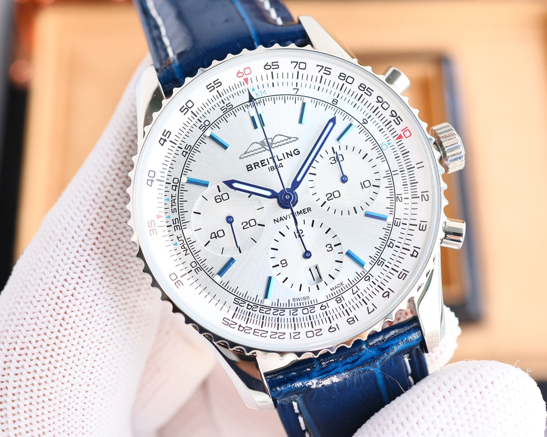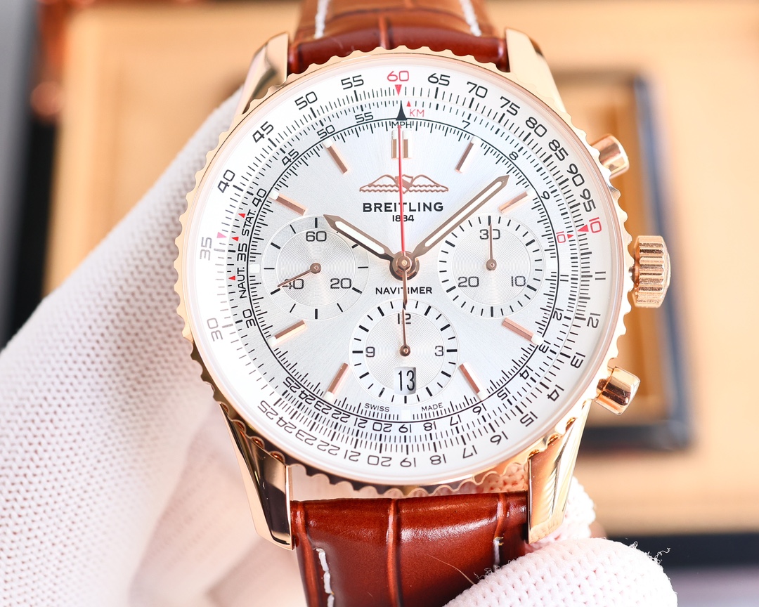 这款手表是AAAAA 1:1 质量 (非常棒). 使用了和原版一模一样的材料. 商标部分也保持了和Breitling一样. 图片拍摄是实物手表拍摄, 您所收到的实物保证和我们图片一模一样.