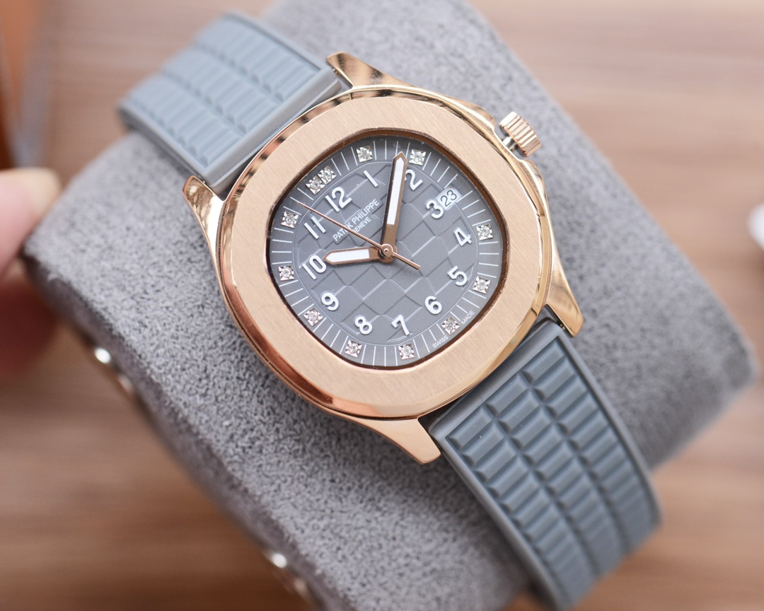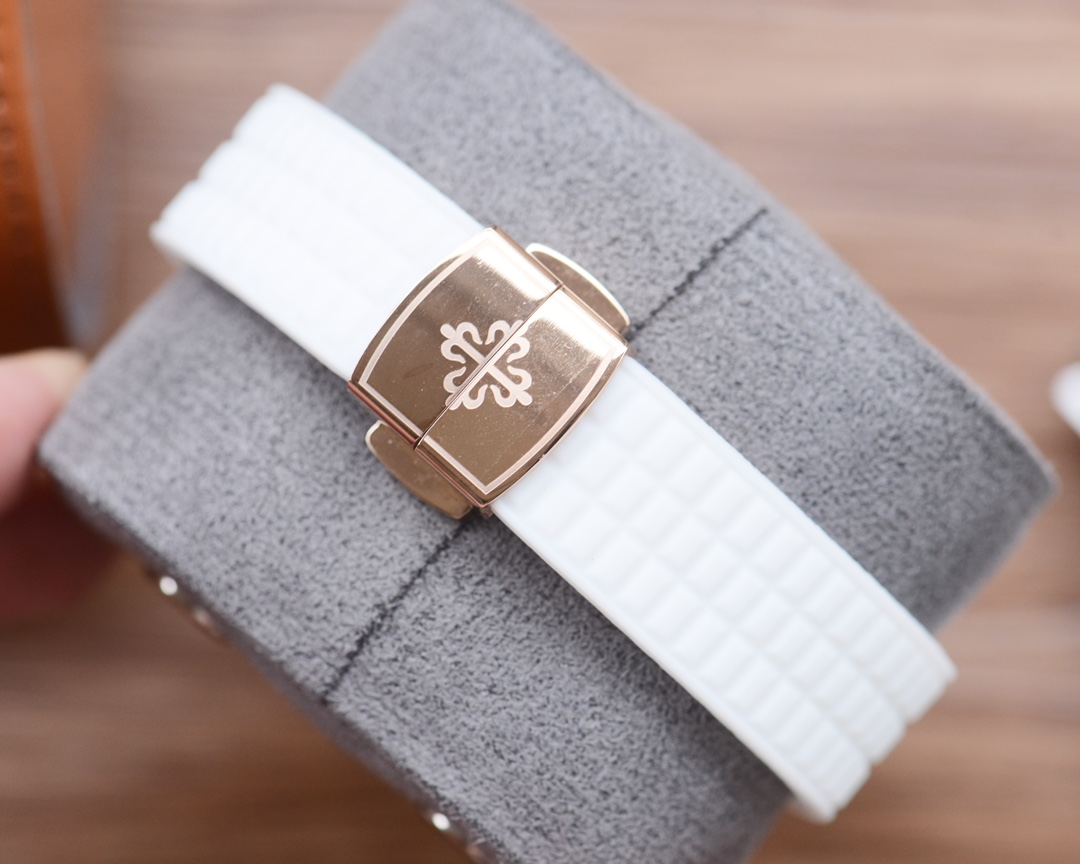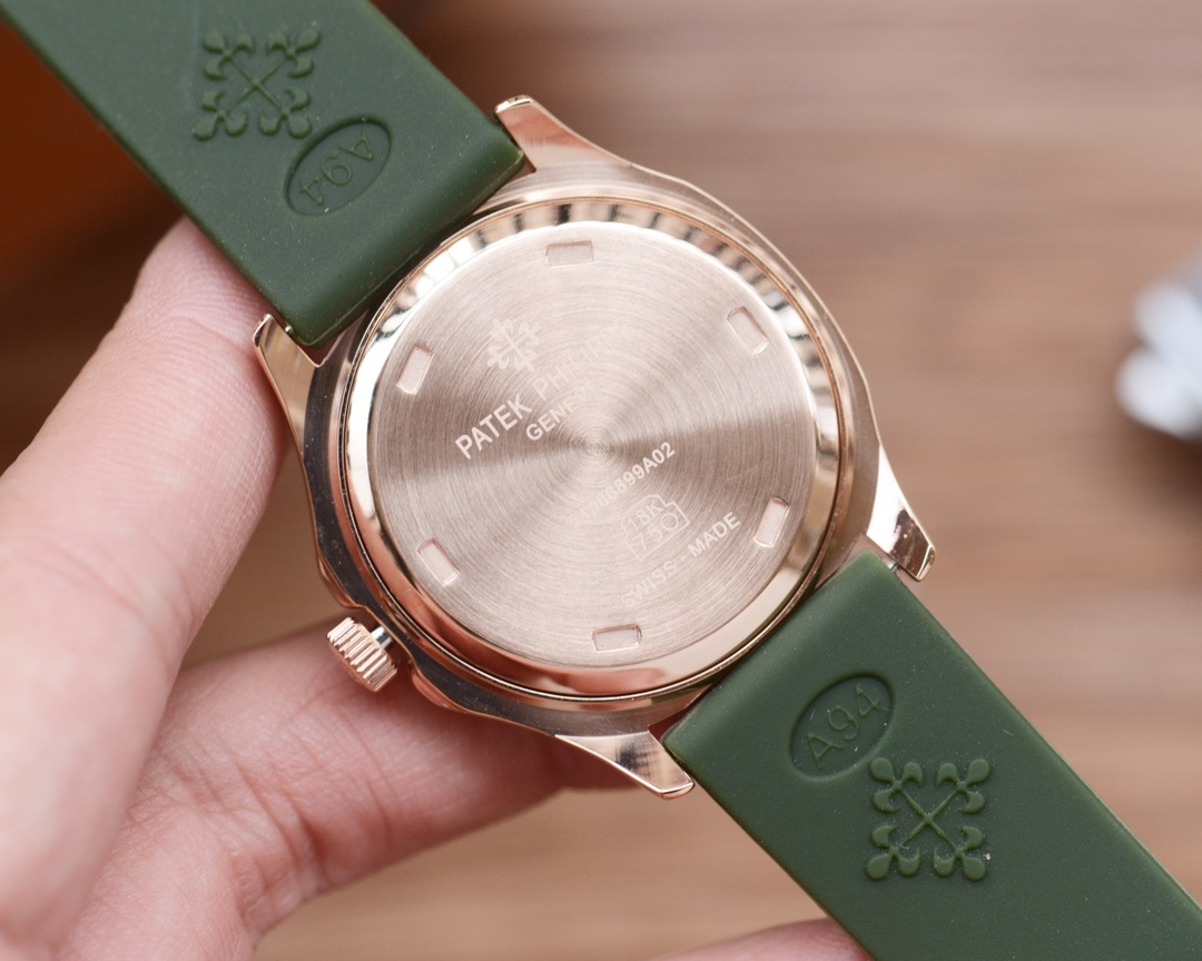 这款手表是AAAAA 1:1 质量 (非常棒). 使用了和原版一模一样的材料. 商标部分也保持了和百达翡丽/Patek Philippe一样. 图片拍摄是实物手表拍摄, 您所收到的实物保证和我们图片一模一样.