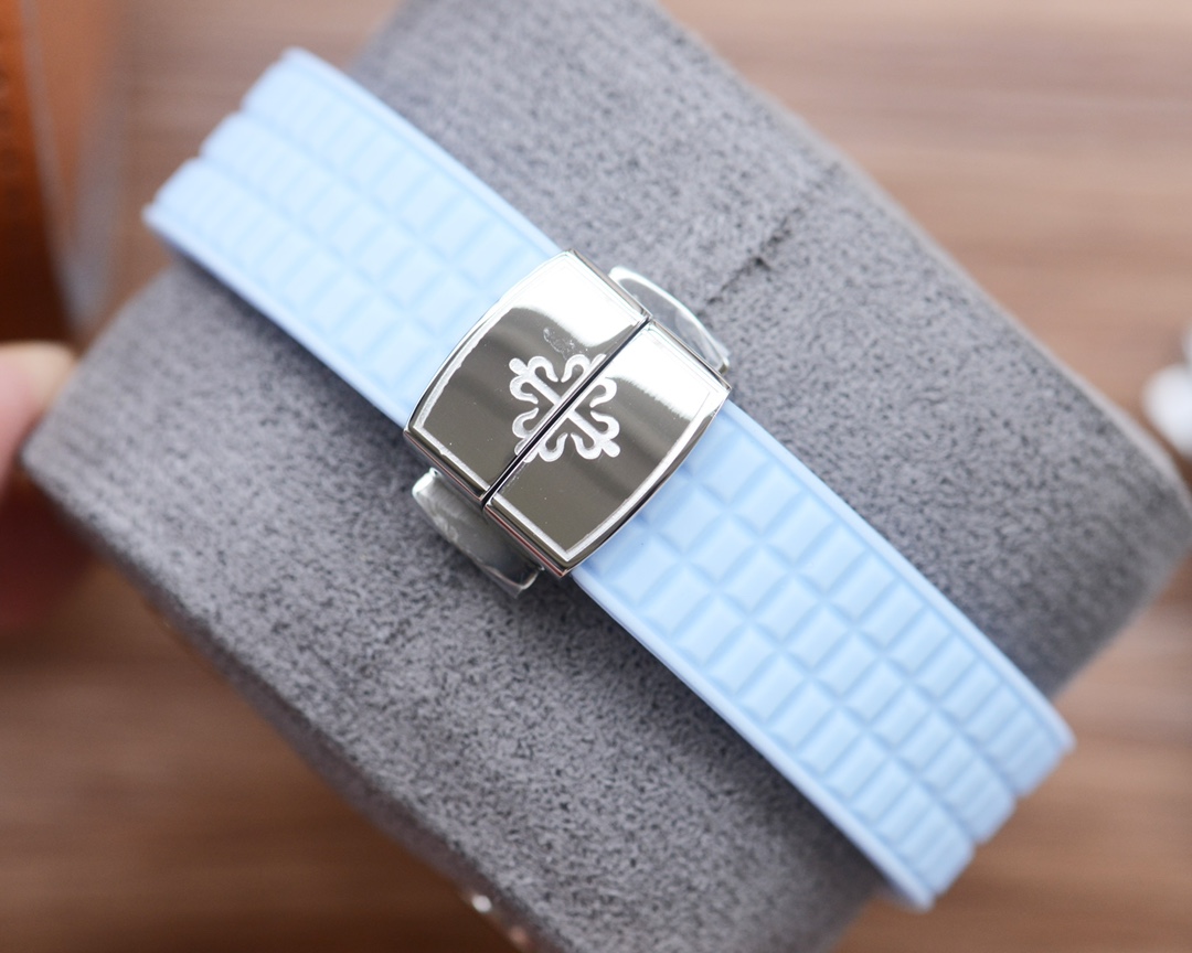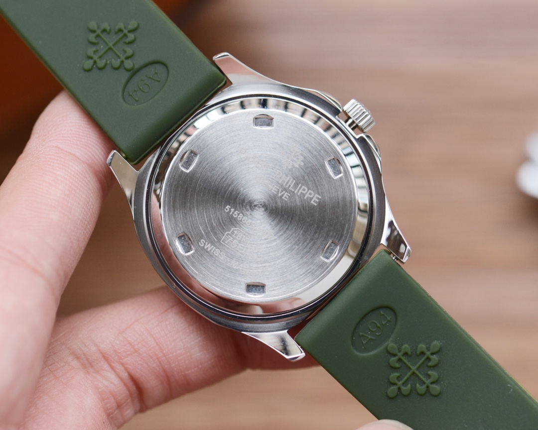 这款手表是AAAAA 1:1 质量 (非常棒). 使用了和原版一模一样的材料. 商标部分也保持了和百达翡丽/Patek Philippe一样. 图片拍摄是实物手表拍摄, 您所收到的实物保证和我们图片一模一样.