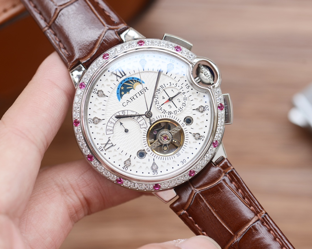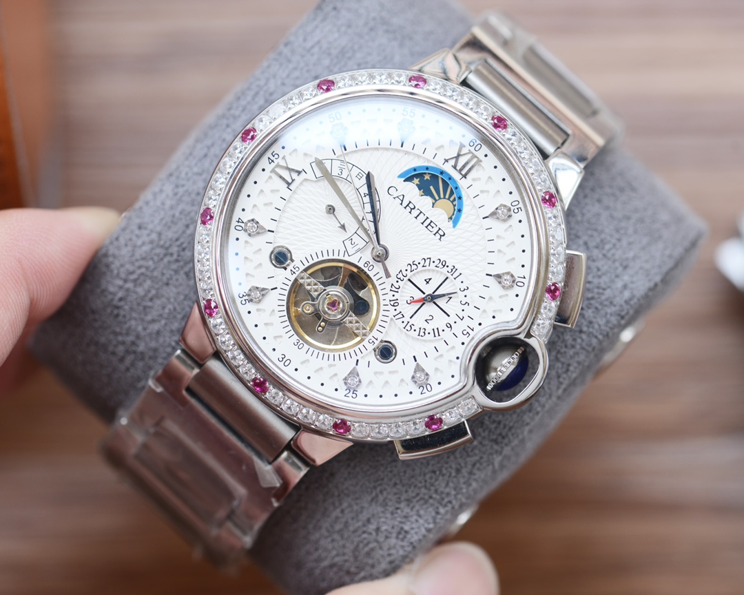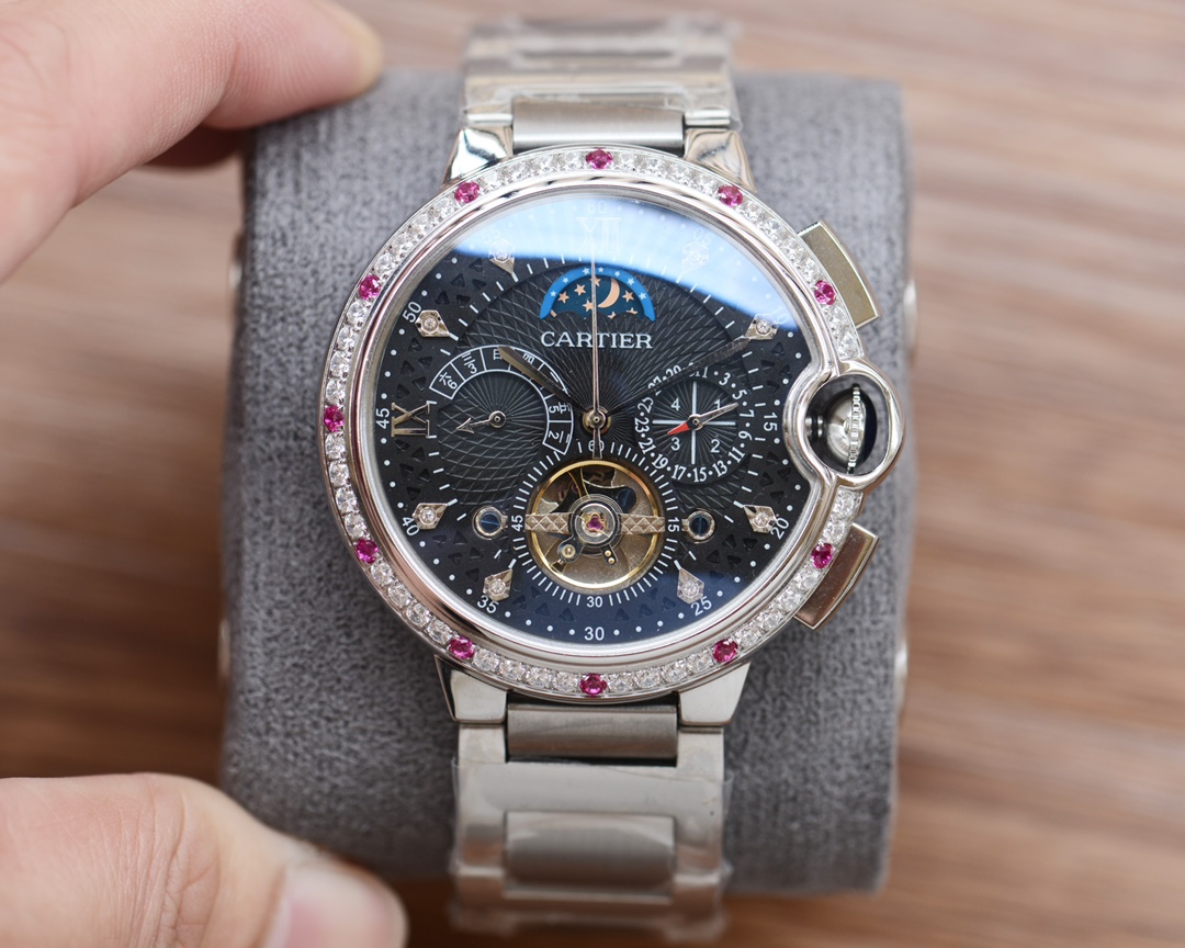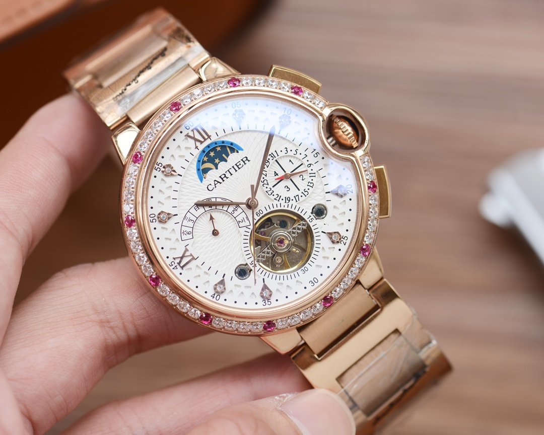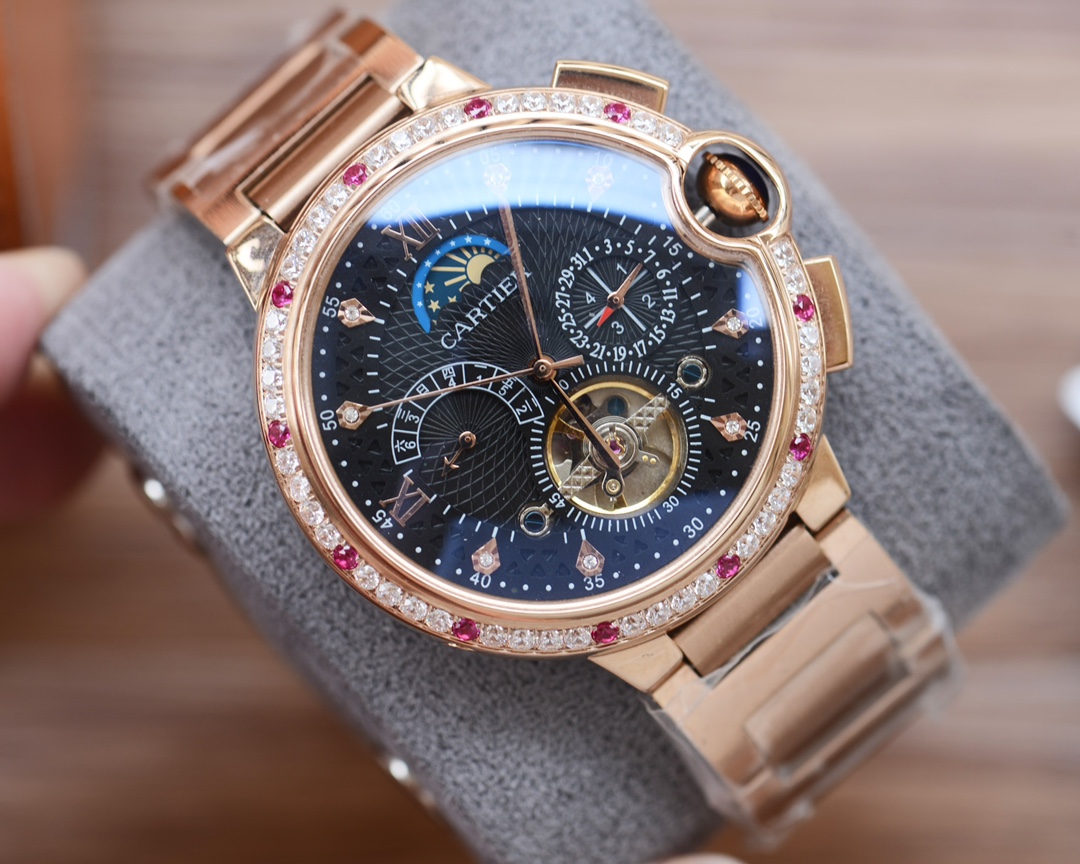 这款手表是AAAAA 1:1 质量 (非常棒). 使用了和原版一模一样的材料. 商标部分也保持了和卡地亚/Cartier一样. 图片拍摄是实物手表拍摄, 您所收到的实物保证和我们图片一模一样.
