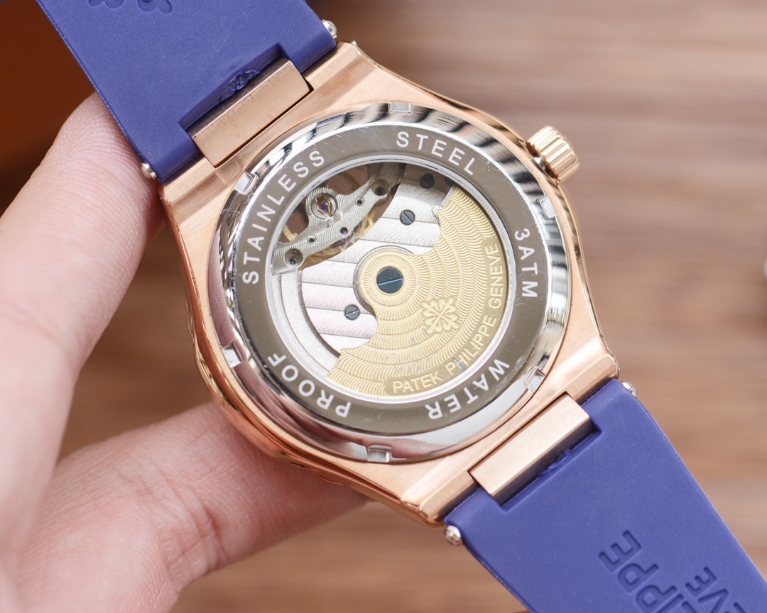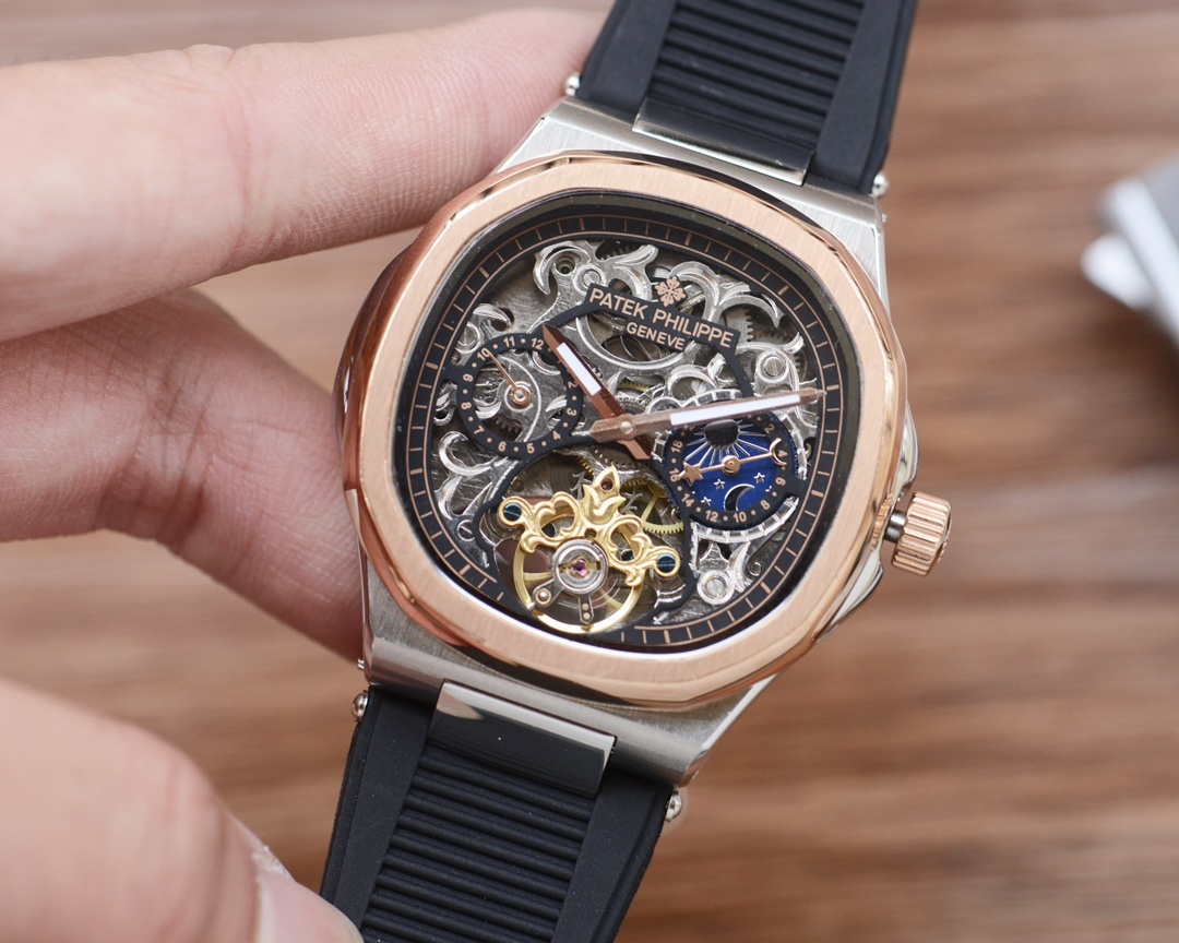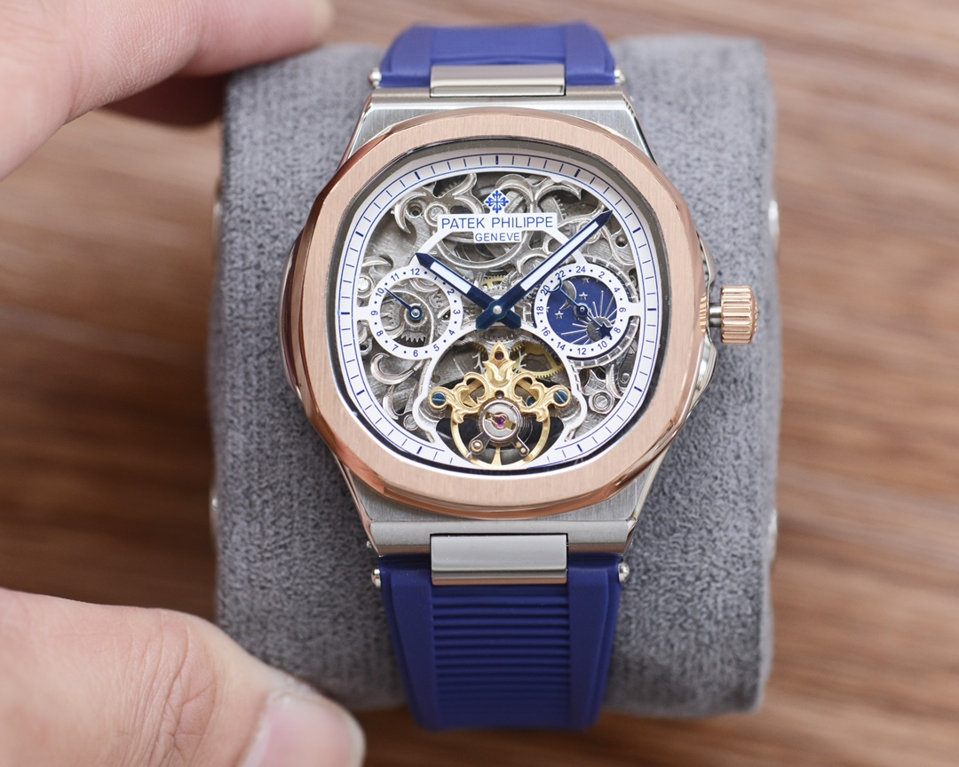 这款手表是AAAAA 1:1 质量 (非常棒). 使用了和原版一模一样的材料. 商标部分也保持了和百达翡丽/Patek Philippe一样. 图片拍摄是实物手表拍摄, 您所收到的实物保证和我们图片一模一样.