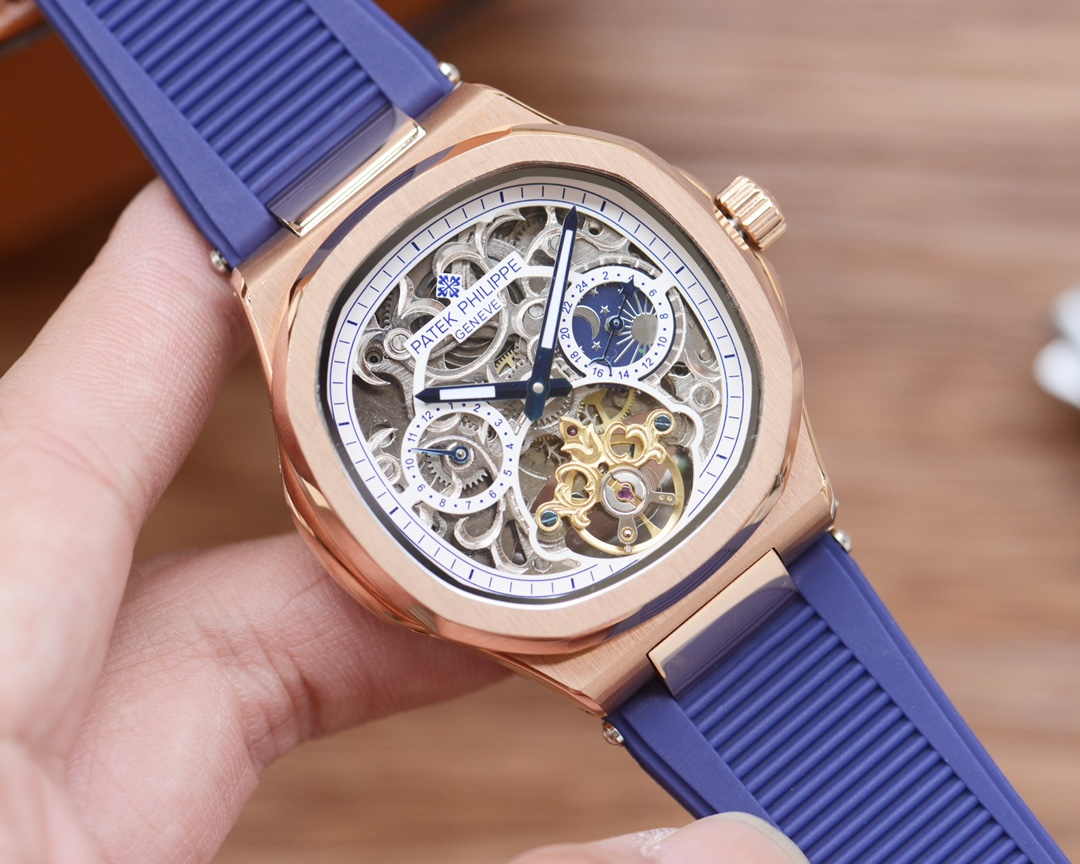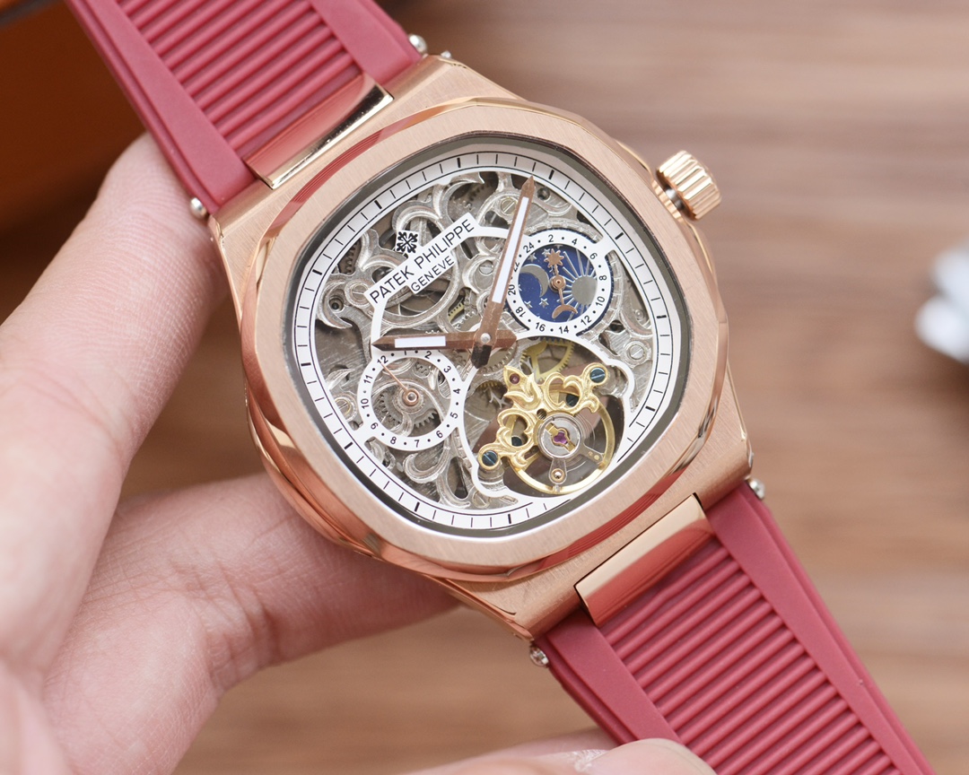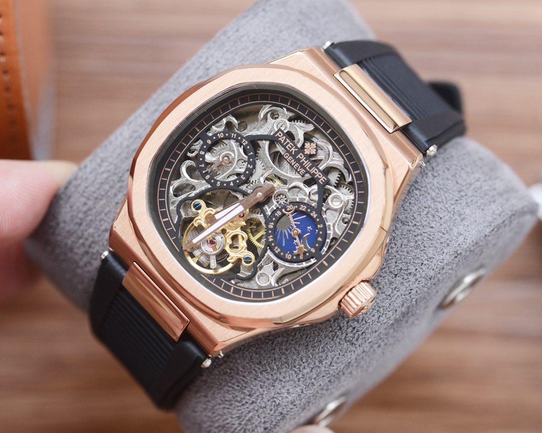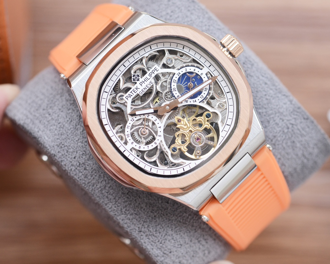 这款手表是AAAAA 1:1 质量 (非常棒). 使用了和原版一模一样的材料. 商标部分也保持了和百达翡丽/Patek Philippe一样. 图片拍摄是实物手表拍摄, 您所收到的实物保证和我们图片一模一样.