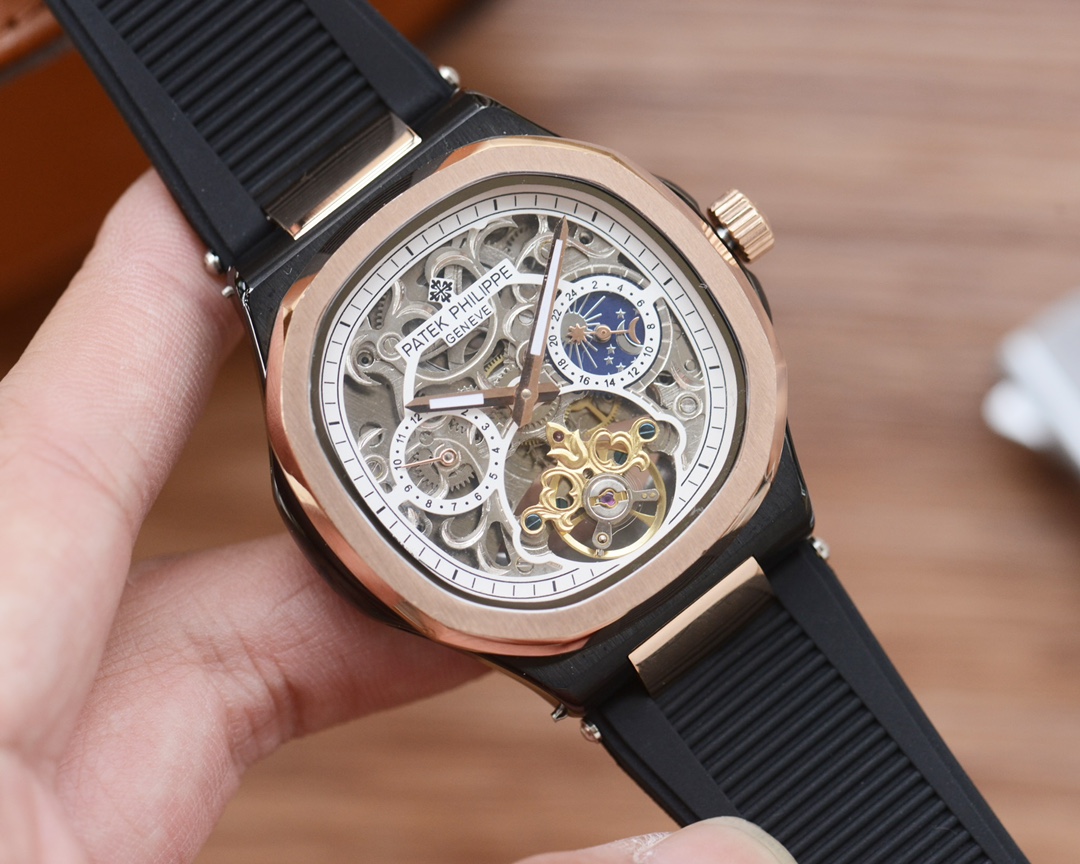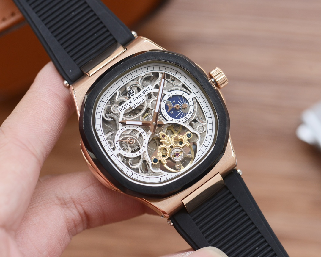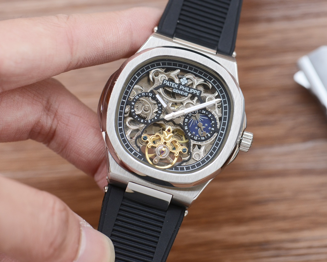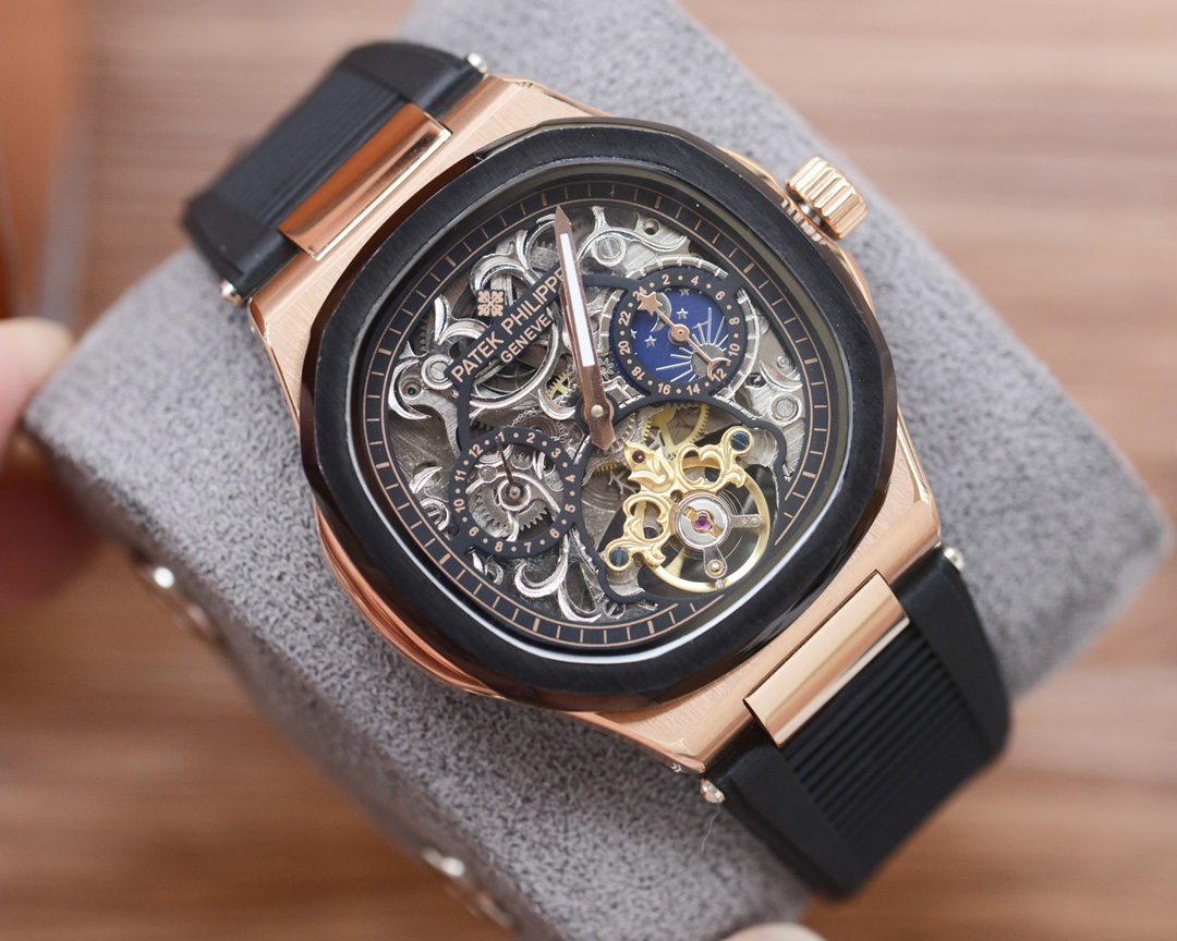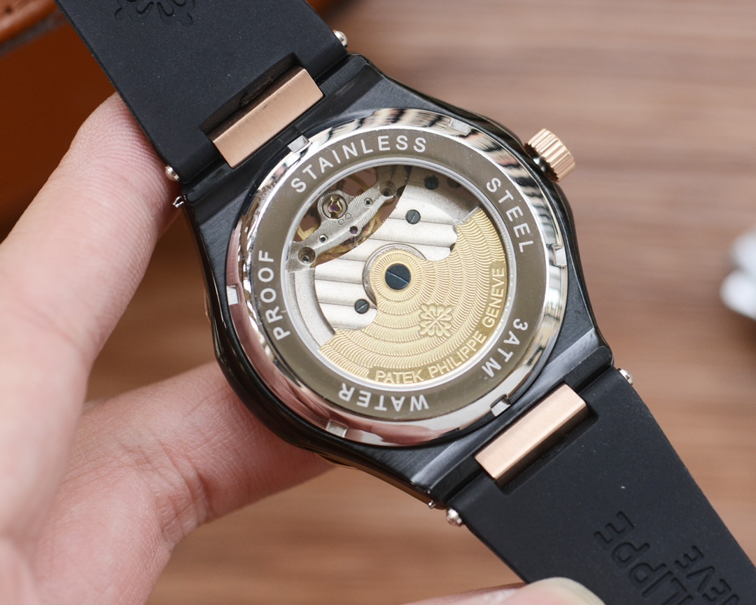 这款手表是AAAAA 1:1 质量 (非常棒). 使用了和原版一模一样的材料. 商标部分也保持了和百达翡丽/Patek Philippe一样. 图片拍摄是实物手表拍摄, 您所收到的实物保证和我们图片一模一样.