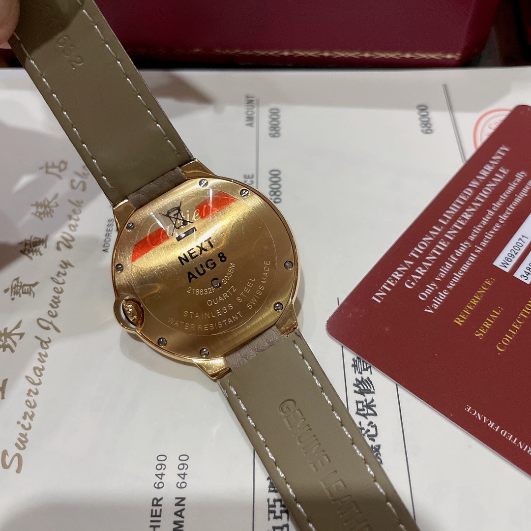 这款手表是AAAAA 1:1 质量 (非常棒). 使用了和原版一模一样的材料. 商标部分也保持了和卡地亚/Cartier一样. 图片拍摄是实物手表拍摄, 您所收到的实物保证和我们图片一模一样.