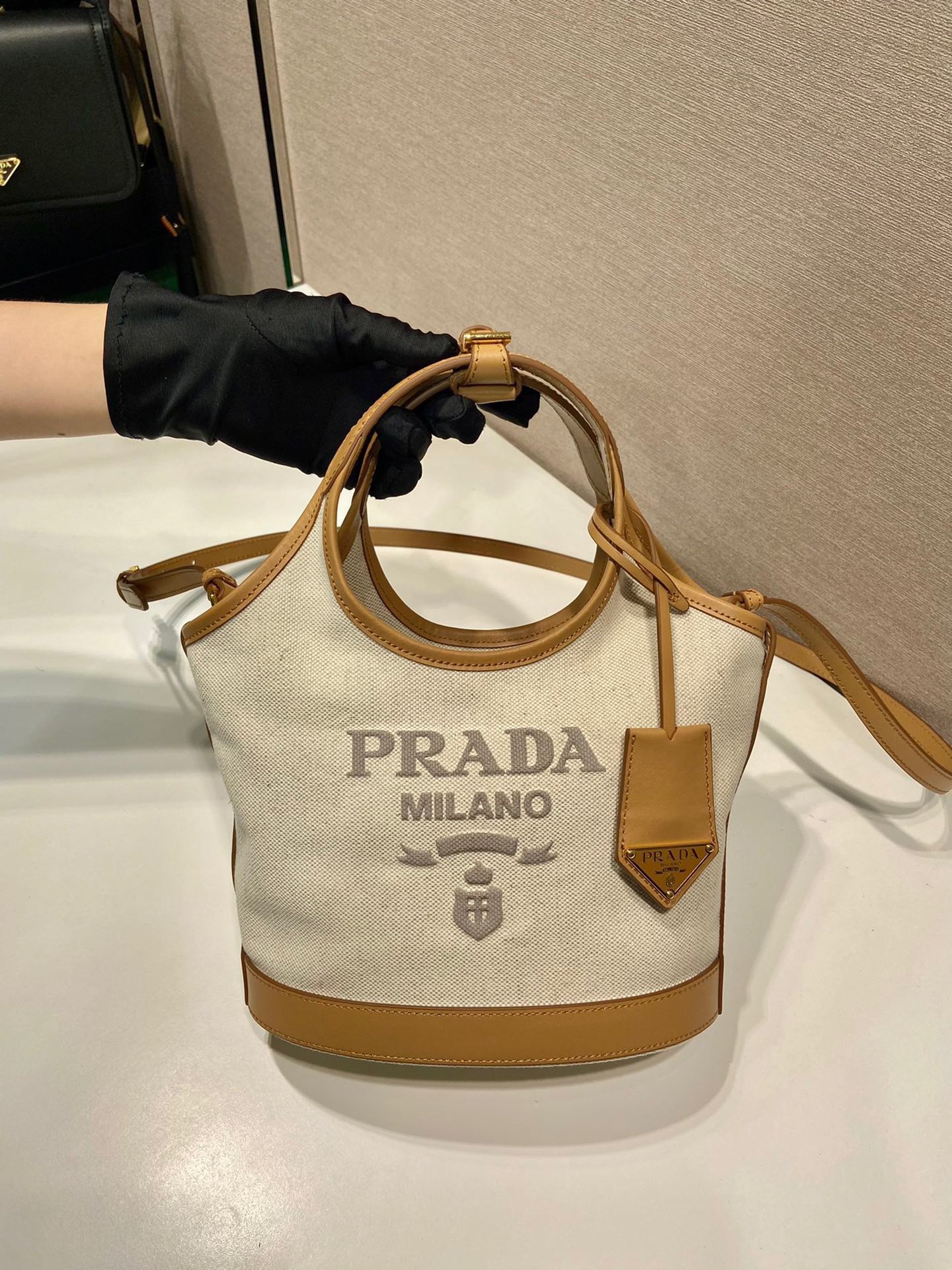 这款包包是AAAAA 1:1 质量 (非常棒). 使用了和原版一模一样的材料. 商标部分也保持了和普拉达/Prada一样. 图片拍摄是实物包包拍摄, 您所收到的实物保证和我们图片一模一样.