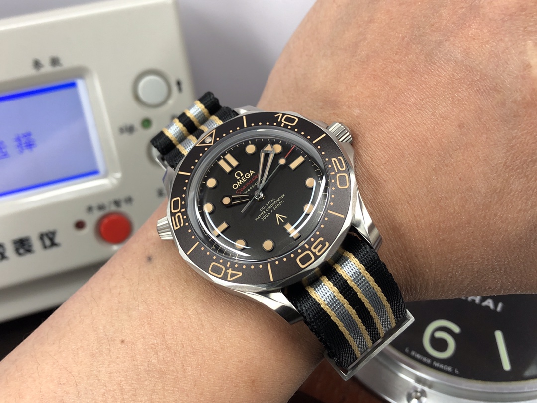 这款手表是AAAAA 1:1 质量 (非常棒). 使用了和原版一模一样的材料. 商标部分也保持了和欧米茄/Omega一样. 图片拍摄是实物手表拍摄, 您所收到的实物保证和我们图片一模一样.