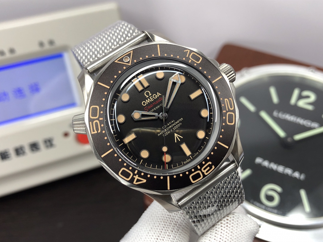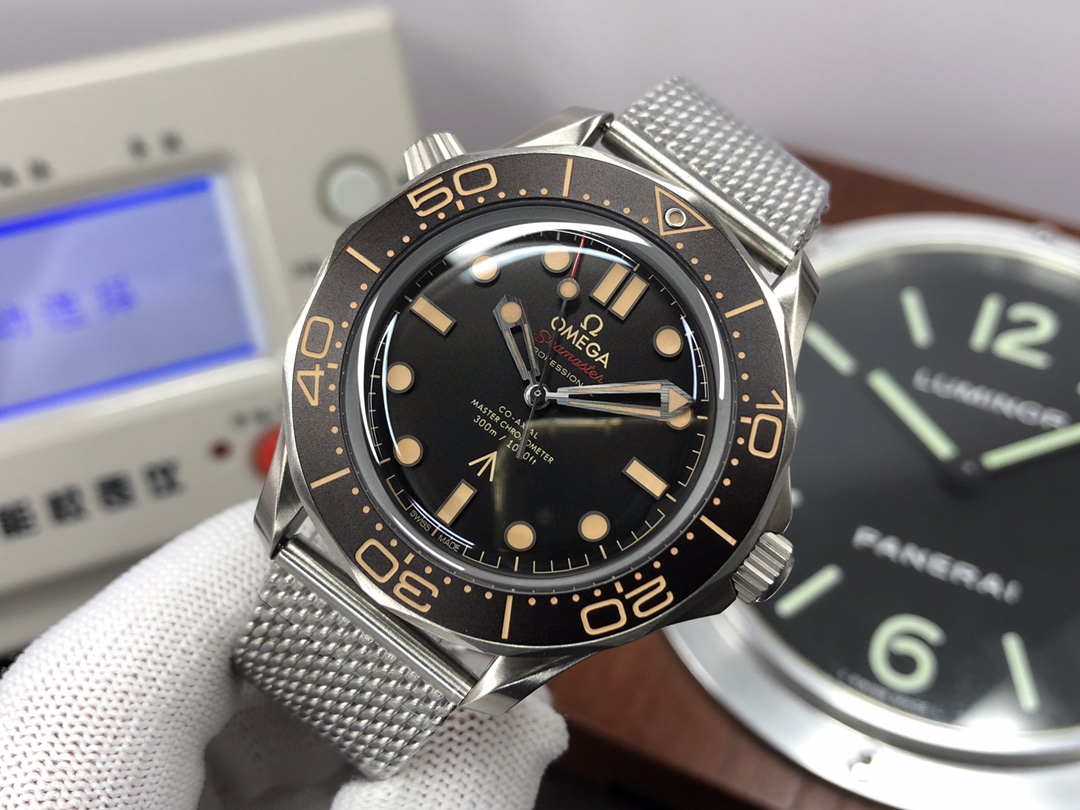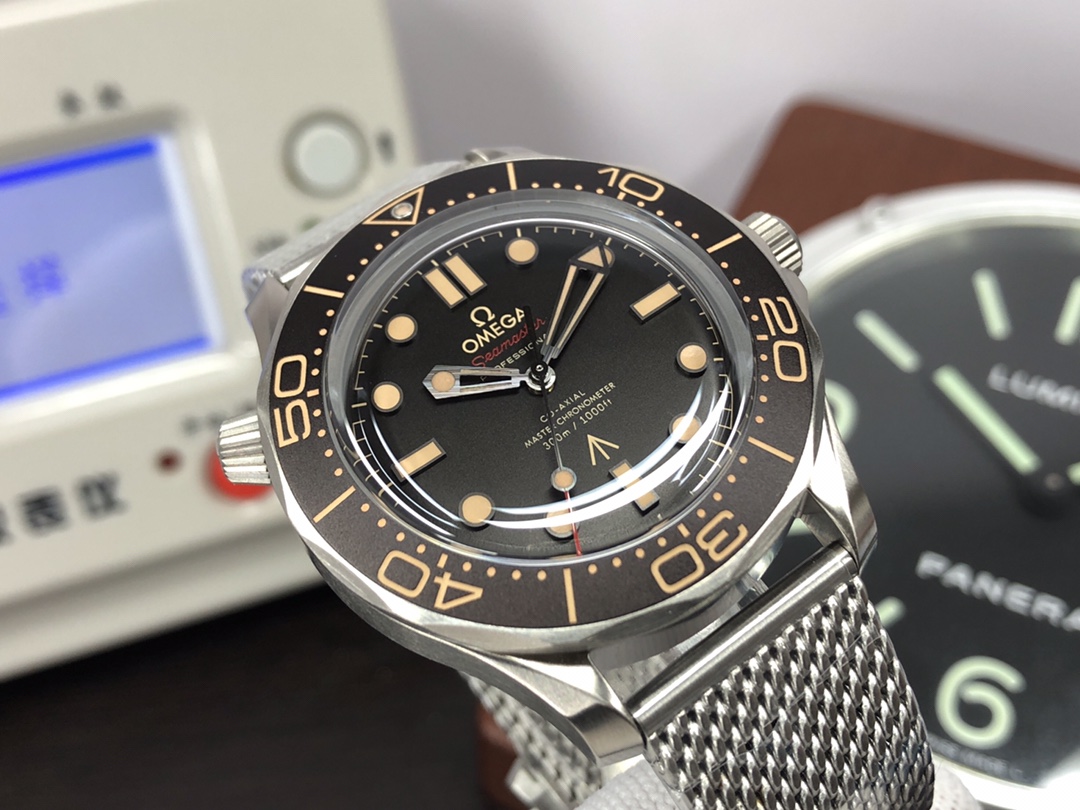 这款手表是AAAAA 1:1 质量 (非常棒). 使用了和原版一模一样的材料. 商标部分也保持了和欧米茄/Omega一样. 图片拍摄是实物手表拍摄, 您所收到的实物保证和我们图片一模一样.