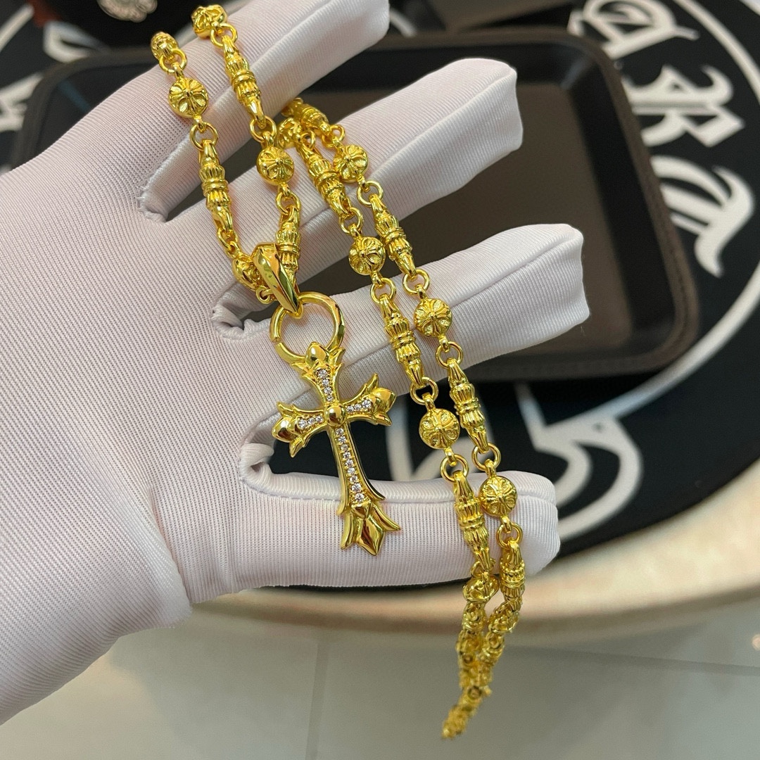 这款首饰是AAAAA 1:1 质量 (非常棒). 使用了和原版一模一样的材料. 商标部分也保持了和克罗心/Chrome Hearts一样. 图片拍摄是实物首饰拍摄, 您所收到的实物保证和我们图片一模一样.